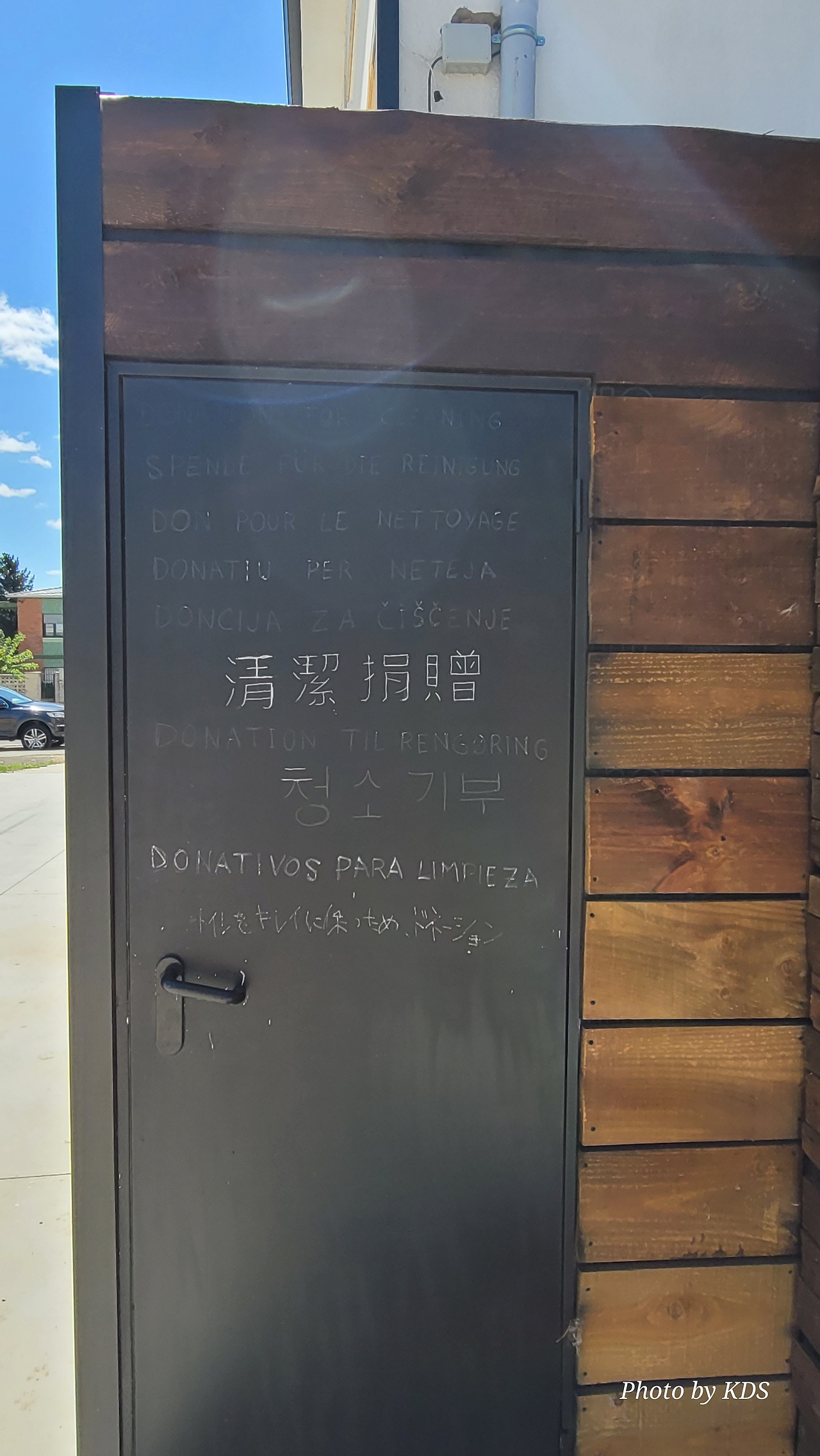 뜨로바호 델 까미노(Trobajo del Camino) 마을을 지나가는데, 반갑게도 현대자동차 판매점이 눈에 들어왔다. 스페인의 여러 도시를 지나올 때마다 일본 자동차 회사의 판매점은 무척 많았지만 한국 자동차 회사의 판매점이 보이지 않았다. 레온시의 위성도시에서 현대자동차 판매점을 볼 수 있어서 어깨에 힘이 들어가는 것 같았다. 그것이 행운이었는지 아래 사진의 건물에 무료 화장실과 쉼터, 야회 샤워시설이 갖추어져 있었다. 산티아고 순례자는 누구나 무료로 화장실을 사용하고 샤워를 할 수 있도록 배려해 주고 있었다. 관리자도 없고, 다만 나무 벤치의 쉼터만 있었다. 화장실 출입문에는 청소는 자진해서 하고 깨끗하게 사용하라는 문구가 영어, 스페인어, 한국어, 일어, 중국어 등 다양한 언어로 쓰여 있었다. 유럽에 와서 이렇게 고맙게도 화장실을 개방한 건물을 처음 본 것이다.