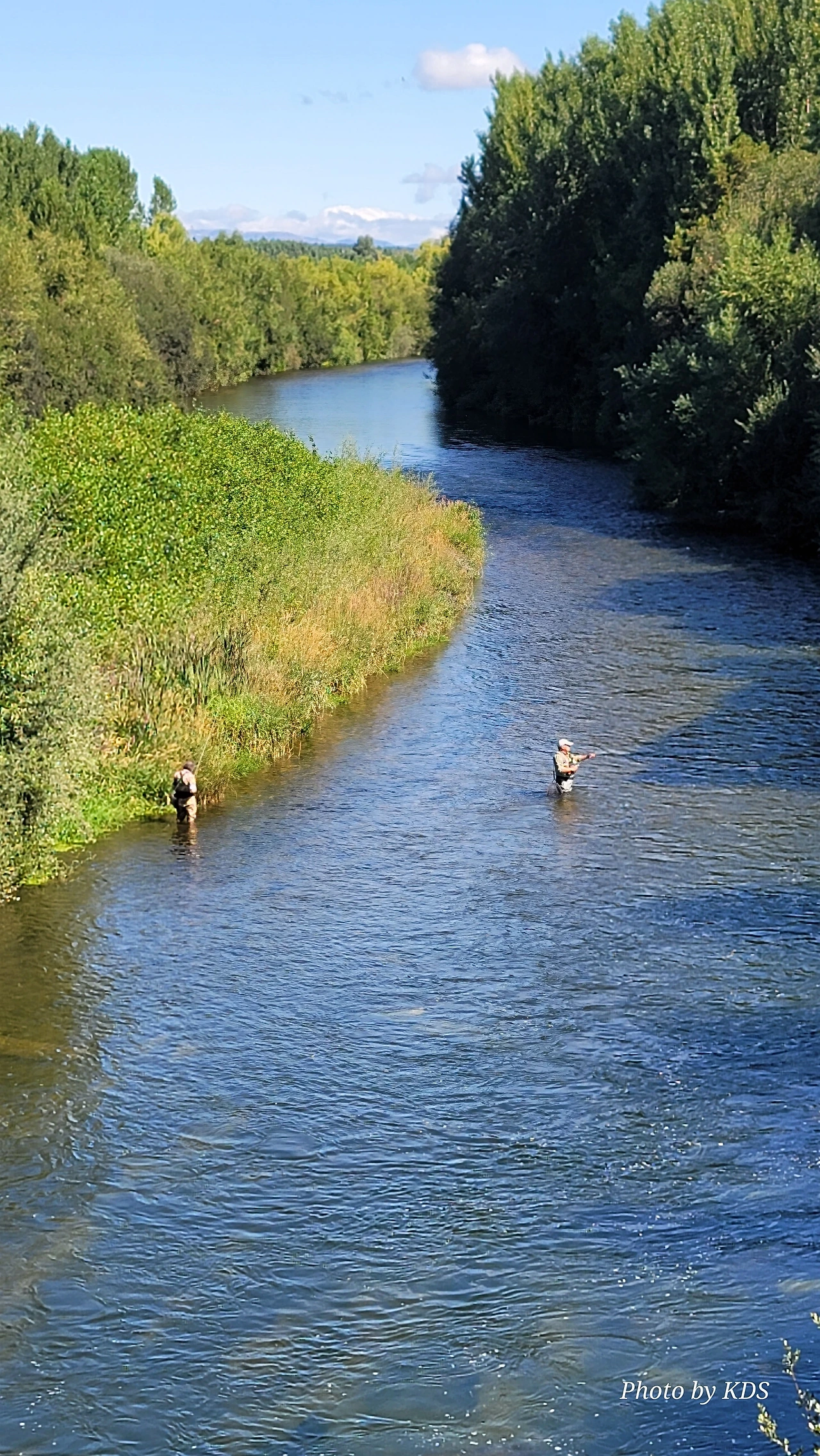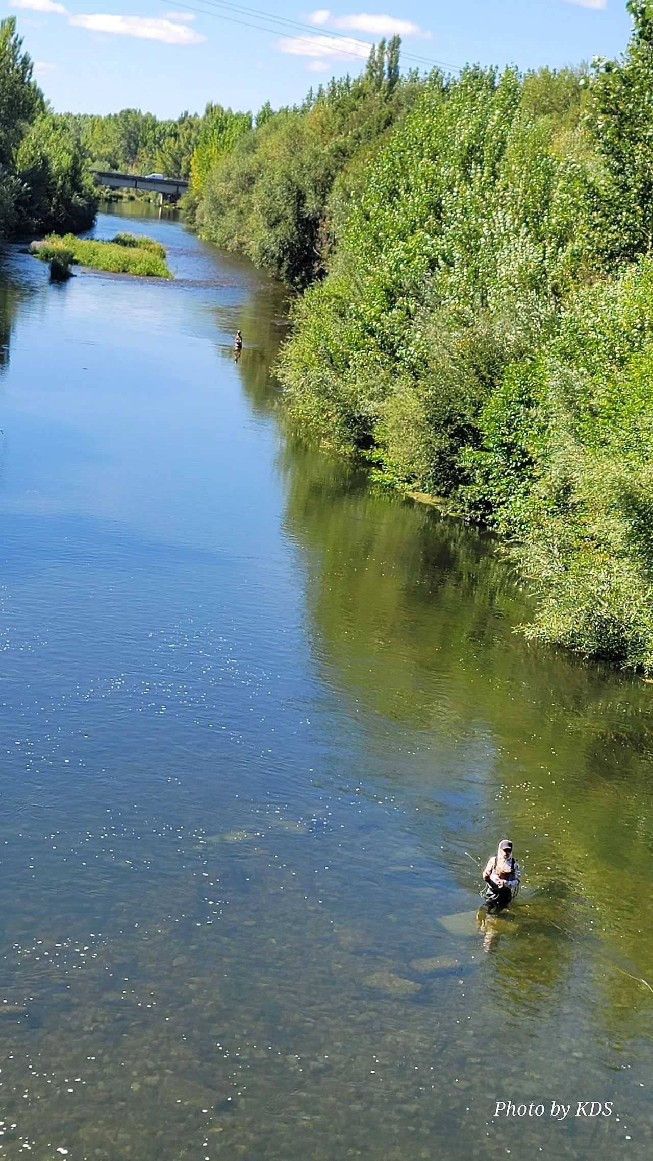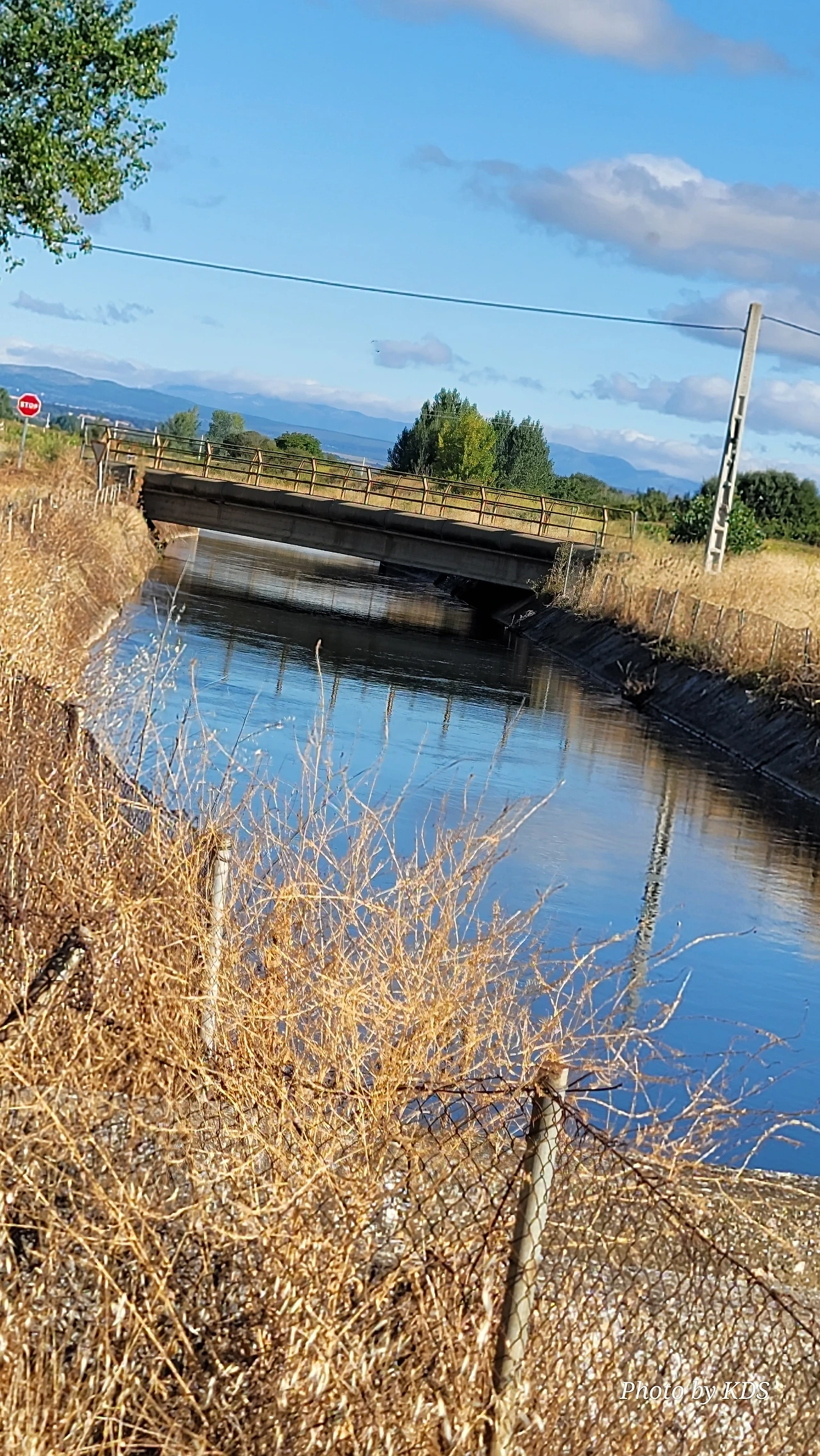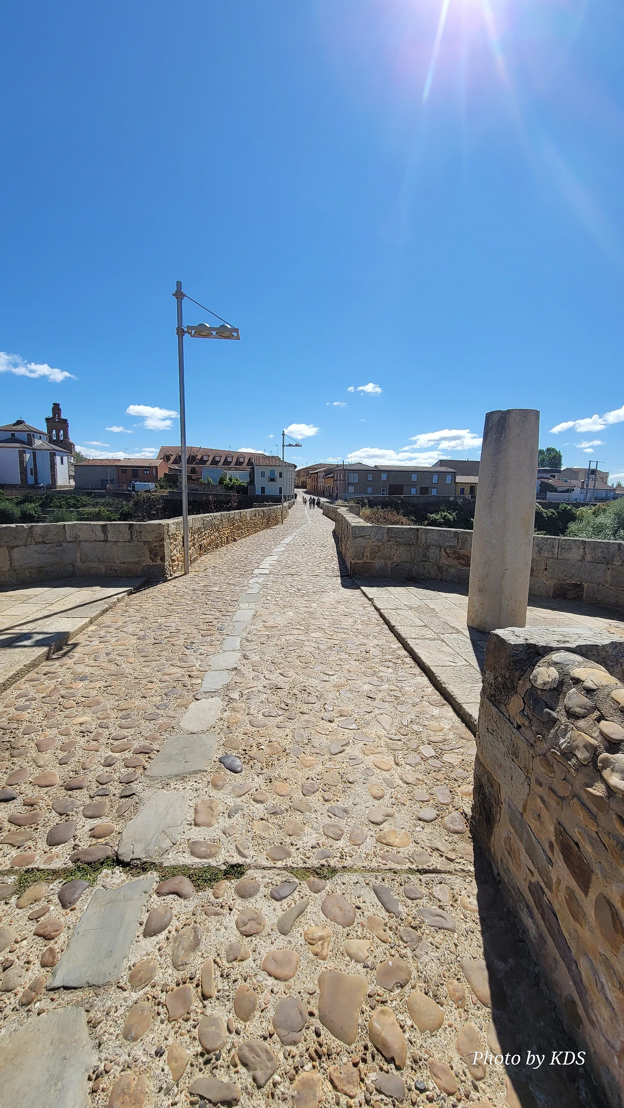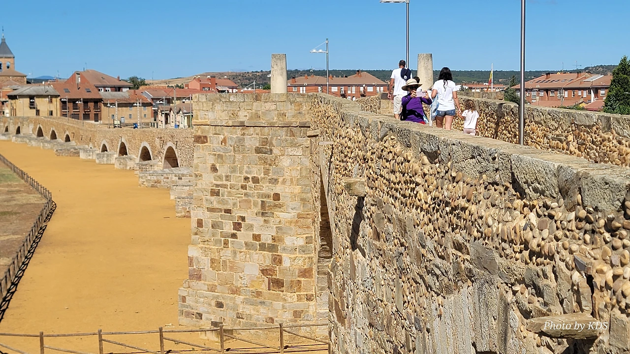 걸어오는 길목에는 거대한 물탱크도 있고 고층 탑처럼 생긴 저수조도 보인다. 오르비고 강을 건너기 전에 있는 옛날 마을인 뿌엔떼 데 오르비고 마을에는 성모 정화 성당(Iglesia de la Purificacion)이 있는데, 여기도 예외 없이 종탑에는 새들의 둥지가 커다랗게 지어져 있었다. 성당의 문이 닫혀 있어서 안으로 들어갈 수 없어서 그냥 지나쳤다. 강에 놓여 있는 오래되고 유서 깊은 다리의 시작 부분에서 강을 내려다보니 시원하게 맑은 물이 흘러가고 있다. 수량도 많고 주변에 숲도 매우 잘 조성되어 있다. 강에는 견지낚시를 하는 태공들이 열심히 물고기를 쫓고 있었다. 다리를 건너는데, 물이 흘러가는 부분과 고수부지처럼 물이 없는 지역으로 구분이 되어 다리가 무척 길었다. 이제까지 걸은 순례길에서 이 다리가 제일 길었다. 아치형으로 잘 만들어진 오래된 다리다. 이 다리에는 오랜 기사도의 전설이 얽혀있단다. 그 전설에 따라 매년 6월의 첫 번째 주말에 이 다리 밑에서 축제가 벌어진다.