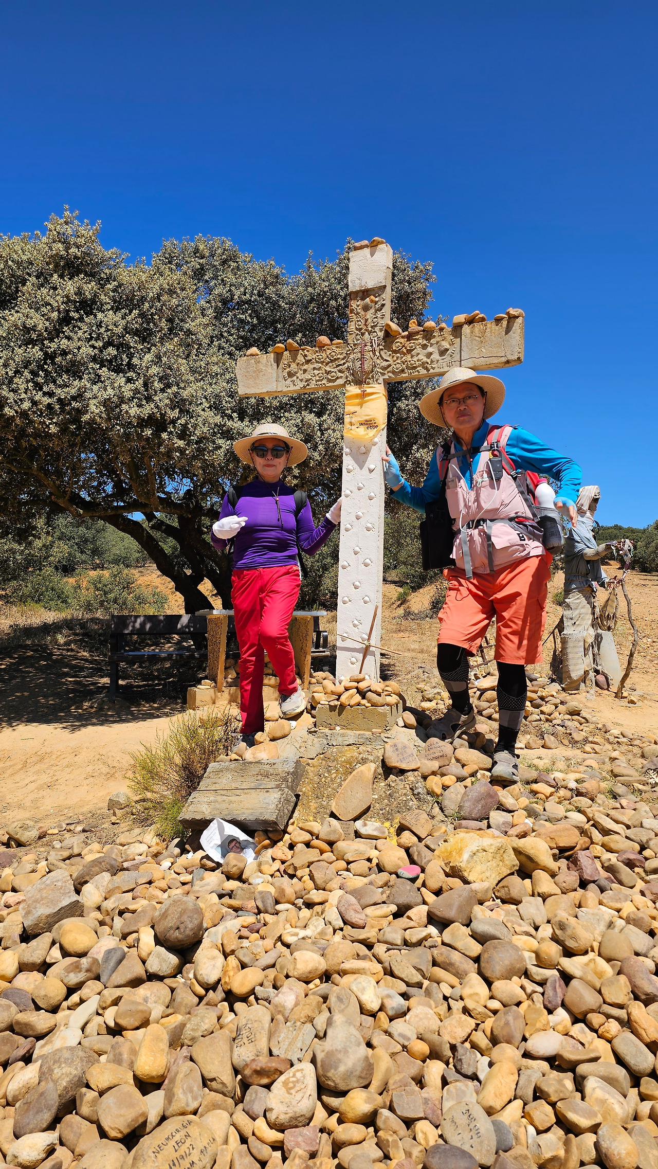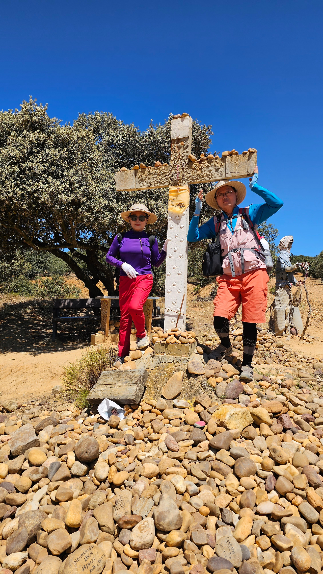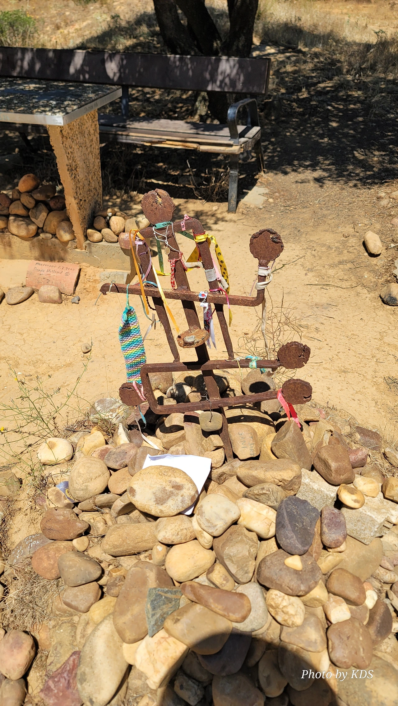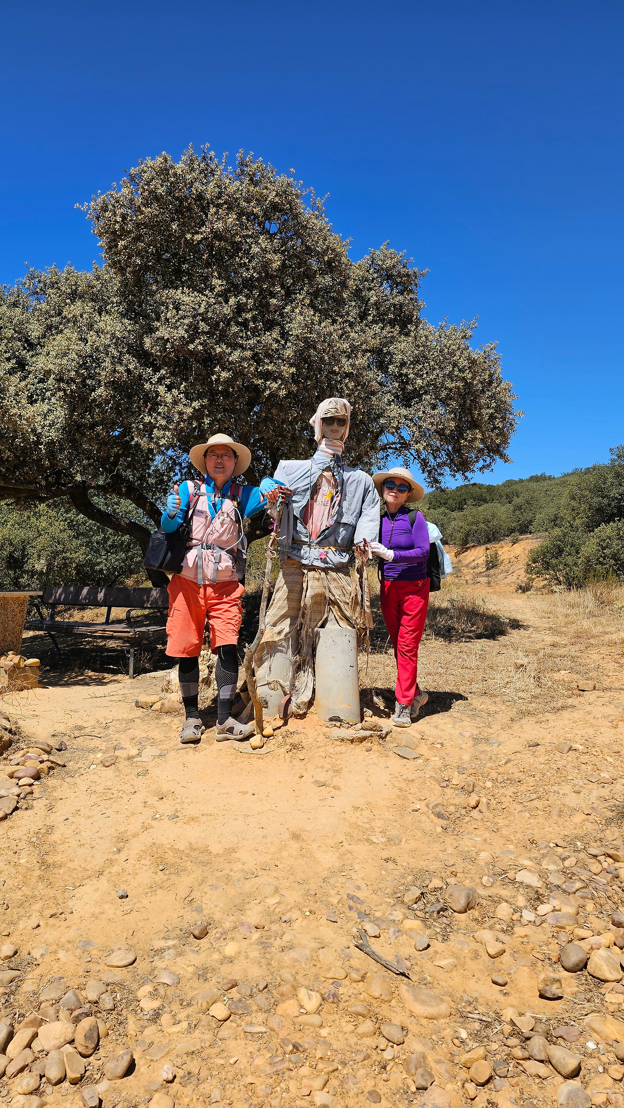 산티바네스 데 발데이글레시아스(Santibáñez de Valdeiglesias) 마을을 지나면 약간 언덕길과 구릉을 만난다. 언덕길을 오르다 보면 크루스 데 바예(Cruz de Valle) 즉 계곡의 십자가 상을 볼 수 있다. 십자가는 언덕의 몇 그루의 나무와 쉼터 의자가 같이 있다. 그 주변에 허수아비 모양의 그로테스크(Grotesque)한 조형물들이 있다. 지나가는 모든 순례객들은 이것을 배경으로 사진을 찍는다. 순례자 복장에 멋지게 선글라스까지 끼고 있는 모습이 재미있다. 십자가는 시멘트 콘크리트로 조성되었고, 주변에 돌무더기가 많다. 철로 만든 수도승 모양의 조형물 앞에 누군가 배 한 덩어리를 올려놓았다. 순례길을 걷다 보면 이런 기발한 조형물들을 가끔 만나고, 그런 것들을 보면서 순례길의 피로를 잊기도 한다.