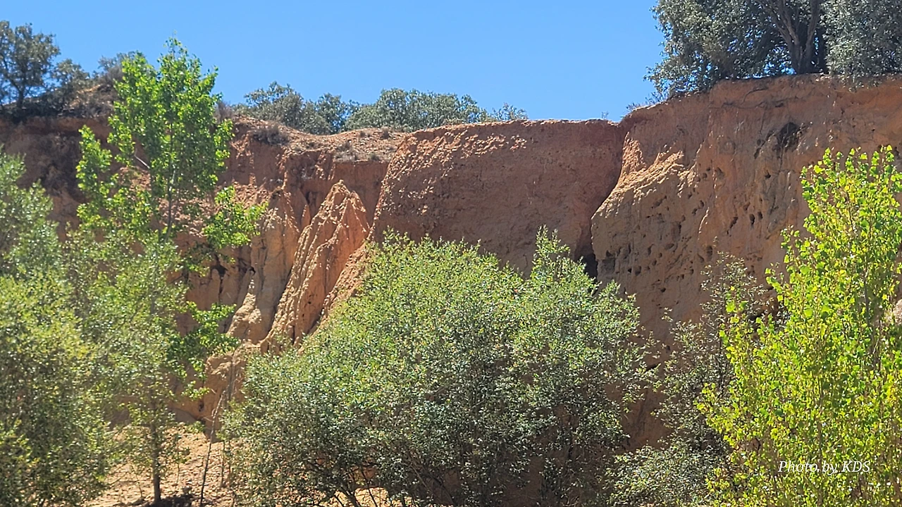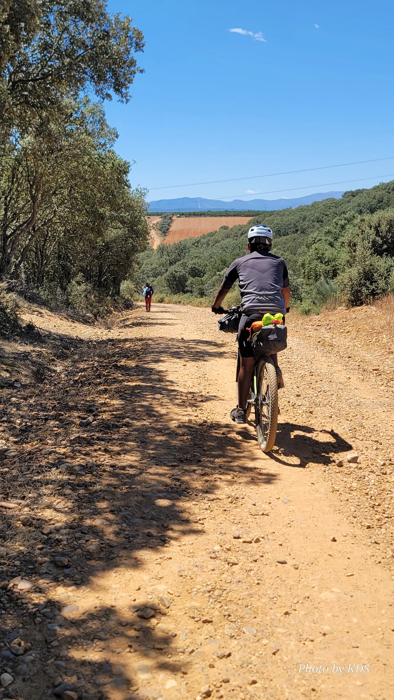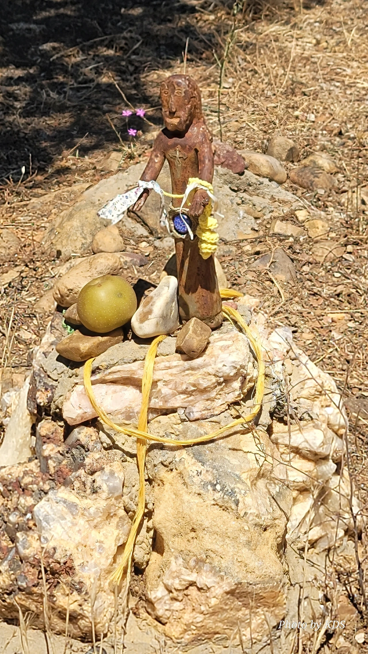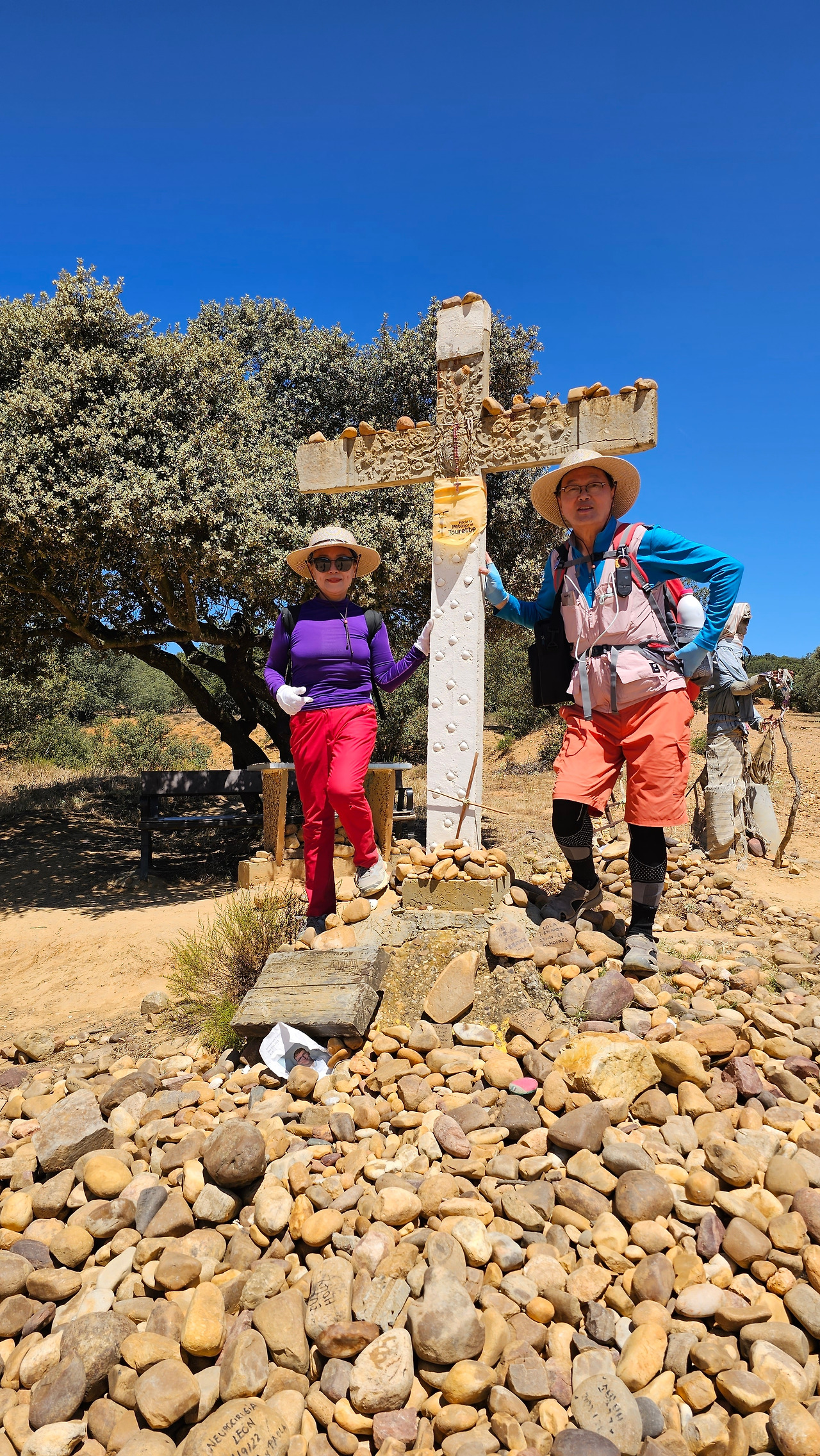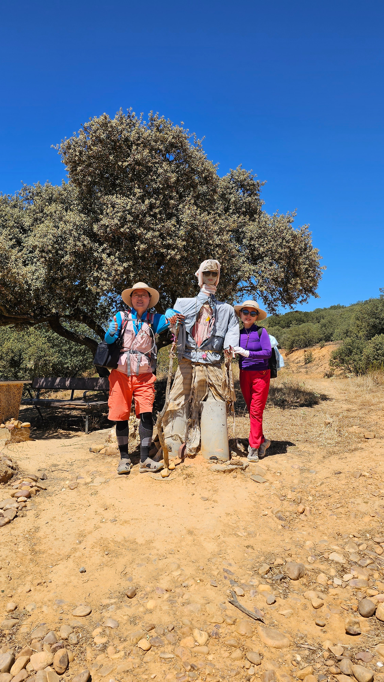 산티바네스 데 발데이글레시아스(Santibáñez de Valdeiglesias) 마을을 지나면 약간 언덕길과 구릉을 만난다. 언덕길을 오르다 보면 크루스 데 바예(Cruz de Valle) 즉 계곡의 십자가 상을 볼 수 있다. 십자가는 언덕의 몇 그루의 나무와 쉼터 의자가 같이 있다. 그 주변에 허수아비 모양의 그로테스크(Grotesque)한 조형물들이 있다. 지나가는 모든 순례객들은 이것을 배경으로 사진을 찍는다. 순례자 복장에 멋지게 선글라스까지 끼고 있는 모습이 재미있다. 십자가는 시멘트 콘크리트로 조성되었고, 주변에 돌무더기가 많다. 철로 만든 수도승 모양의 조형물 앞에 누군가 배 한 덩어리를 올려놓았다. 순례길을 걷다 보면 이런 기발한 조형물들을 가끔 만나고, 그런 것들을 보면서 순례길의 피로를 잊기도 한다.