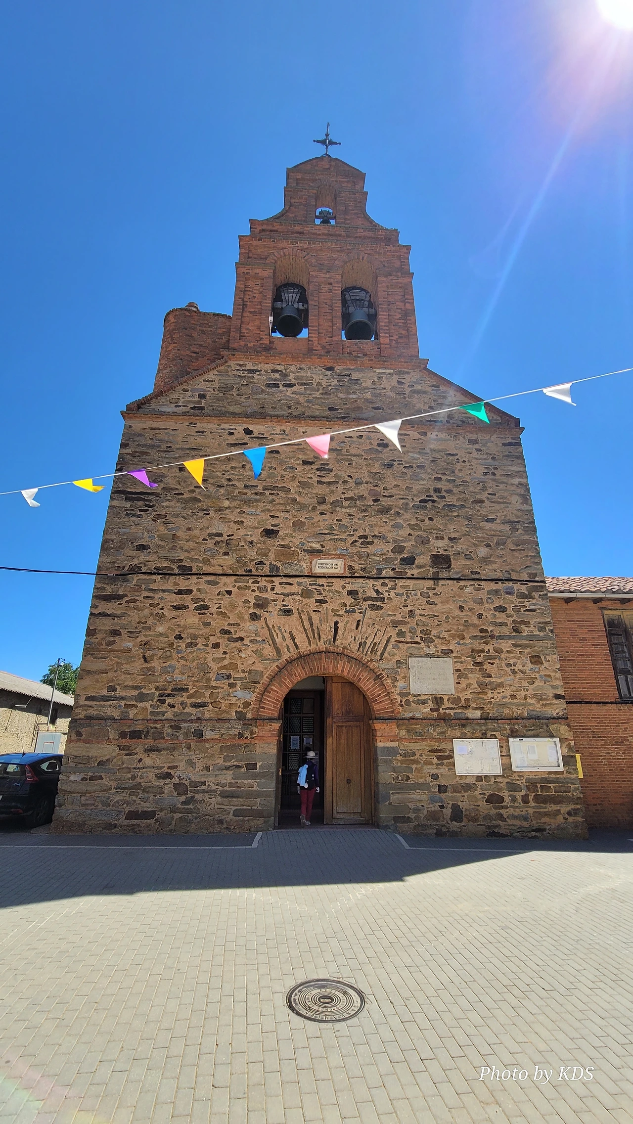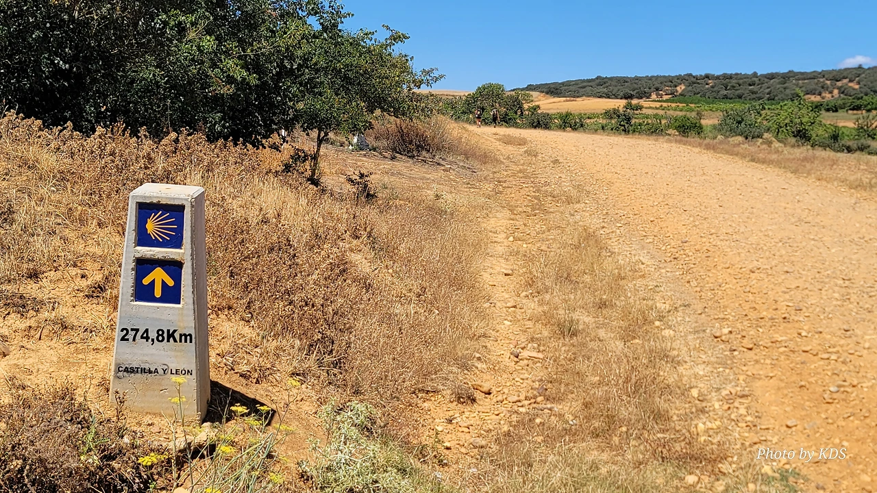 산티바녜스 데 발데이글레시아스(Santibáñez de Valdeiglesias) 마을은 정말 이름이 길다. 조선과객 금삿갓으로서는 마을 이름을 읽는데도 숨이 차다. 이 마을은 직전의 비야레스 데 오르비고(Villares de Orbigo) 마을에서 2Km밖에 떨어져 있지 않다. 이 마을에서 다음 마을인 산 후스또 데 라 베가(San Justo de la Vega) 마을까지는 8Km가량이고, 황량한 언덕을 넘어가야 한다. 이 마을은 삼위일체 수도사들이 13세기부터 순례자들을 위해 정착한 것으로 알려졌다. 산티바녜스 데 발데이글레시아스(Santibáñez de Valdeiglesias) 마을에는 19세기 후반에 지어진 산티시마 삼위일체 교구 성당(Iglesia Pparroquial de la Santísima Trinidad)이 눈에 띈다. 성당의 평평한 지붕 바깥으로 튀어나와 마을 전체를 지배하는 종탑에는 두 개의 종이 있다. 그리고 사원 내부에는 산티아고 마타모로스(Santiago Matamoros) 조각과 순례자 복장을 한 산 로케(San Roque) 조각이 있었다. 교회 바로 옆으로 난 13개의 계단을 내려가면 깨끗한 물에 접근할 수 있는 흥미로운 지하 분수가 있었다. 8월이 되면 이 마을의 외곽 지역은 세계에서 가장 큰 거대한 미로인 옥수수 미로(The Corn Labyrinth)로 변한다. 이 천연기념물은 매년 그 모습과 주제가 바뀌는데, 그 중앙에는 수수께끼가 숨겨져 있다고 한다. 이 옥수수 미로를 통과해 도달하는 사람들은 이 수수께끼를 풀어야 한다.