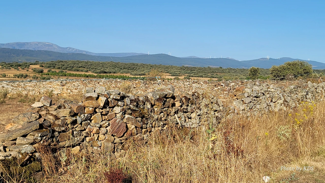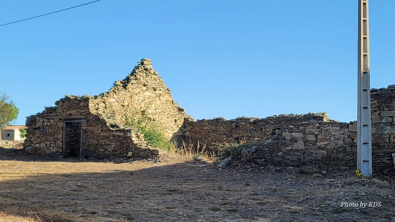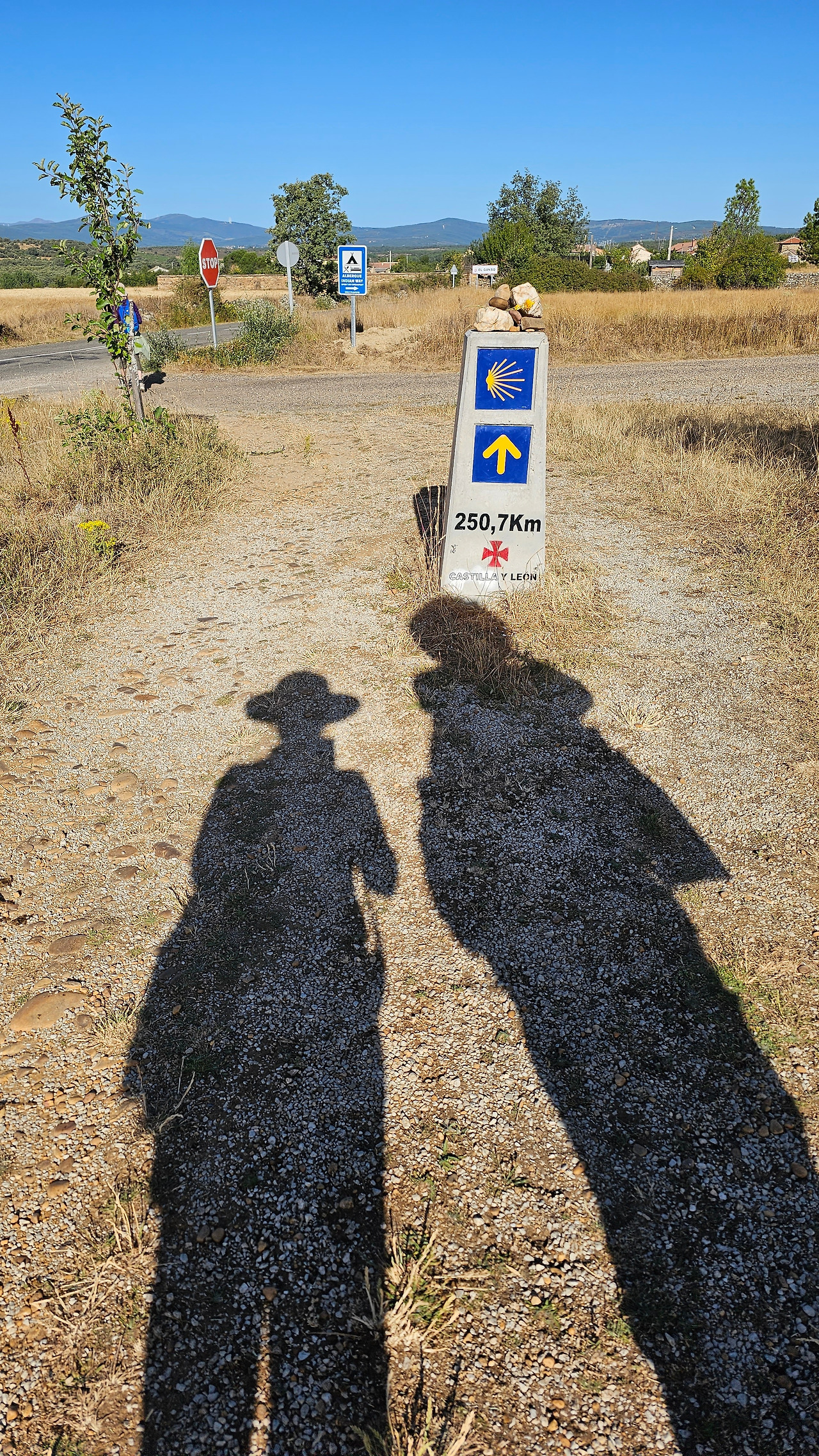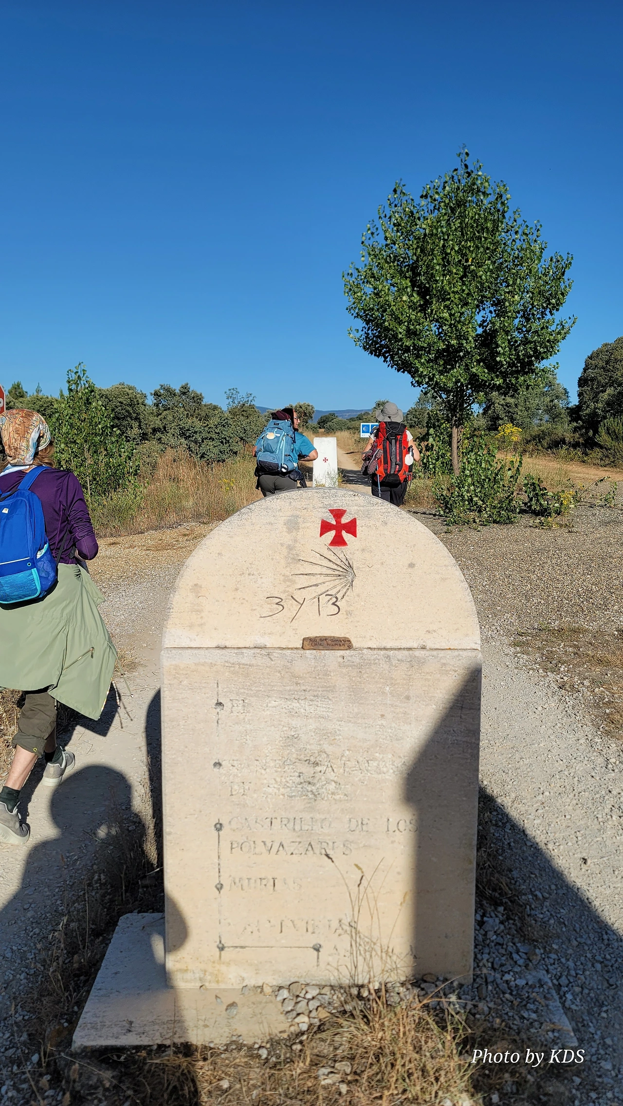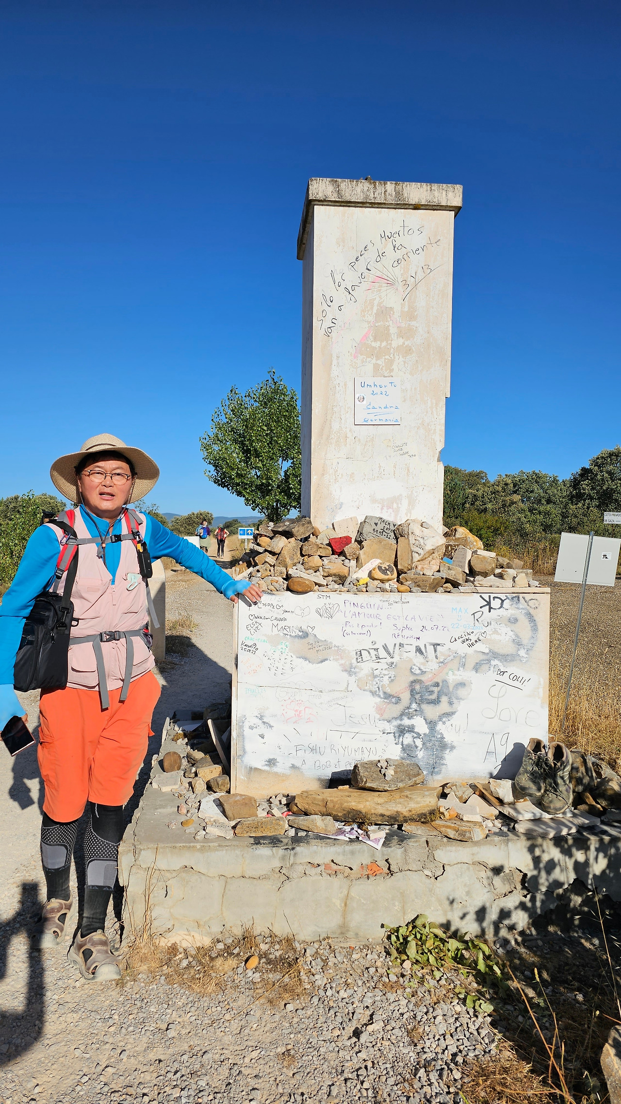 마을을 벗어나도 돌담으로 둘러싸인 밭들이 나오고, 허물어진 돌담 건물의 잔해들도 많이 보인다. 길가에 순례자를 위한 지팡이와 조롱박을 팔고 있는 노점이 있는데 주인은 어디 갔는지 보이지 않는다. 순례길을 걷는 사람들 중에 등산용 스틱을 주로 많이 사용하지만, 예스럽게 굳이 이런 나무 지팡이를 고집하는 사람들도 더러 있다. 어떤 사람은 자기 키보다도 더 큰 나무지팡이를 들고 걷기도 한다. 금삿갓의 생각은 그건 도리어 짐스러운데 힘들게 왜 들고 다니는지 이해가 가질 않는다. 길가의 조형물 옆에 가지런히 벗어 놓은 등산화 한 켤레가 색이 바랜 채 놓여있다. 주인은 벌써 순례길을 다 걷고 고향으로 돌아갔을 텐데, 남겨진 신발만 이 길을 오래도록 지키고 있는 것이다. 이 마을은 전체적으로 제주도의 올레길을 연상하면서 걸을 수 있었다.