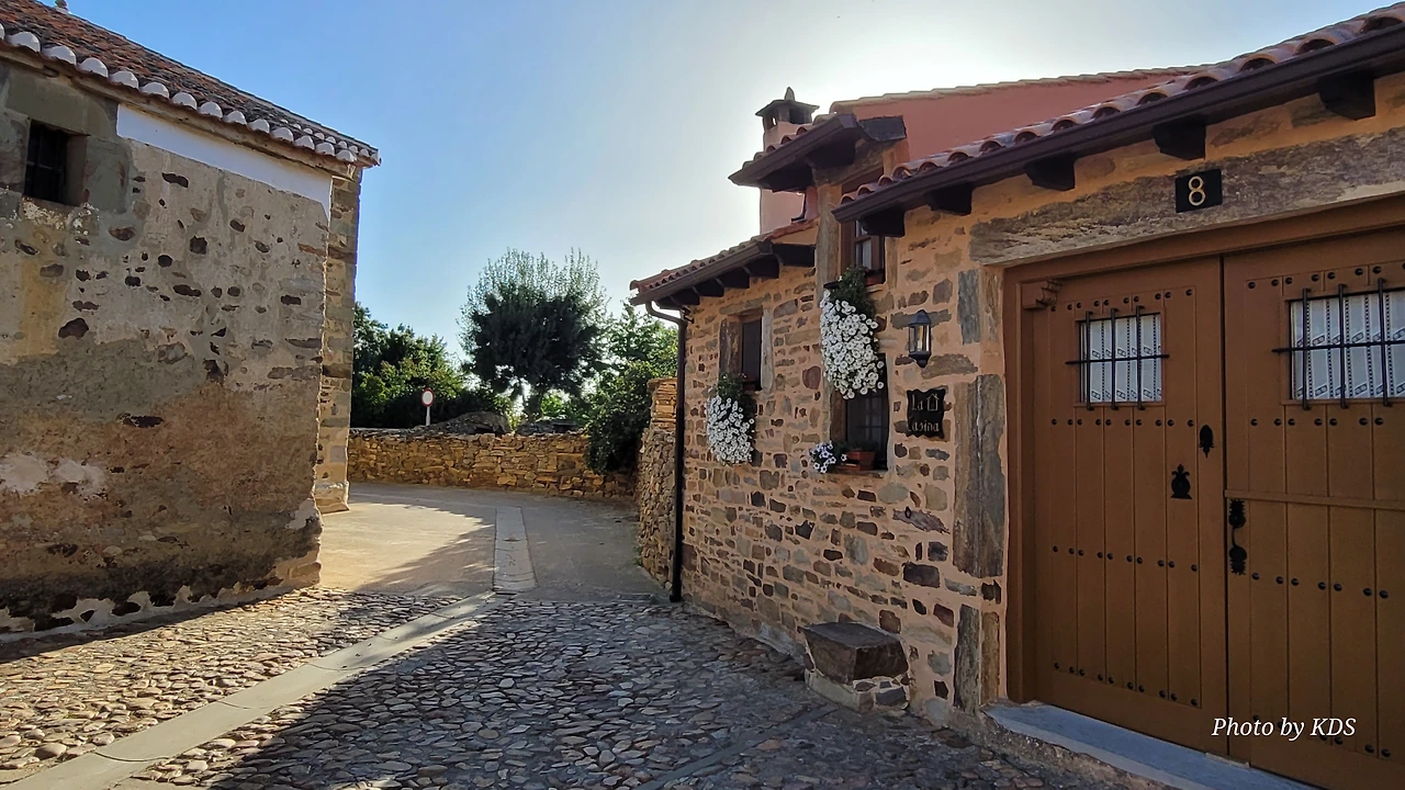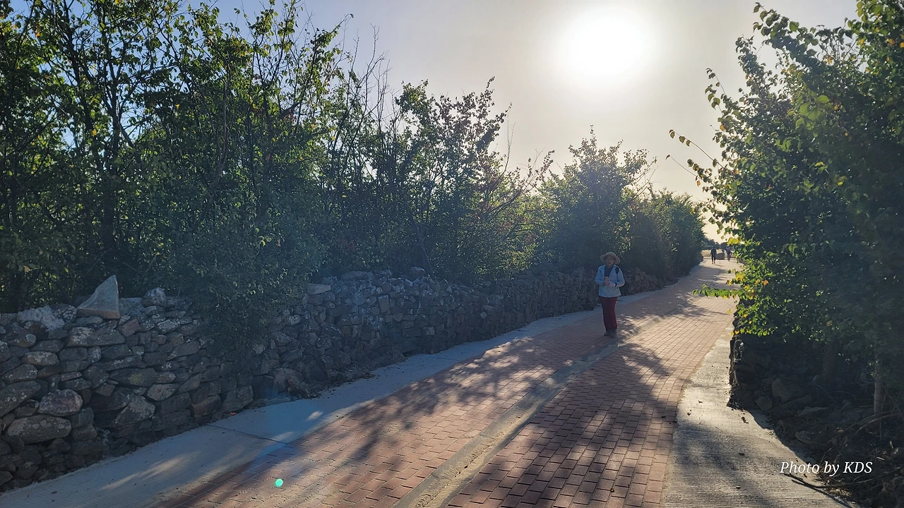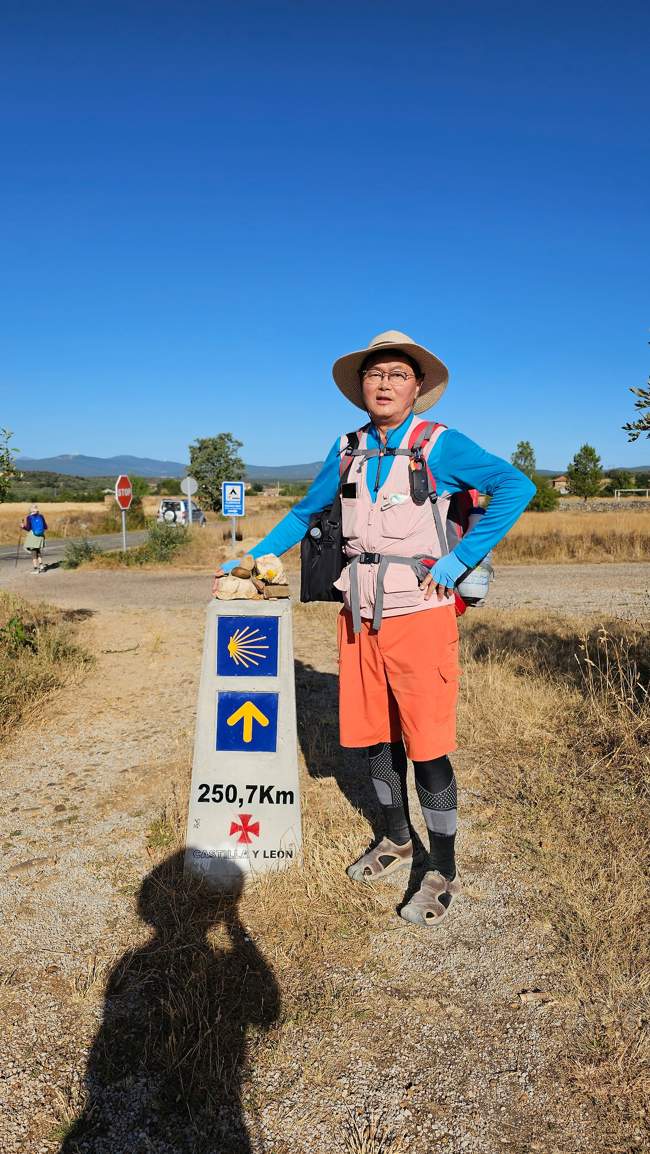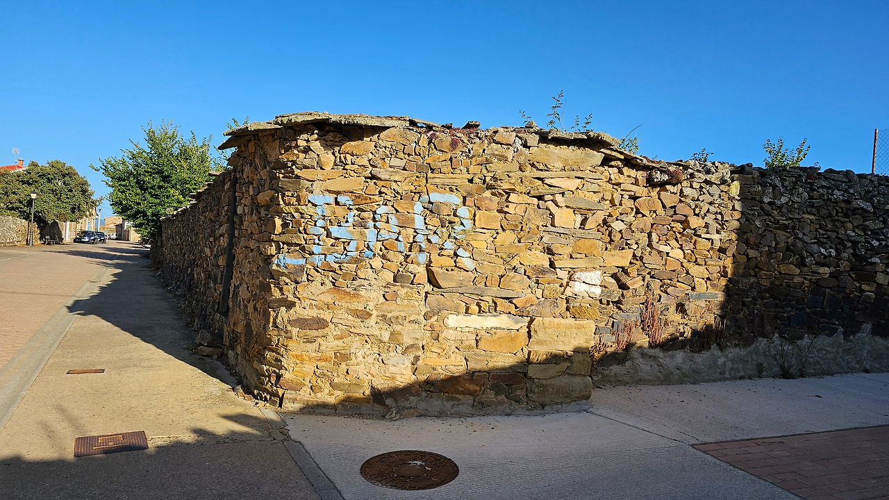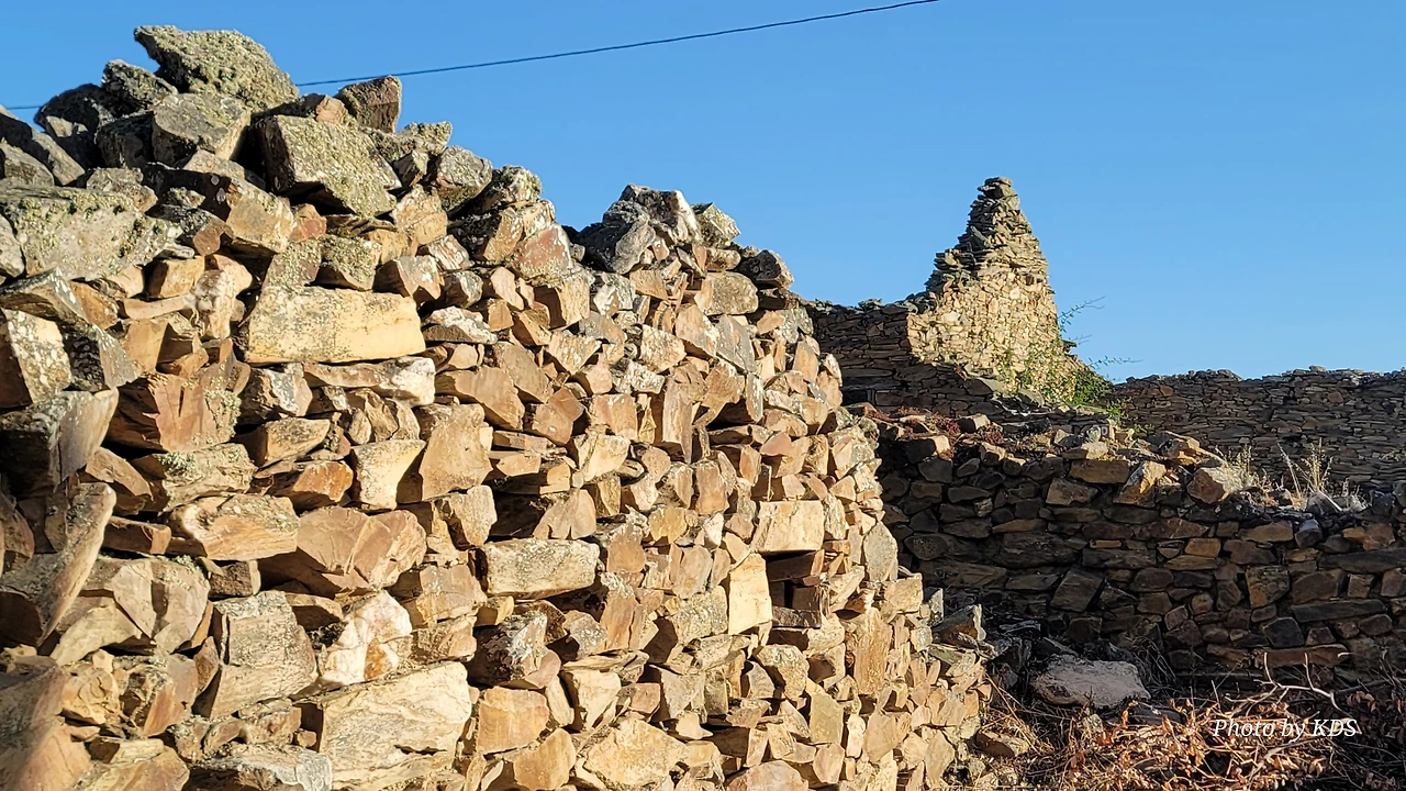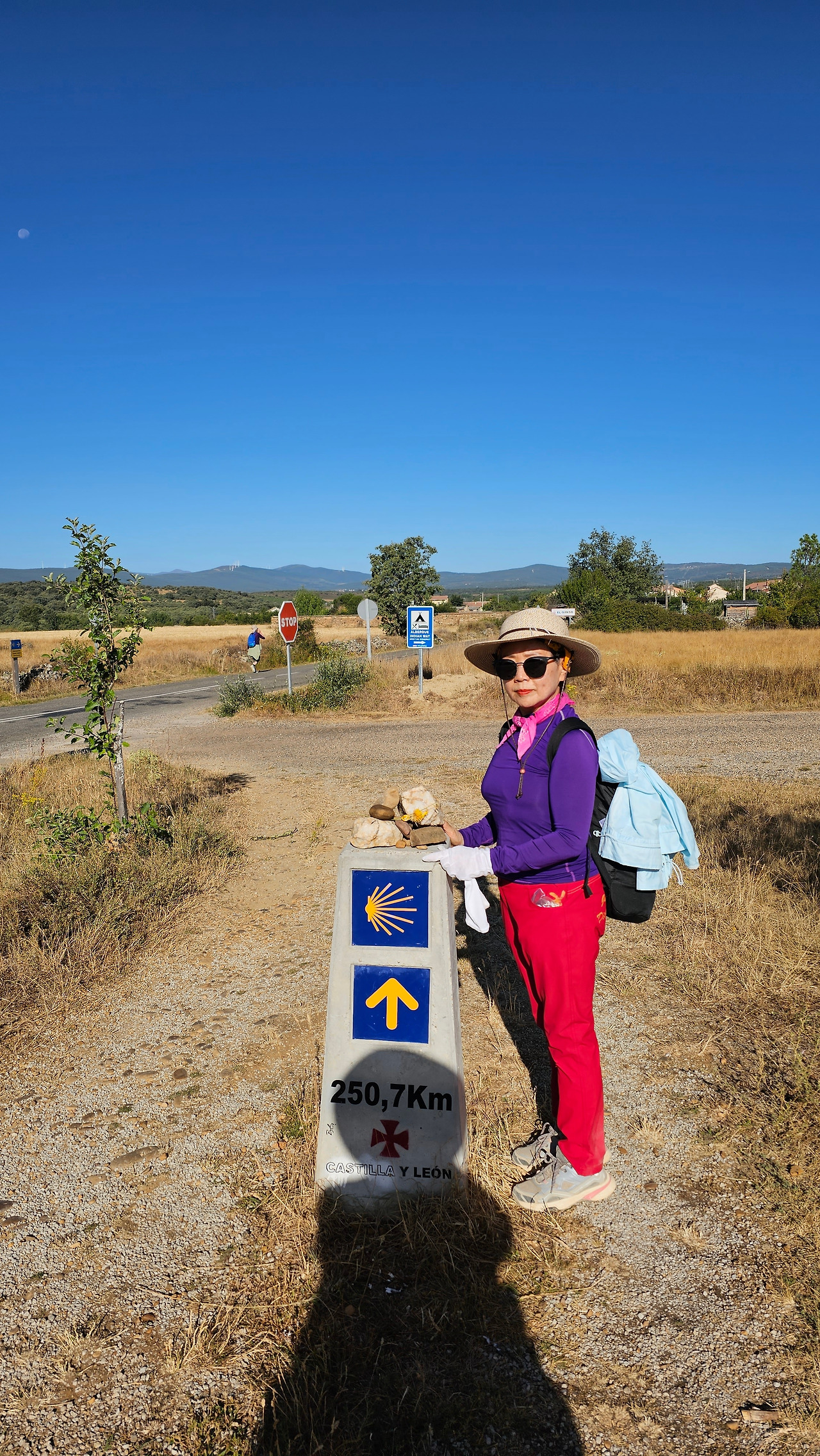 마을을 벗어나도 돌담으로 둘러싸인 밭들이 나오고, 허물어진 돌담 건물의 잔해들도 많이 보인다. 길가에 순례자를 위한 지팡이와 조롱박을 팔고 있는 노점이 있는데 주인은 어디 갔는지 보이지 않는다. 순례길을 걷는 사람들 중에 등산용 스틱을 주로 많이 사용하지만, 예스럽게 굳이 이런 나무 지팡이를 고집하는 사람들도 더러 있다. 어떤 사람은 자기 키보다도 더 큰 나무지팡이를 들고 걷기도 한다. 금삿갓의 생각은 그건 도리어 짐스러운데 힘들게 왜 들고 다니는지 이해가 가질 않는다. 길가의 조형물 옆에 가지런히 벗어 놓은 등산화 한 켤레가 색이 바랜 채 놓여있다. 주인은 벌써 순례길을 다 걷고 고향으로 돌아갔을 텐데, 남겨진 신발만 이 길을 오래도록 지키고 있는 것이다. 이 마을은 전체적으로 제주도의 올레길을 연상하면서 걸을 수 있었다.