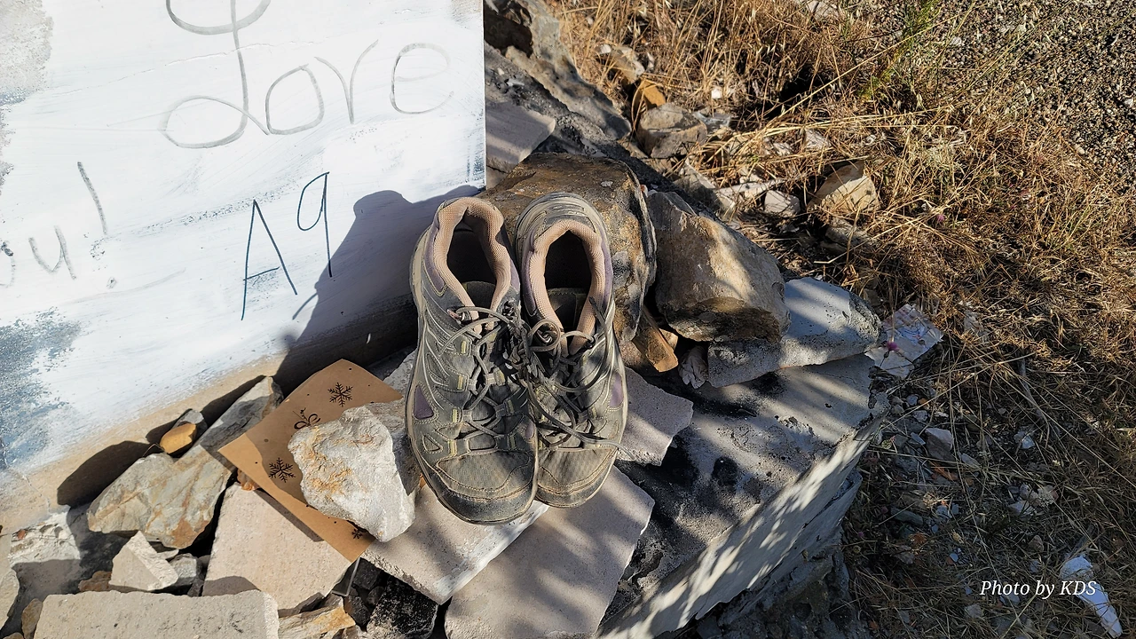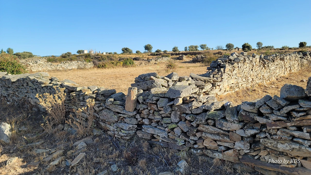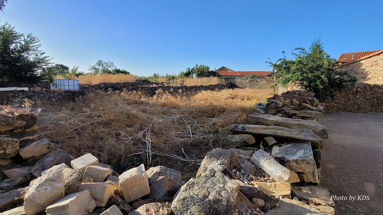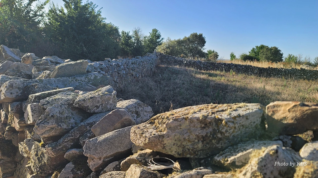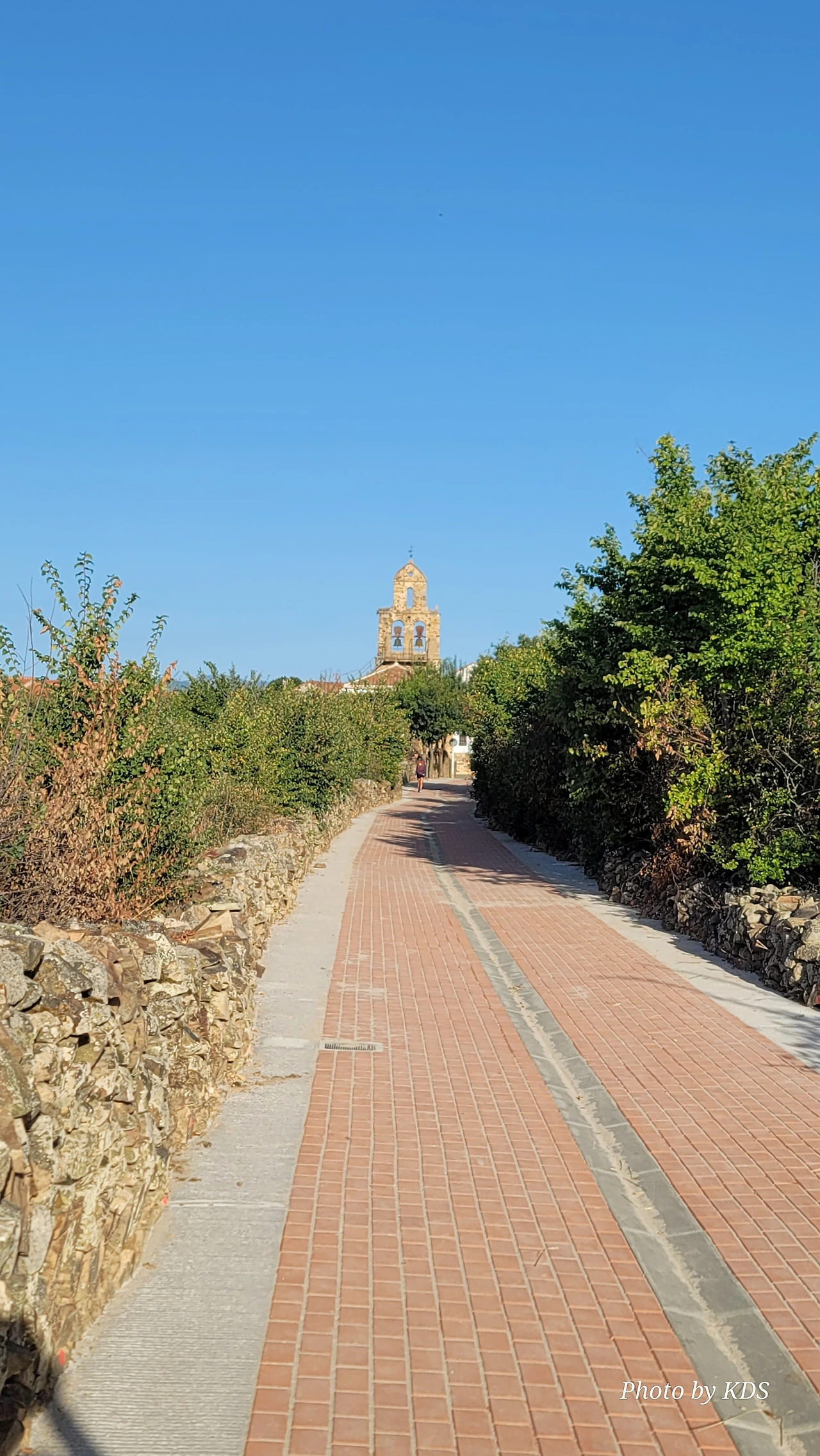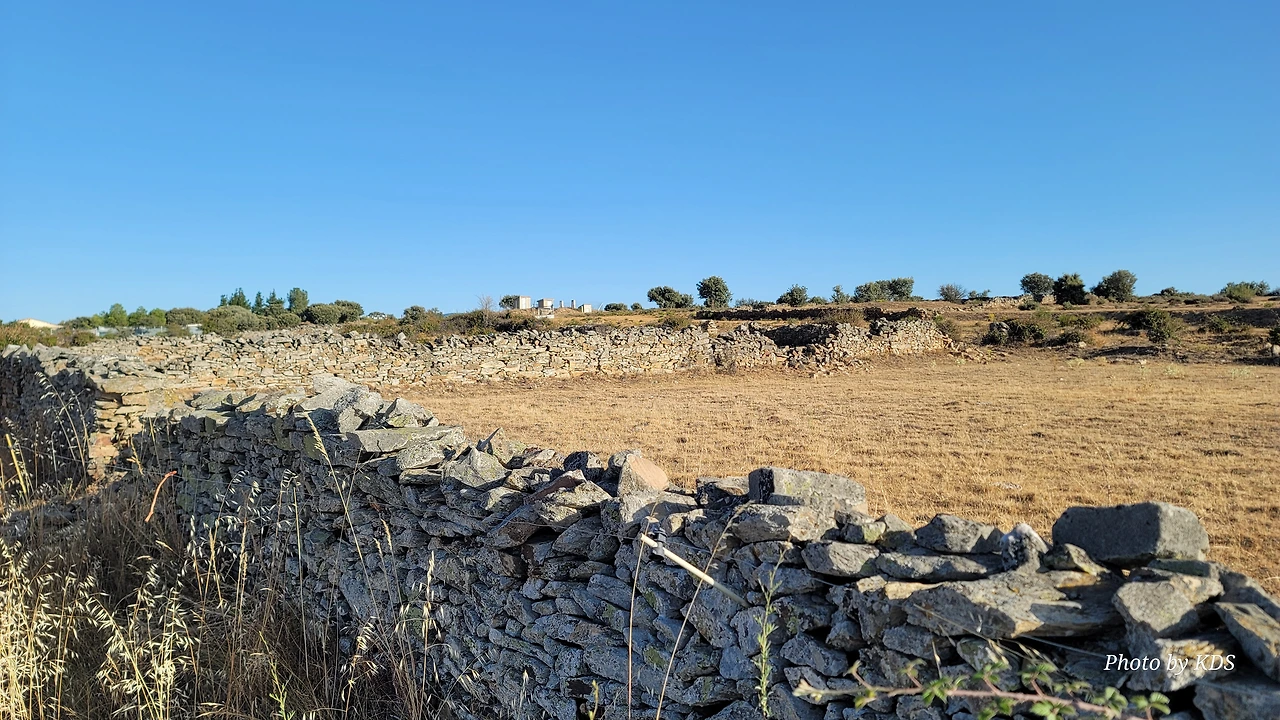 마을을 벗어나도 돌담으로 둘러싸인 밭들이 나오고, 허물어진 돌담 건물의 잔해들도 많이 보인다. 길가에 순례자를 위한 지팡이와 조롱박을 팔고 있는 노점이 있는데 주인은 어디 갔는지 보이지 않는다. 순례길을 걷는 사람들 중에 등산용 스틱을 주로 많이 사용하지만, 예스럽게 굳이 이런 나무 지팡이를 고집하는 사람들도 더러 있다. 어떤 사람은 자기 키보다도 더 큰 나무지팡이를 들고 걷기도 한다. 금삿갓의 생각은 그건 도리어 짐스러운데 힘들게 왜 들고 다니는지 이해가 가질 않는다. 길가의 조형물 옆에 가지런히 벗어 놓은 등산화 한 켤레가 색이 바랜 채 놓여있다. 주인은 벌써 순례길을 다 걷고 고향으로 돌아갔을 텐데, 남겨진 신발만 이 길을 오래도록 지키고 있는 것이다. 이 마을은 전체적으로 제주도의 올레길을 연상하면서 걸을 수 있었다.