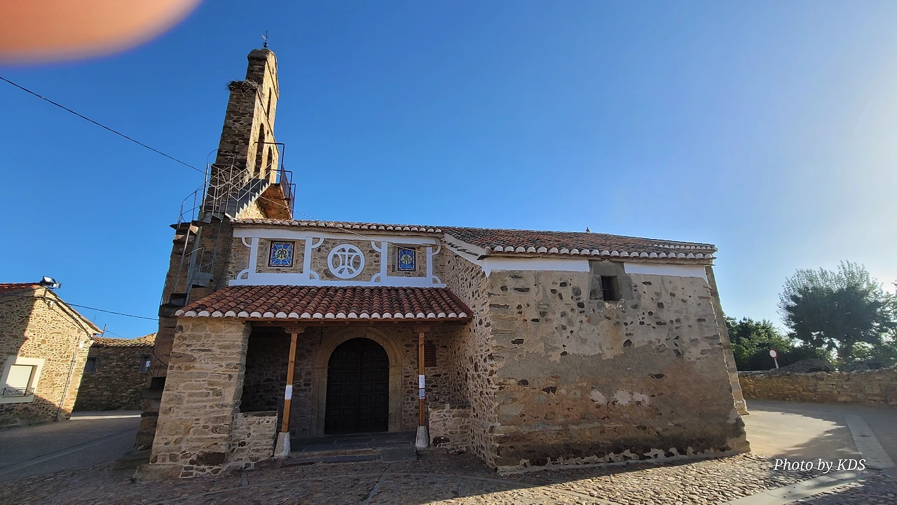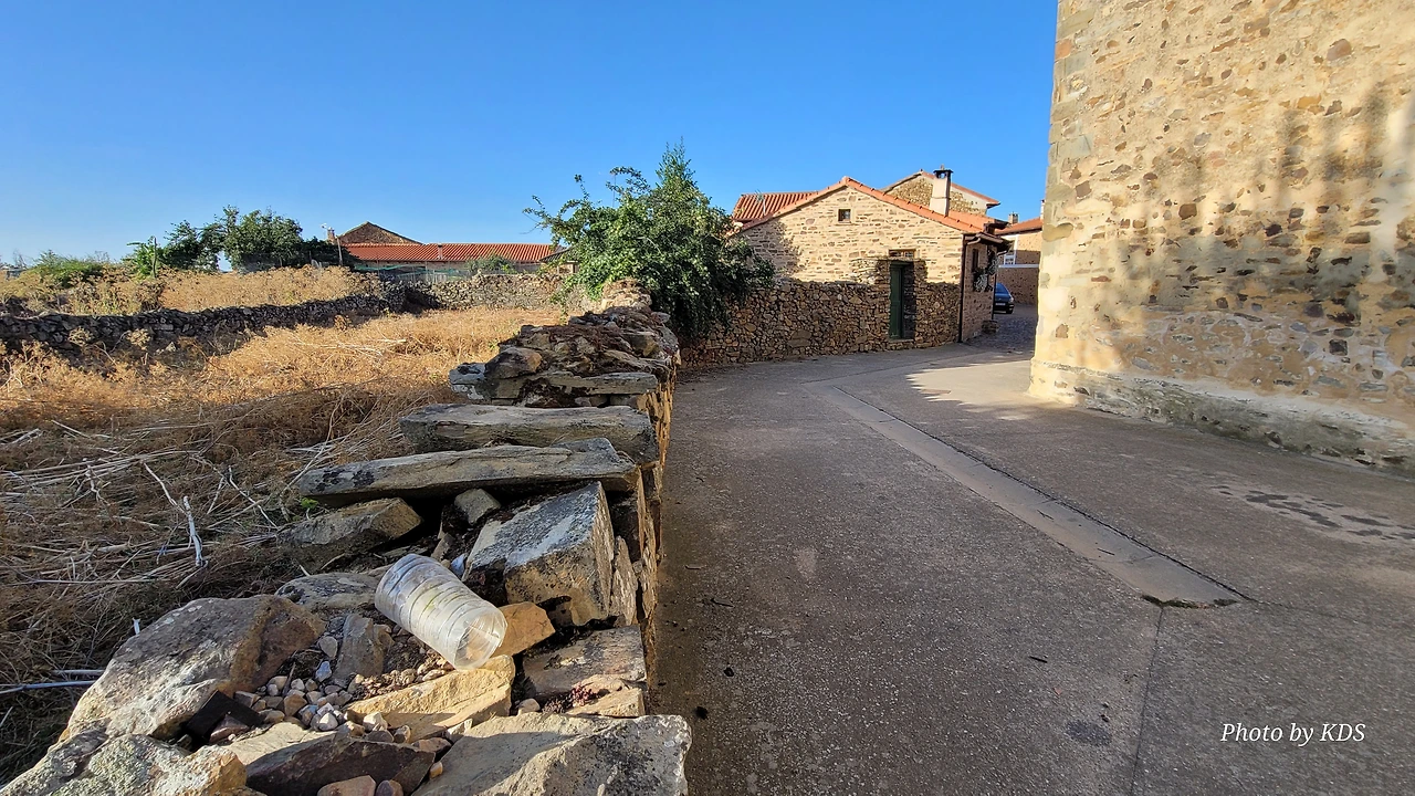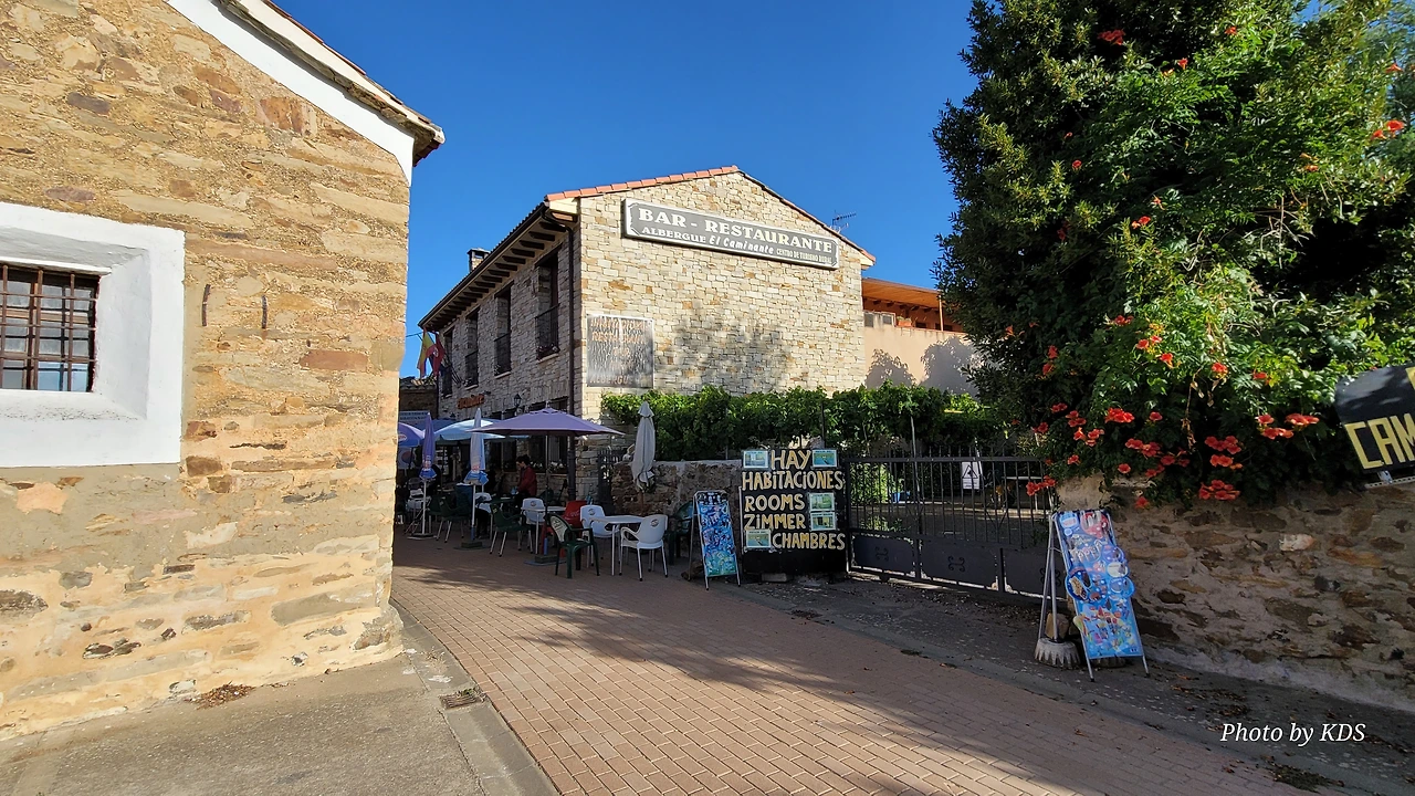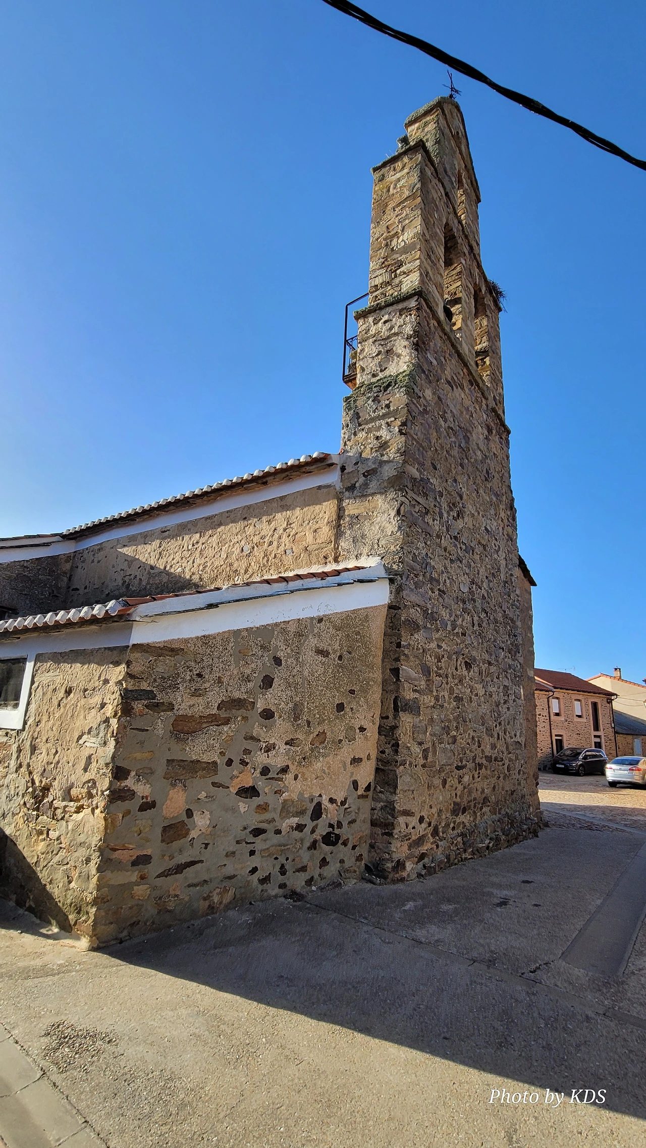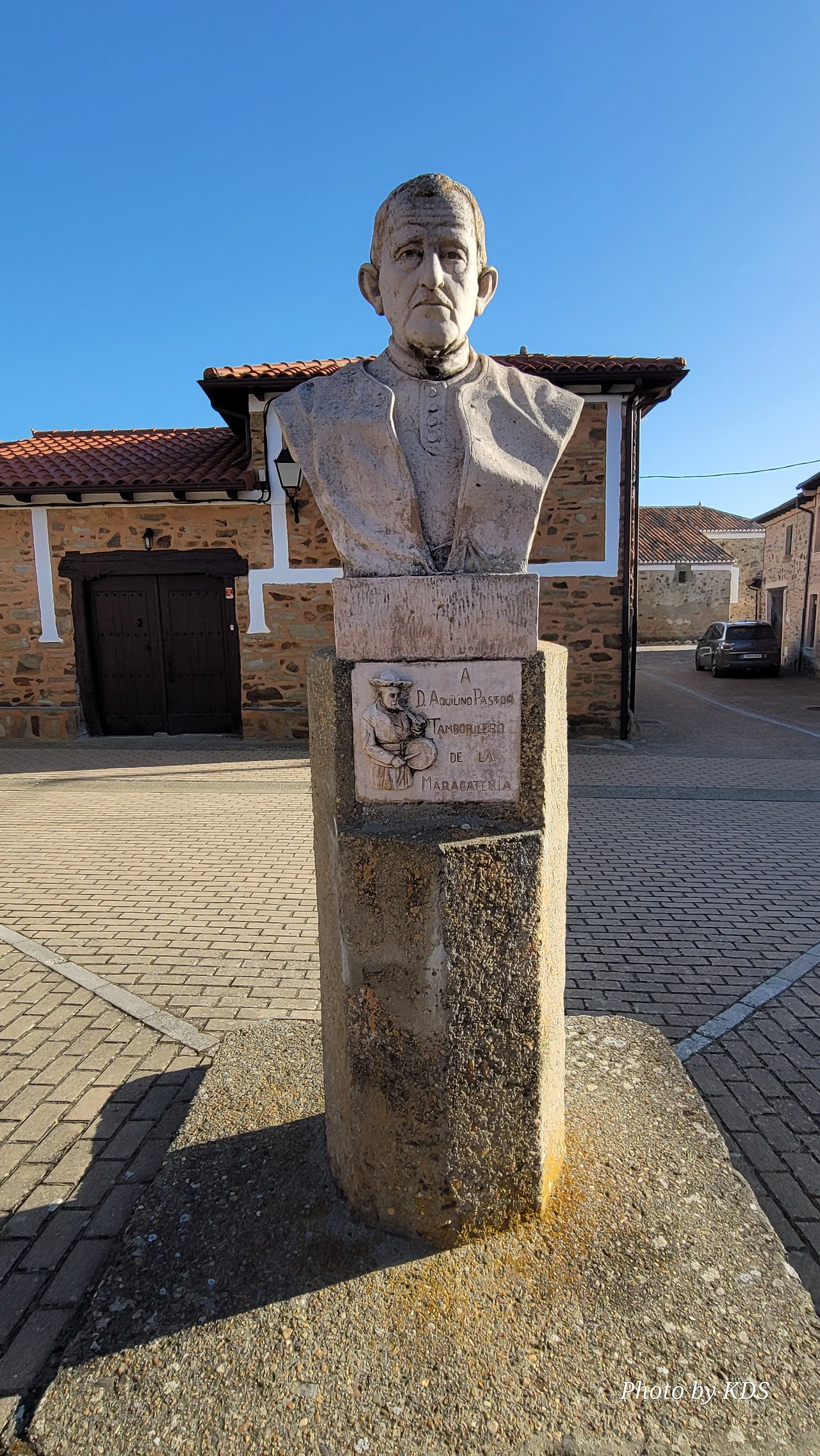 산따 까딸리나 데 소모사(Santa Catalina de Somoza) 마을은 그 이름에 들어있는 소모사(Somoza)는 라틴어로 '산 밑'을 나타내는 말이다. 이 마을이 해발 870m 정도인데, 여기서부터 점차 순례길의 고도가 높아져서 해발 1515m의 레온 산(Montes de Leon)을 넘어가야 한다. 그래서 아마 산밑의 마을로 이름이 지어졌나 보다. 이 마을의 첫 느낌은 우리의 제주도 시골 돌담길 같다. 대부분의 주택들이 돌담으로 지어져 있고, 허물어진 건물도 돌담이다. 주변의 밭들도 제주처럼 돌담으로 경계를 표시하는 것 같다. 마을의 중안 광장에 이 지방에서 태어난 땀보릴레로(Tamborilero)라고 하는 작은북의 명 연주자인 아낄리노 빠스또르(Aquilino Pastor)의 흉상이 서 있다. 마을에는 산따 마리아 교구 성당(Iglesia Parroquial de Santa Maria)이 있다. 1708년에 건축되었으며, 1982년에 개축되었다. 성당은 본당과 단순한 제단으로 구성되어 있으며, 하나는 고전주의 양식이고 다른 하나는 바로크 양식이다. 고색창연한 종탑이 높이 서있다.