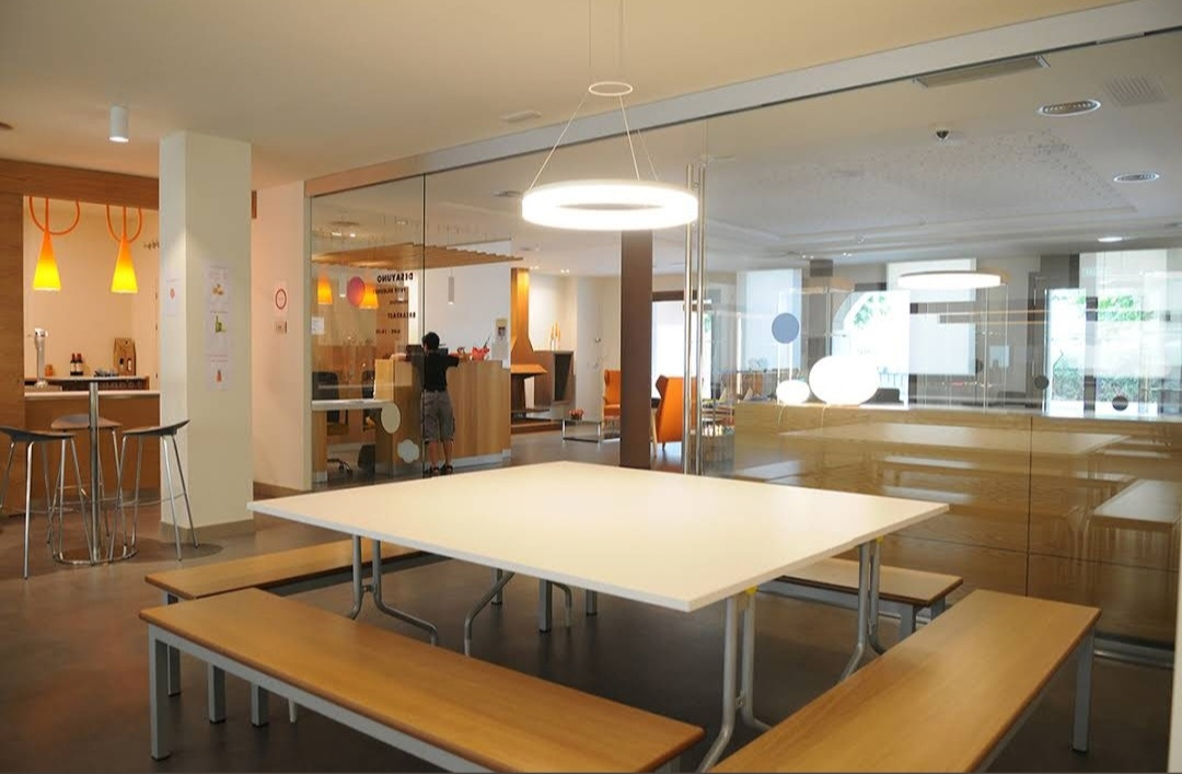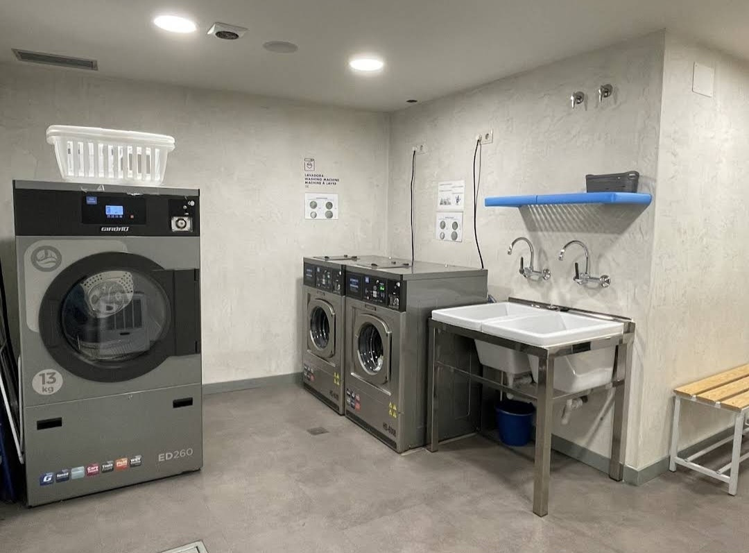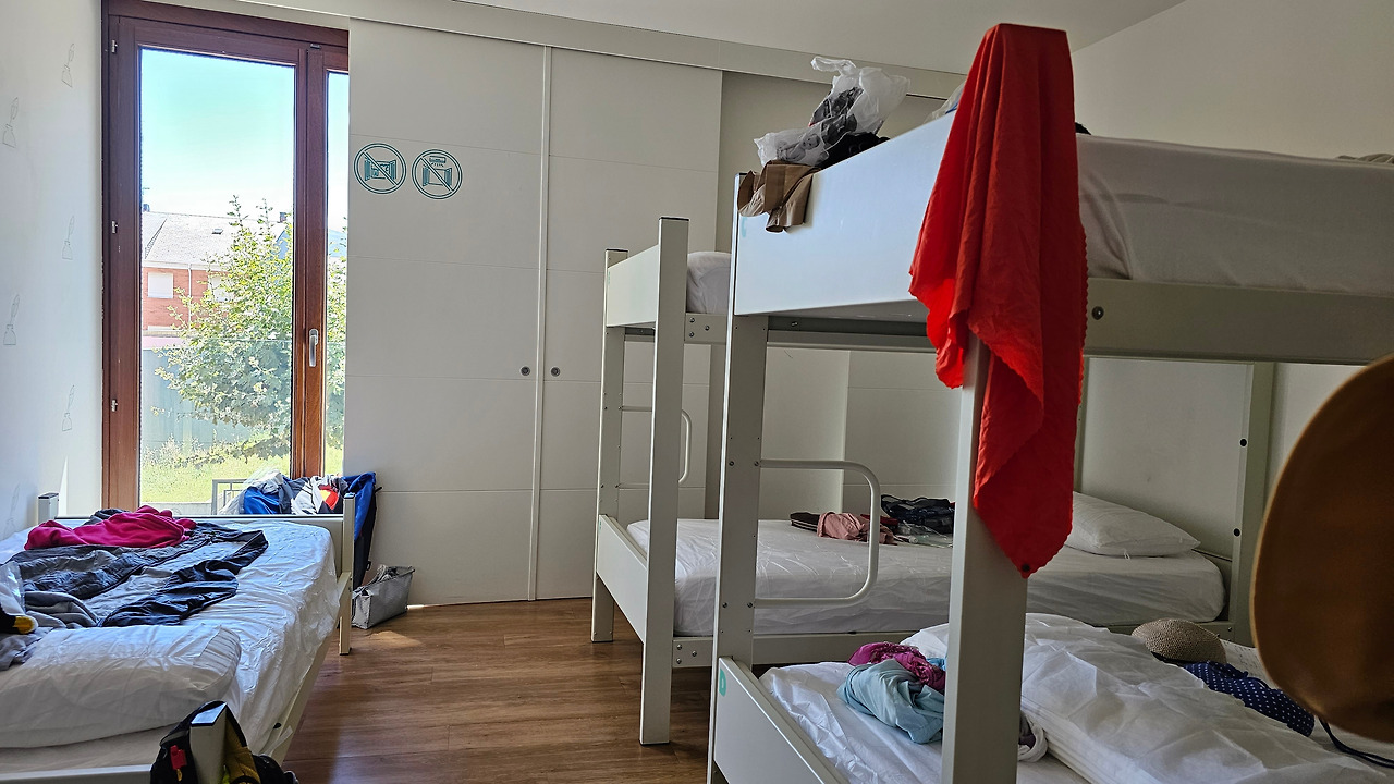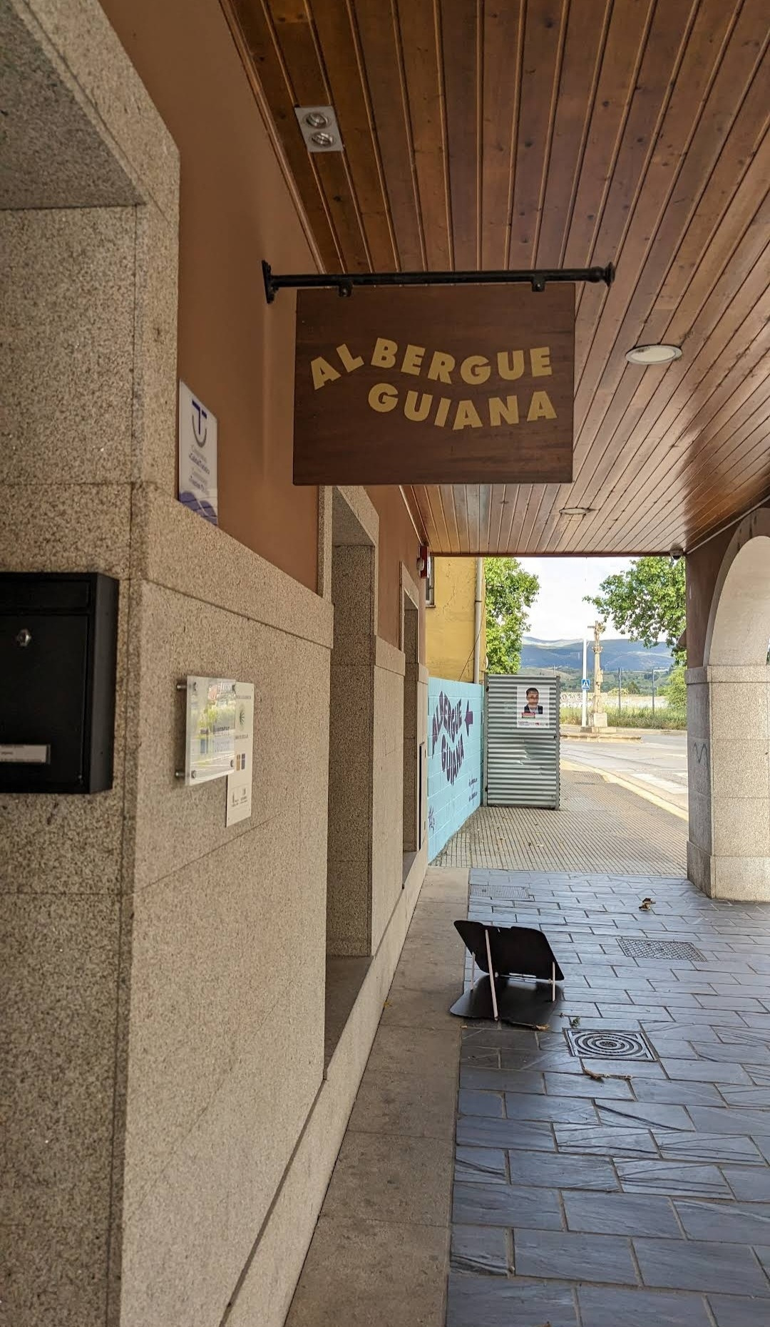 지친 발걸음으로 우여곡절 끝에 아주 현대적이고 멋진 알베르게를 발견했다. 완전 현대식 건물에 시설은 호텔급으로 깨끗하고 이제까지의 시골 알베르게와는 수준 차이 나게 화려했다. 들어가는 입구의 로비부터 유리로 된 깨끗한 로비가 있고, 모든 객실도 깨끗하고 침대도 새것처럼 보였다. 화장실이나 각종 편의 시설도 안주 완벽했다. 기아나 호스텔 알베르게(Guiana Hostel Albergue)이다. 큰 도로변의 3층의 현대식 건물이다. 성곽도 그리 멀지 않고, 주변에 슈퍼마켓도 몇 개 있어서 조선 과객 금삿갓으로서는 아주 훌륭한 숙소였다. 주방과 식당도 현대식이고 세탁실은 지하에 있고, 자동세탁기와 건조기가 설치되어 있다. 가난한 순례객 순례객 입장에서는 빨랫감을 밖의 빨랫줄에서 건조할 수 없는 것이 아쉬움이었다. 할 수 없이 4유로를 지불하고 건조기를 사용할 수밖에 없었다. 자전거 순례객을 위한 자전거 보관소와 수리 시설도 갖추고 있었다. 휴게 시설에는 당구대도 있었다. 물론 당구를 치는 사람은 볼 수 없었다. 오늘은 독일에서 온 여성 순례객 1명, 영국 순례객 남녀, 한국 순례객인 젊은 남녀 이렇게 7명이 같은 방을 사용하게 되었다.