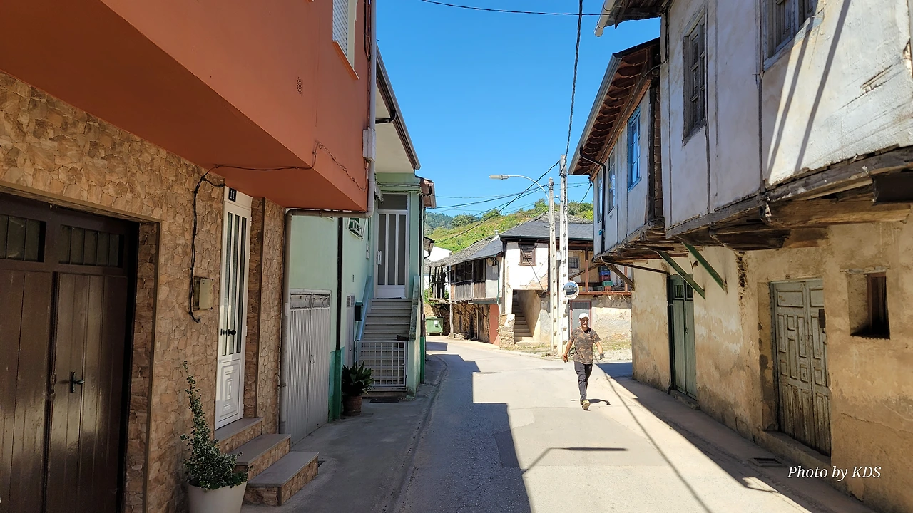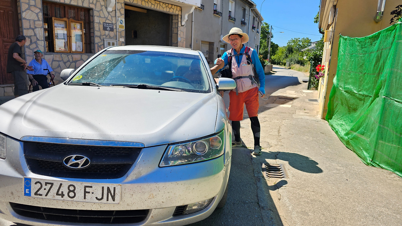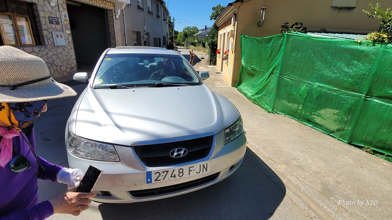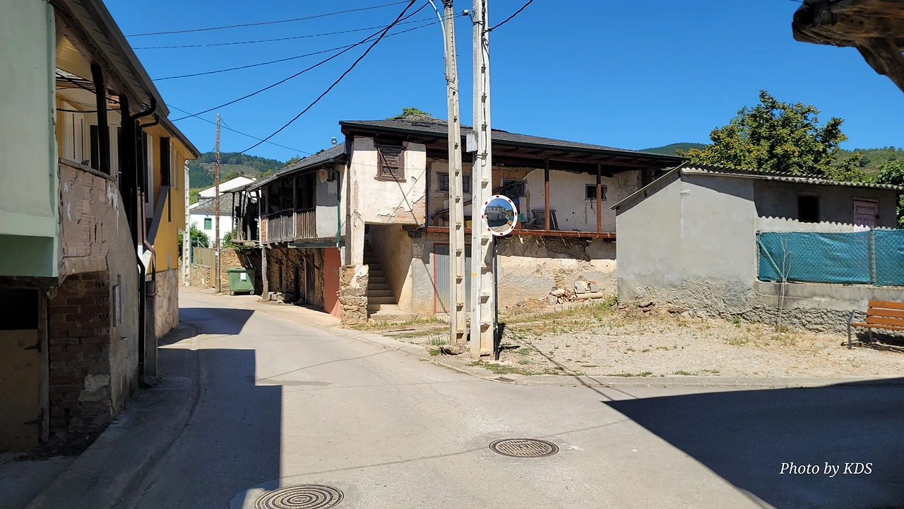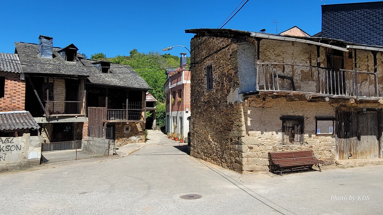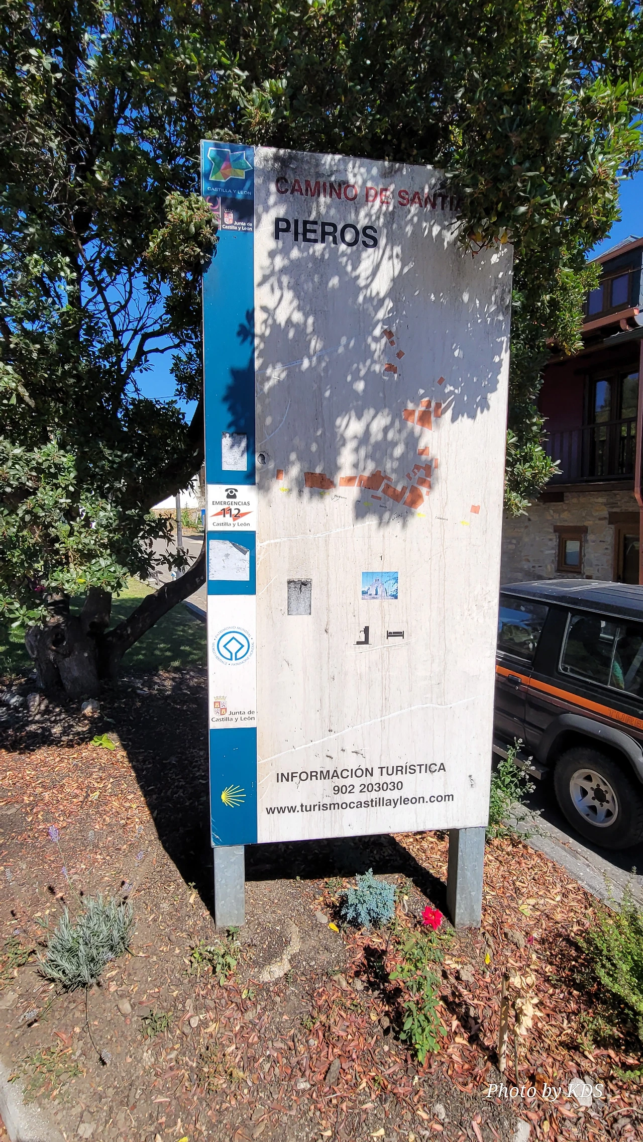 까까벨로스(Cacabelos) 마을에서 언덕길을 올라가면 주변의 언덕과 구릉지대는 온통 포도밭이다. 작열하는 태양 아래서 포도송이들이 알알이 영글어가고 있다. 불그스레한 황토 흙에서 자라는 포도나무들이 아주 싱그럽다. 언덕을 넘어 도달한 작은 마을이 삐에로스(Pieros)이다. 마을은 정말 작아서 집도 몇 채 되지 않는 것 같고, 순례자 숙소인 알베르게도 겨우 하나가 있었다. 마을의 중앙으로 나 있는 길을 걷고 있는데, 낯익은 자동차가 다가온다. 자세히 보니 현대자동차의 소나타다. 이제까지 거의 일본 자동차만 많이 보았는데, 갑자기 소나타를 보니 마치 고향 사람을 만난 기분이다. 지나가는 차를 세워서 말을 걸어 본다. 자동차 성능이 어떻고, 사용상의 문제는 없느냐고 물어보았다. 운전자의 반응은 아주 좋단다. 자기는 한국을 아주 좋아한다고 너스레를 떤다. 마을에는 폐허가 된 쓸어질 듯한 집들이 많이 방치되어 있었다. 한 때 이곳에도 사람들이 많이 살았지만 지금은 저렇게 폐허가 된 것이다. 폐허가 된 빈집을 보자니 인생의 허무감이 갑자기 든다. 감상에 젖어 있을 처지가 못 되는 금삿갓으로서는 계속해서 발길을 재촉하지 않을 수 없다. 언덕을 하나 더 넘어야 오늘의 종착지에 도달할 수 있기 때문이다.