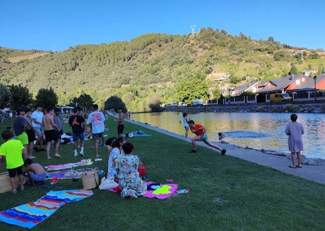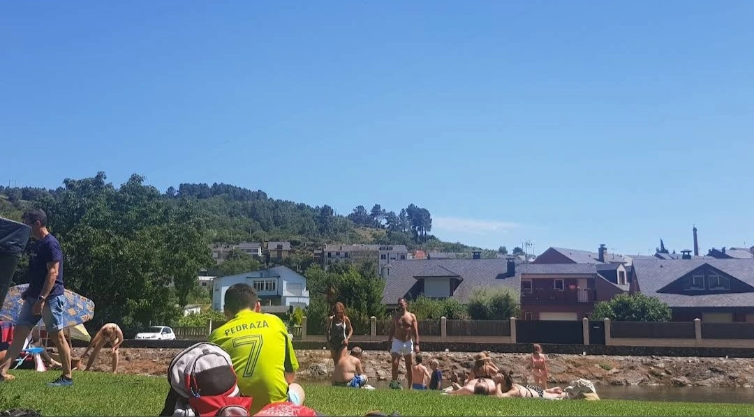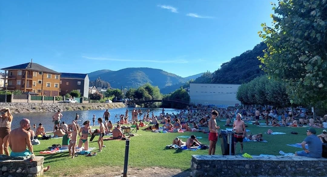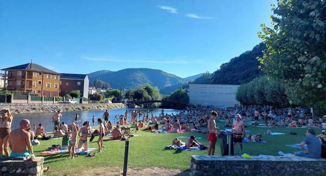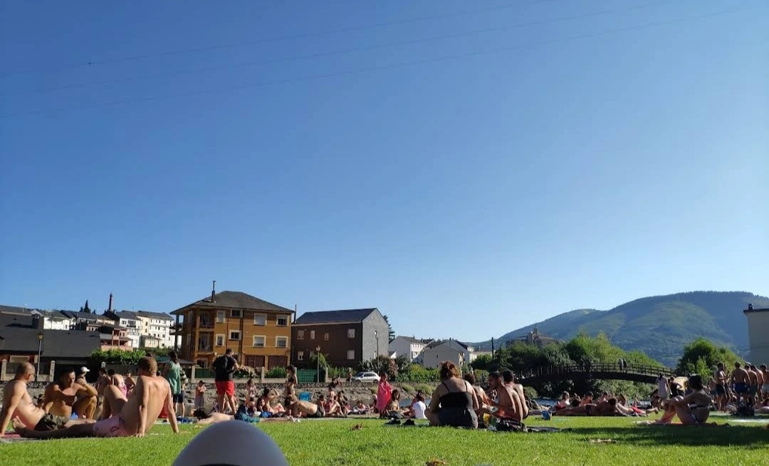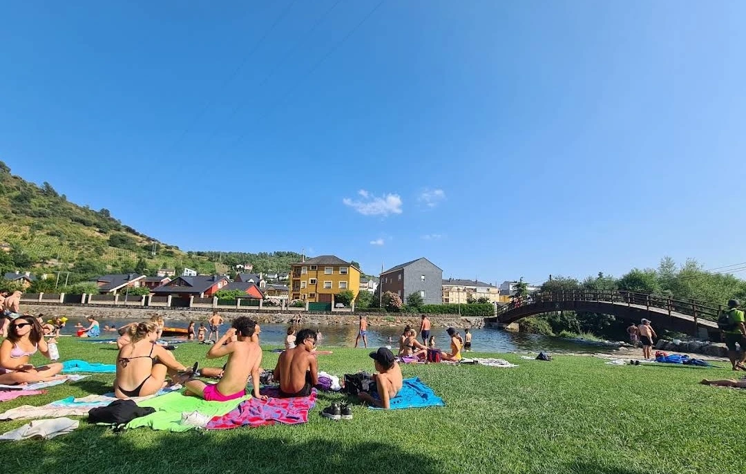 비야프랑카 델 비에르소(Villafranca del Bierzo) 마을은 정말 아기자기한 맛이 있었다. 마을을 끼고 흐르는 부르비아 강(Rio Burbia)과 발카르세 강(Rio Valcarce)은 투명하게 말고 수량도 많다. 두 강은 마을의 중간 정도에서 만나 합류하여 하류로 흘러간다. 부르비아 강 쪽으로 마을의 상류 끝자락에 여름이면 인공으로 보를 막고 야외 강수욕장을 만들어서 모든 시민이나 관광객이 무료로 즐길 수 있다. 강 옆으로 넓은 고수 부지에는 잔디를 잘 가꾸어서 돗자리를 펴고 일광욕을 하거나 음식을 먹으면서 피서를 즐기는 인파가 많다. 햇살이 뜨거우면 물에 들어가서 수영을 하고 지치면 다시 나와서 나무 그늘이나 그늘막 텐트에서 휴식을 취할 수도 있었다. 두 강이 합류해서 만나는 지점 부근에 시멘트로 야외 수영장을 조성해 놓았지만 이곳 자연 수영장을 사람들이 훨씬 더 선호하는 것 같다. 강을 가로지르는 다리는 아치형으로 목재를 사용하여 멋지게 건설해 놓았다.