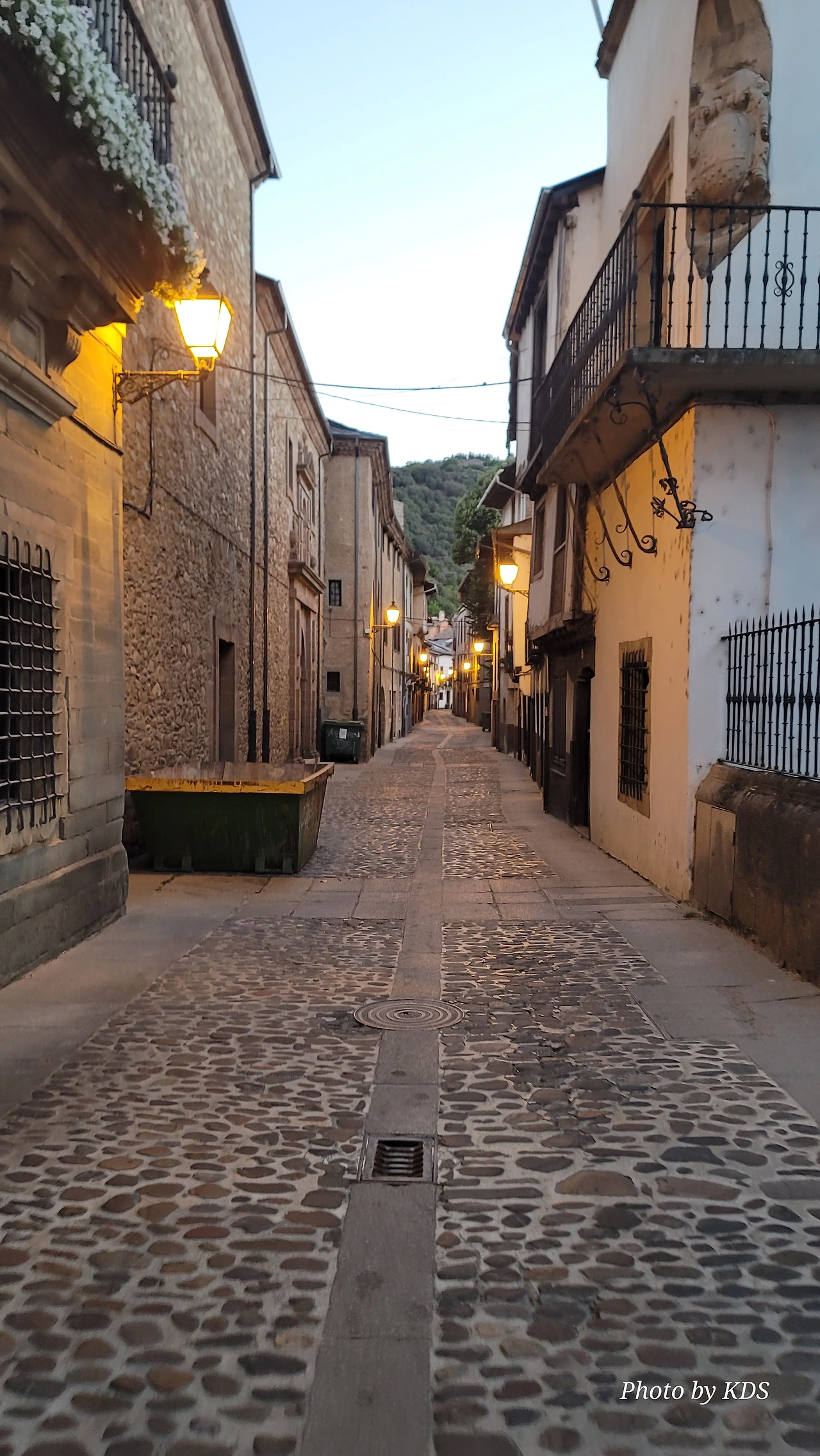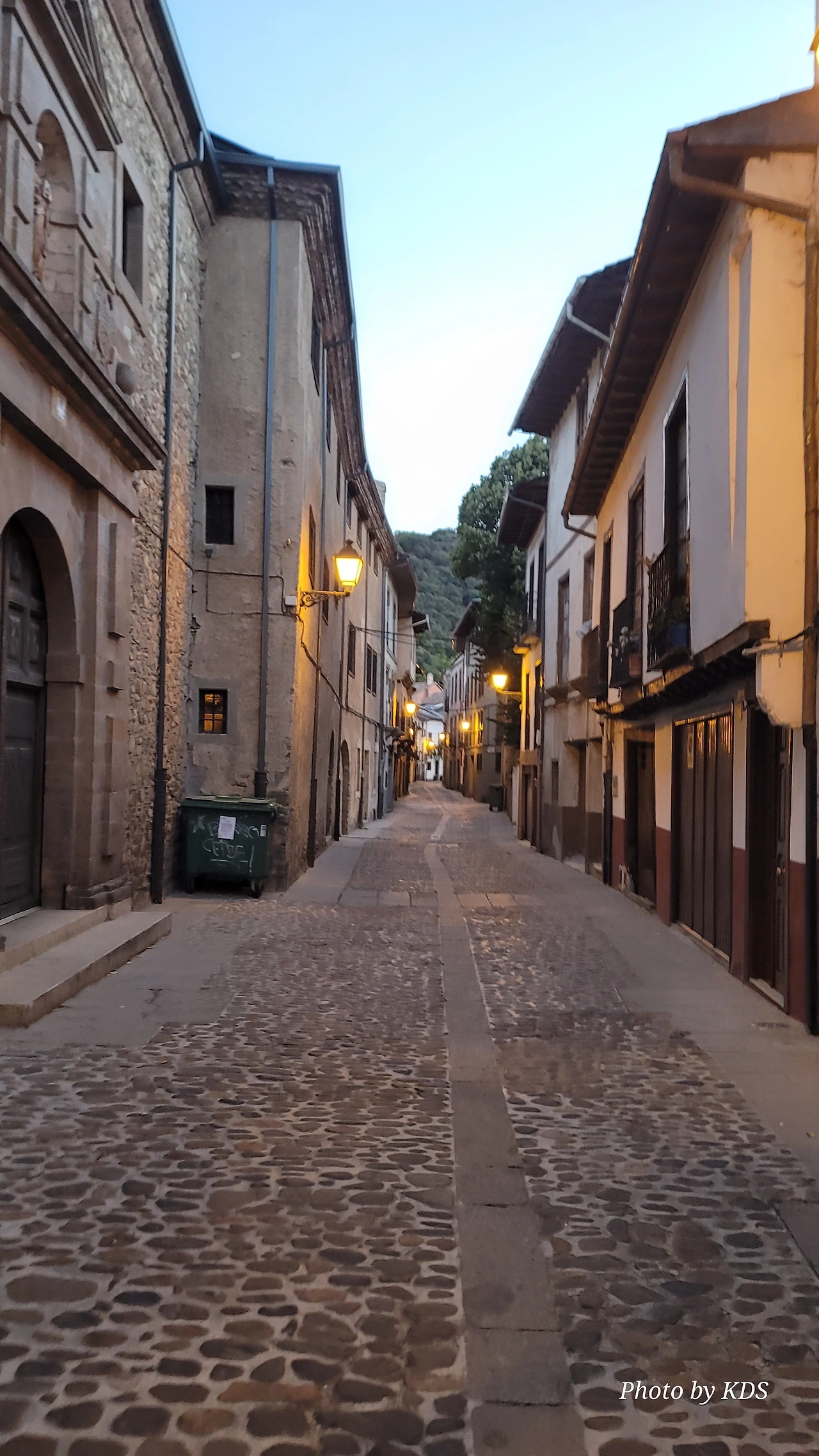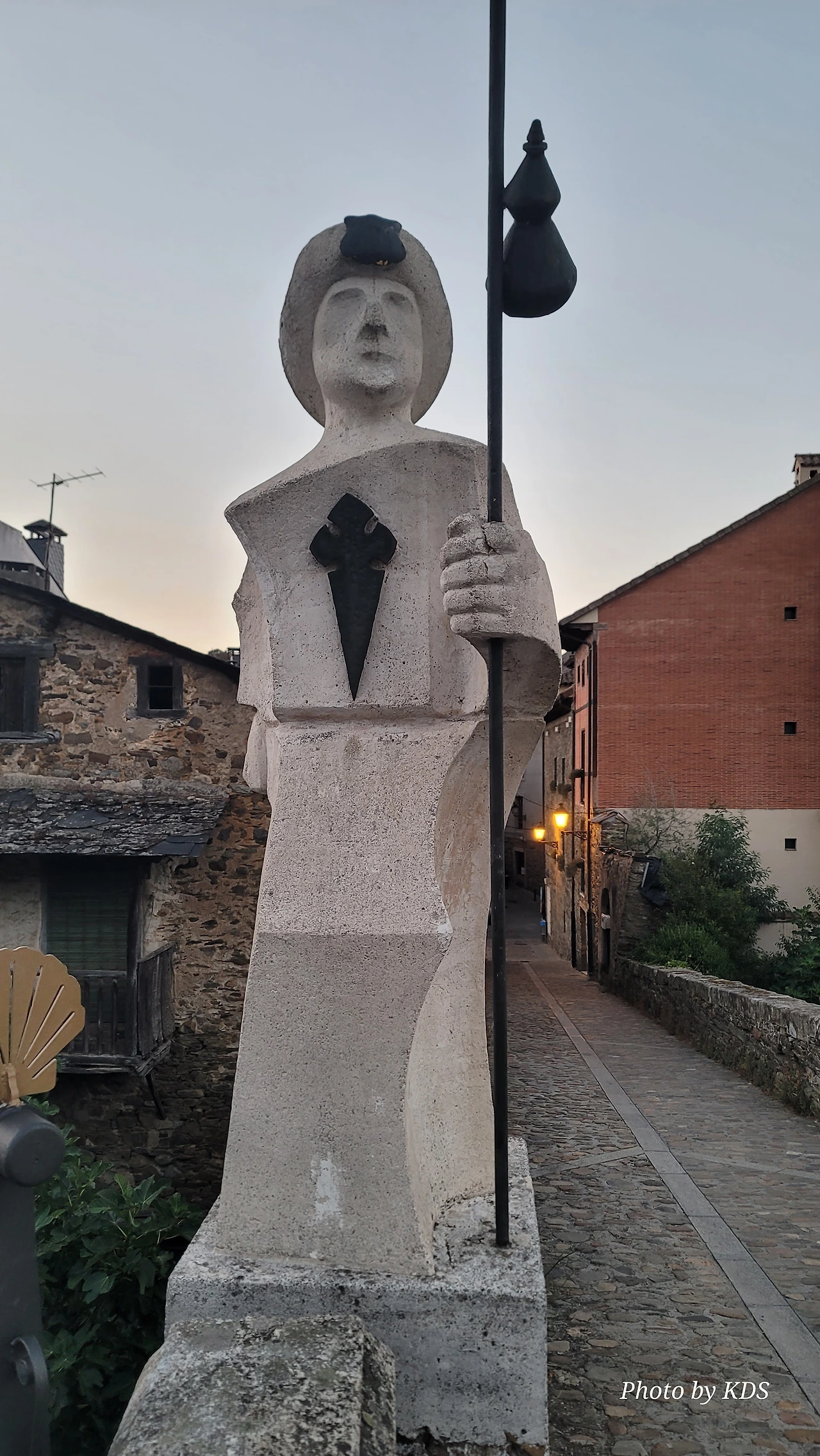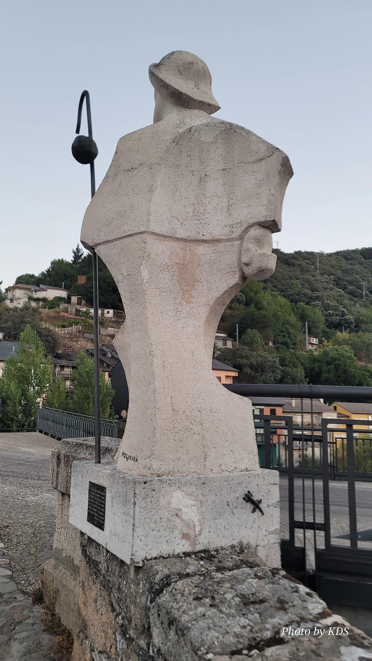 비야프랑카 델 비에르소(Villafranca del Bierzo)에서 아침 7시 20분에 숙소를 나오니 거리에는 아직 가로등이 꺼지지 않고 있다. 이 마을의 오래된 골목길을 빠져나와서 부르비아 강(Rio Burbia)의 다리에 올라서니 돌로 만든 순례자 조형물이 멋지게 서 있다. 다리를 건너 도시를 빠져나오는 지점에 산티아고 187Km의 이정표가 서있다. 거리는 차츰차츰 줄어들고 있다. 이 지역부터 순례길의 주변에 커다란 밤나무가 많이 보인다. 우리나라의 작은 밤나무가 아니라 성인들의 팔로도 몇 아름씩 되는 고목들이다. 조선 과객 금삿갓이 시골 출신이지만 밤나무가 이렇게 오래도록 크게 자라는 것은 본 적이 없다.