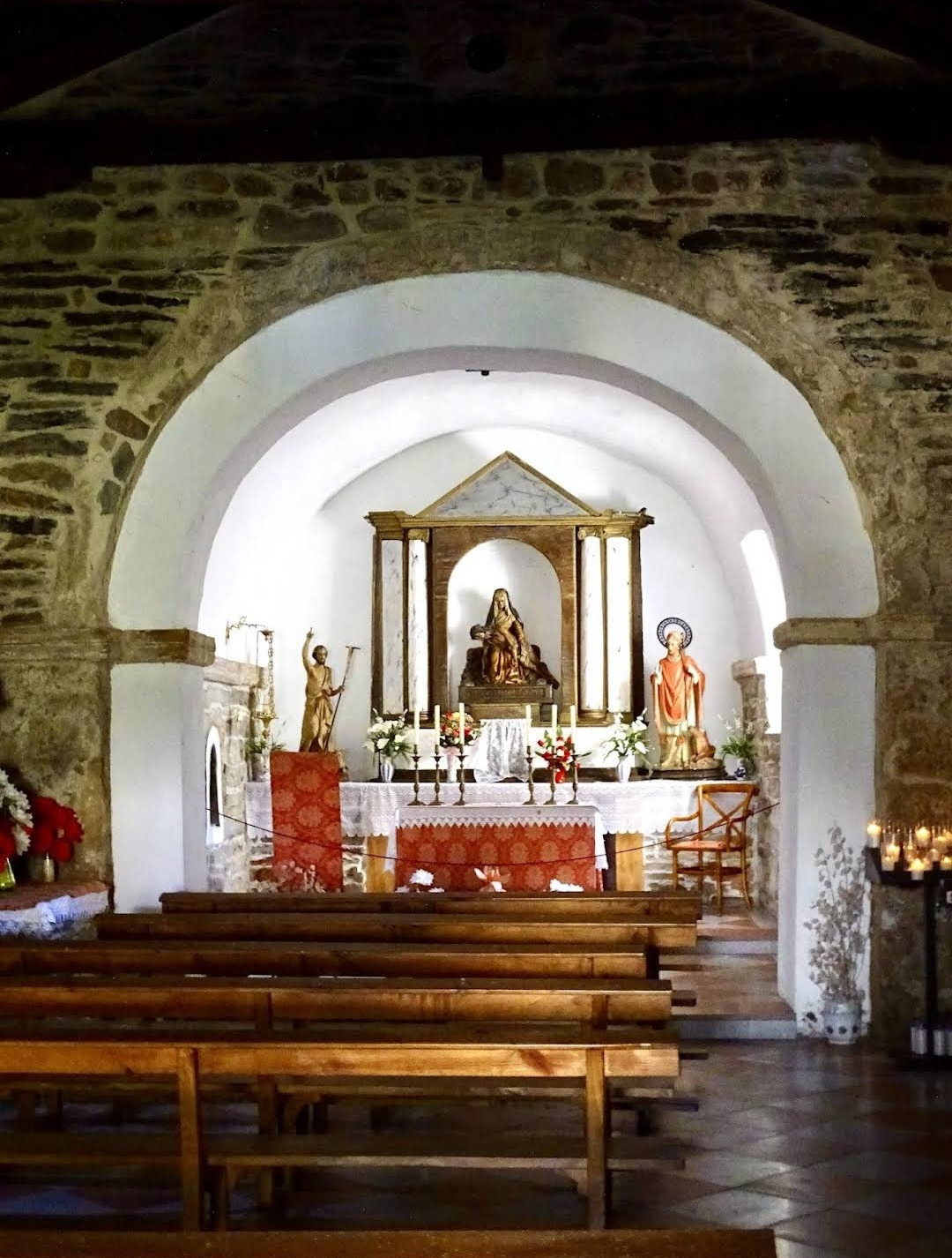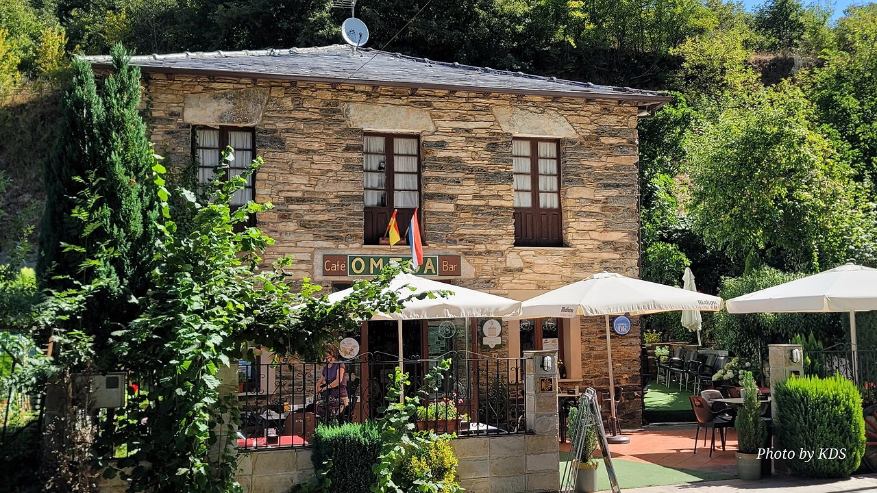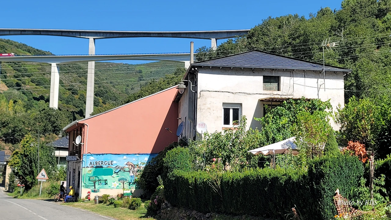 역사적 기록에 따르면 산 프로일란(San Froilan) 성인은 9세기에 이 마을의 인근 동굴에서 은둔자로 기도만 하면서 살았단다. 레온 지역의 주민들의 요청에 따라 알폰소 3세 왕은 그를 주교로 임명했고, 그는 단 5년 동안 그 직위를 맡았다. 루이테란(Ruintelan) 마을은 밤나무 숲에 둘러싸여 있다. 몇 채 없는 집과 오래된 성당이 고풍스러운 마을의 분위기를 풍기고, 이 마을 인근의 동굴 위에 세워진 성 프로일란 성당 때문에 널리 알려졌다. 마을에는 세례자 요한 교구 성당(Iglesia Parroquial de San Juan Bautista)이 있는데, 12세기경에 지어진 작은 성당으로 내진은 직사각형이고 궁륭은 석재로 만들어졌다. 이 마을에서 다음 마을까지는 거의 평탄한 길이지만 다음 마을부터는 서서히 오르막 길을 걸어야 한다. 1,300m가 넘는 고지를 넘어야 하기 때문에 단번에 올라갈 수는 없고 중간에 900m 정도의 마을에서 하룻밤을 쉬고 갈 예정이다. 마을을 가로지르는 고속도로의 다리가 높다랗게 산 중턱에 걸려 있는 모습이 보인다. 이 지역에 밤나무가 많고 밤의 수확이 많아서 그런지 밤으로 만든 맥주를 선보이고 있다. 길가에 설치한 밤맥주(Cerveza de Castanas)라는 광고판에 스페인어, 영어, 독이어, 불어 등등 8개의 서양언어와 당당하게 한글로 밤맥주라고 표기한 것이 있어서 조선 주객(酒客) 금삿갓으로서는 매우 자긍심을 느꼈다.