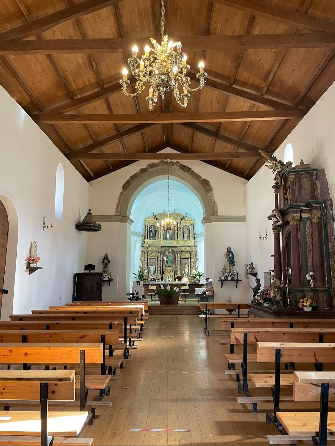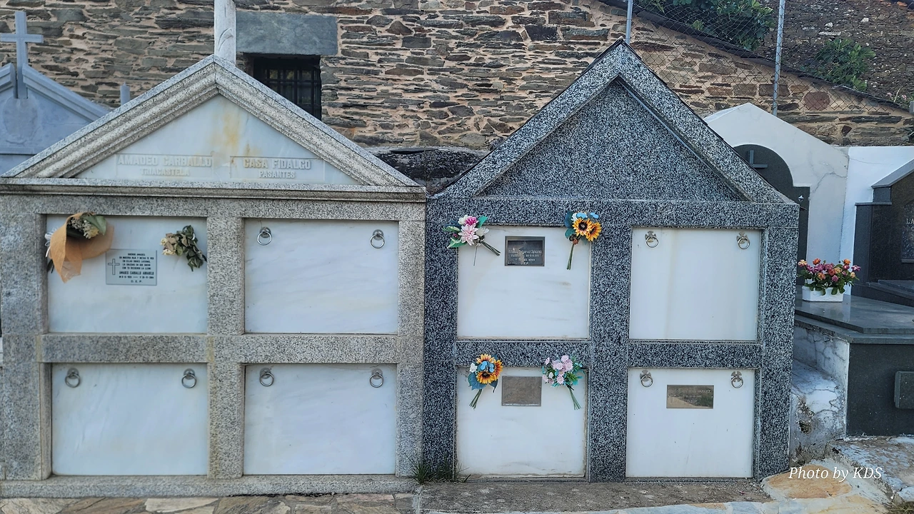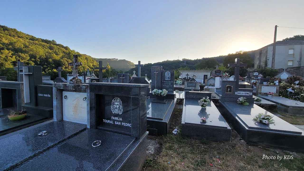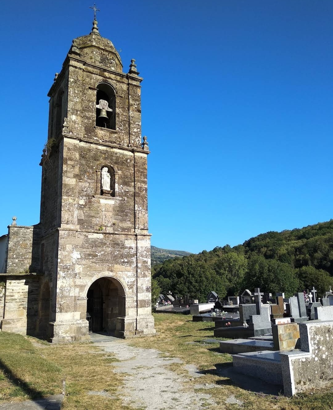 이 마을의 중간쯤에 산띠아고 로만시아 성당(Iglesia Romanica de Santiago)이 있는데, 그 옆으로 공동묘지가 같이 붙어 있다. 이 성당이 산티아고 아포스톨에게 봉헌된 이유는 그 창립과 관련이 있다. 1228년 알폰소 9세에 의해 빌리프란카 비에르소에서 뜨리아까스뗄로로 가는 길의 11번째 현자의 마지막 다리를 지음으로써 산티아고 순례길의 전략적 마을이 되었다. 정확한 건축 연대는 알 수 없으니 그 시대에 지어진 것으로 추정된다. 로마네스크 양식으로 돌로 건축된 소박한 전원풍 성당으로, 성당의 내부에는 복음서를 들고 있는 산띠아고 성인의 순례자상이 보관되어 있다. 현재의 건축물은 1790년도에 세워졌고, 네 개의 정점이 있는 돔으로 장식된 바로크 양식의 종탑이 멋지게 보인다. 성당 옆은 공동묘지는 인생의 순례길을 끝마친 분들의 최후의 안식처로 제공되고 있었다. 교회 안내문이 특이하게 3개의 언어로 작성되어 있는데, 제일 앞이 갈리시아어이고, 다음이 스페인어, 마지막이 영어로 되어 있다.