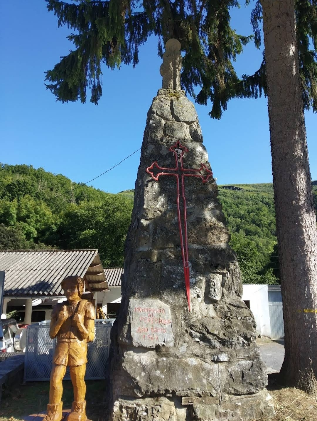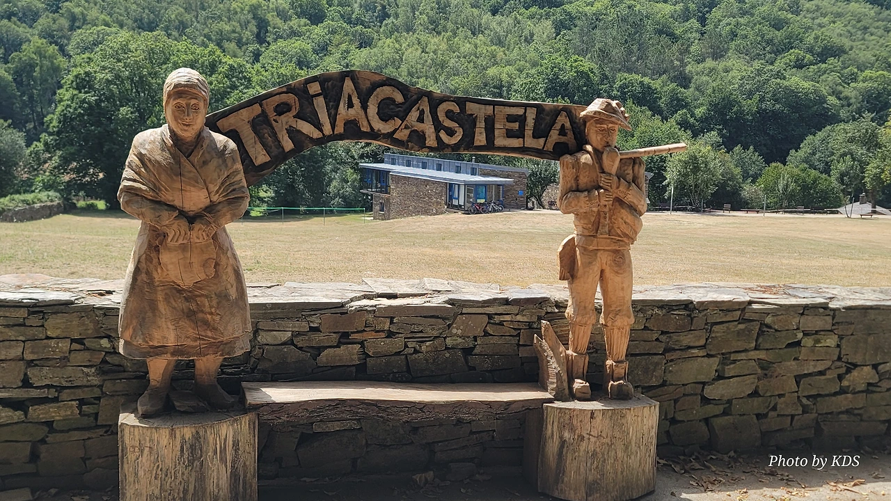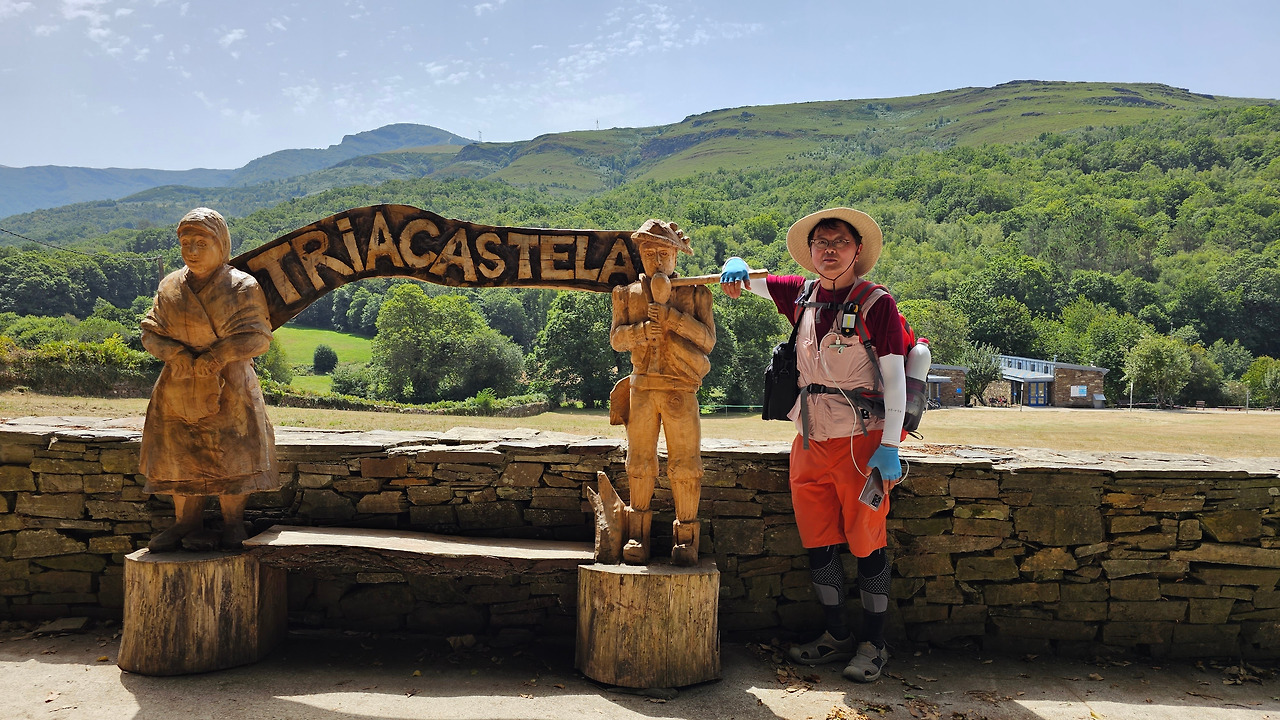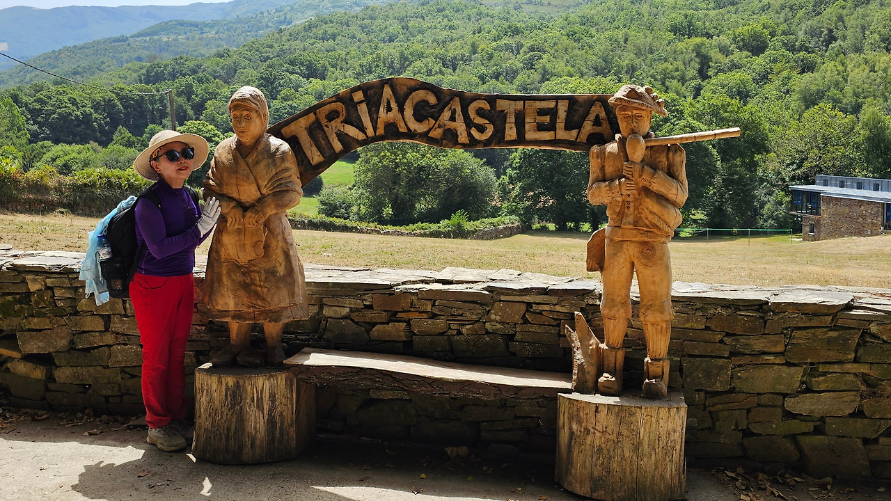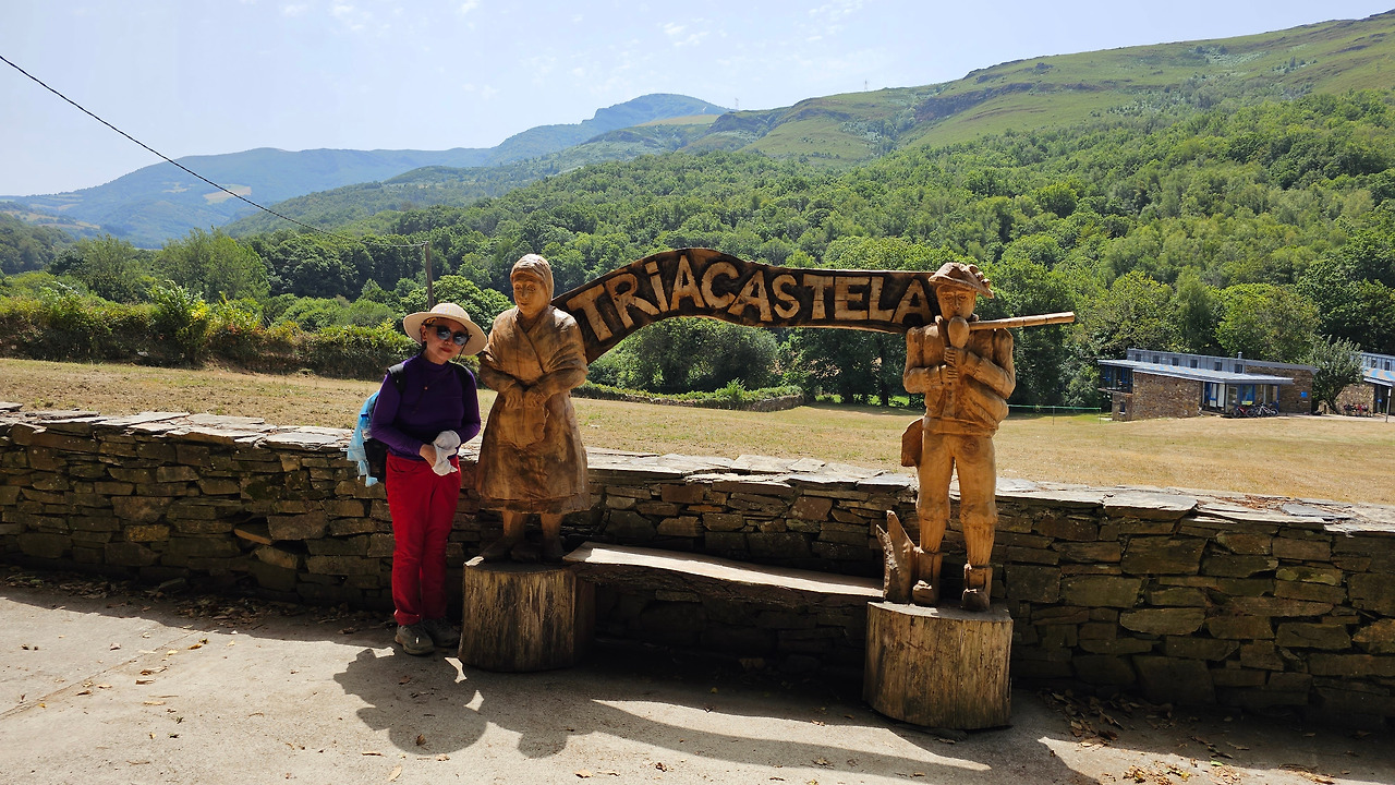 뜨리아까스떼야(Triacastela)는 스페인 갈리시아주의 루고지방에 있는 마을이다. 옛날 한때 이곳에 있던 세 개의 성에서 이름이 유래되었으나 현재는 성이 하나도 존재하지 않는다. 서기 968년 노르만(바이킹) 침략자들이 이곳을 약탈했으나, 결국 세브레이로(Cebreiro) 고개에서 패하고 쫓겨났다고 한다. 아마도 그 당시 그들은 세 개의 성을 모두 파괴했을 것으로 추측한다. 그 후 13세기 알폰소 11세에 의해서 재건되고 부흥했다고 전해진다. 과거 이 마을에는 석회암이 많아서 중세의 순례자들은 이 마을에서 돌을 날라 산띠아고 데 꼼뽀스뗄라의 대성당을 건축할 수 있도록 도움을 주었다고 전해온다. 오 세브레이로 마을에서 계속되는 험한 내리막길을 내려와서 마을 입구에 있는 커다란 나무 조형물이 순례자를 반기면 마을에 당도한 것이다. 오늘 아침 라 파마(La Faba) 마을에서 1,330m 고지를 넘어 총 26.5Km를 걸은 것이다. 이 마을의 초입에 있는 오리비오 알베르게(Oribio Alberge)로 발 닿는 데로 들어갔다. 주인 여사장인 에비라(Evira)가 마치 시골집의 안주인이나 어머니처럼 자상하게 대해 주었다. 내부 시설도 깨끗하고 침대와 시트도 청결했다.