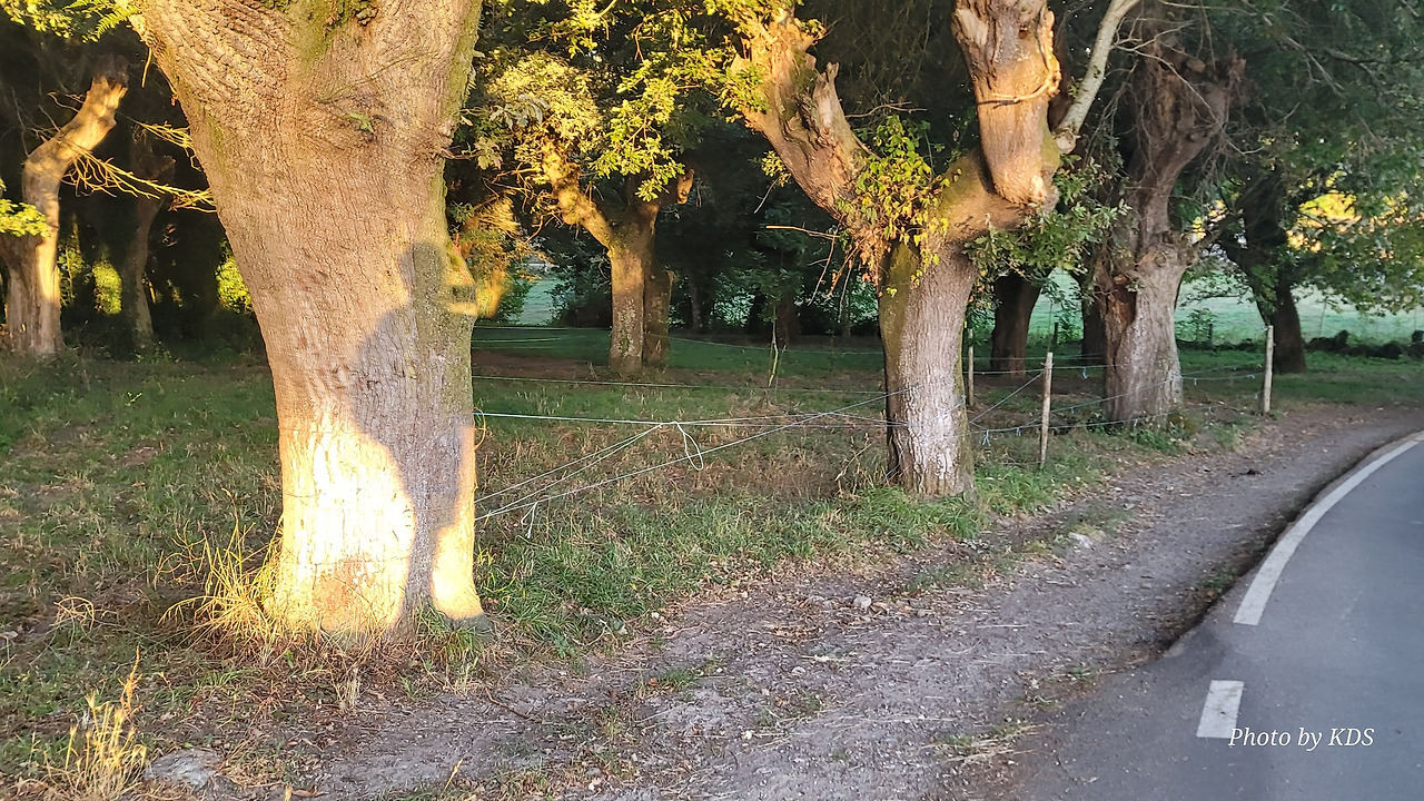 밤꽃만이 아니라 야생화 중에서도 이런 유사한 페로몬을 풍기는 종류가 있다고 한다. 그래서 사실은 벌들도 이 향기를 싫어해서 만약 주변에 다른 향기로운 꽃들이 있으면 밤꽃의 꿀을 채취하지 않고 주변에 꽃이 없을 경우에 밤꿀을 채취하기 때문에 밤꿀의 값이 아카시아나 다른 꽃 보다 더 비산 이유란다. 성분상으로도 아미노산 함량이 높고 항산화 효과가 뛰어나다는 연구결과가 있다. 밤꽃 향기는 이런 기능 말고도 불안감, 우울증 등의 감정 완화 효과도 있다고 알려졌고, 음흉한 생각만 하지 말고 진정으로 보면 밤꽃의 꽃말이 <진심>이니까 진심으로 밤꽃과 알밤을 좋아하면 될 것이다. 우리나라의 밤 산지는 공주 정안면이 최고로 꼽힌다. 금삿갓은 가을에 이곳으로 알밤 주으러 자주 가곤 했다. 지인이 이곳에서 밤농장을 아주 크게 운영하고 있다. 그런데 3년 전에 알밤 주으러 갔다가 동반자와 같이 말벌에 무지막지하게 쏘여서 병원에 며칠간 치료를 받아야 했다. 그 후로는 알밤 주으러 가지 않는다. 이놈들 밤꿀이나 열심히 모을 일이지 자기네들 먹이도 아닌 알밤 줍는다고 마구 공격하다니. 조선 과객 금삿갓이 어릴 때 시골서 알밤 줍던 큰 밤나무들은 요즘 가서 보니 모두 늙어서 죽고, 개량종인 키가 작은 밤나무들 밖에 없었다. 그런데 이곳 순례길의 밤나무는 무슨 종자이길래 이렇게 크고 오래도록 살까? 하나님이 순례객들의 허기를 달래라고 오래 사는 축복을 주신건가?