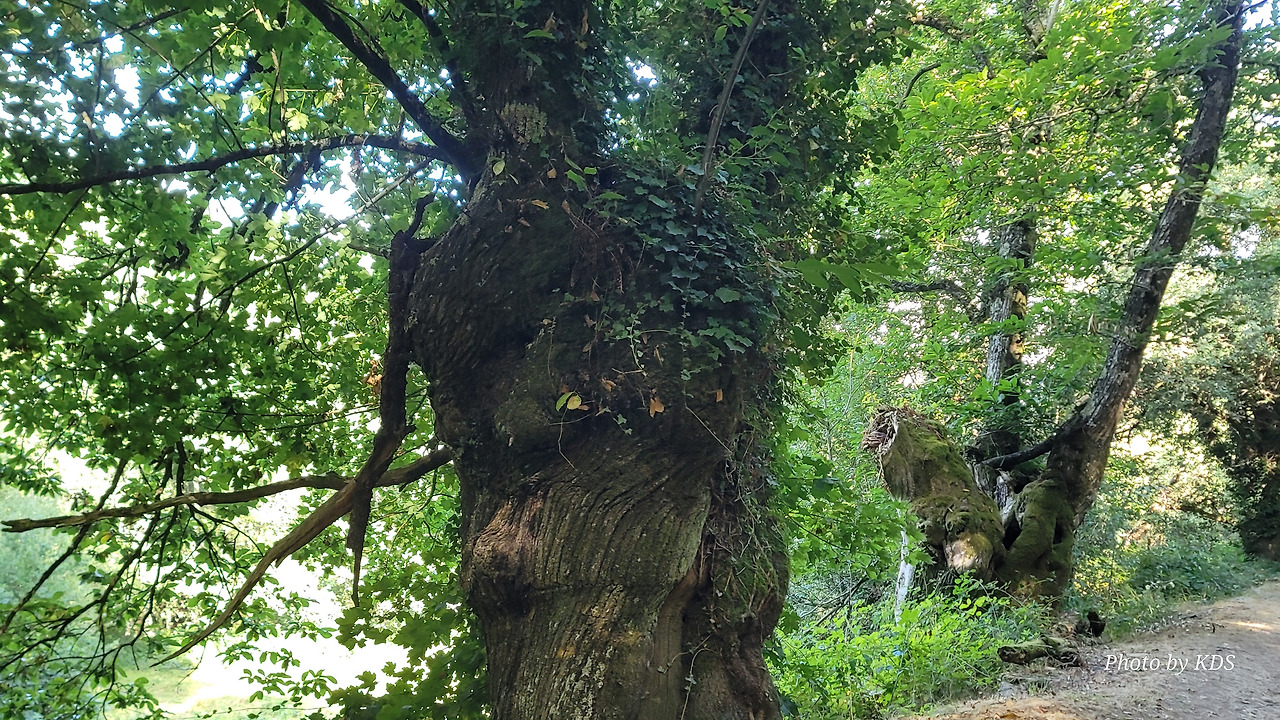 산 끄리스또보 도 레알(San Cristobo do Real) 마을을 스치듯이 지나서 순례길은 렌체(Renche) 마을로 이어진다. 그런데 이 길이 정말 대단하다. 아주 오래된 옛길로 짐작이 된다. 길 옆에 돌을 쌓아 담장을 만들어서 길을 냈는데, 돌에는 파랗게 이끼가 끼어서 마치 사람의 손때가 타지 않은 오래된 계곡에 들어온 것 같다. 특히나 이 길은 정말 우람하고 오래된 밤나무 숲이 장관이다. 길가의 모든 나무의 숲은 커다란 밤나무이다. 우리나라는 이렇게 크고 밑동이 굵은 밤나무를 본 적이 없는데 여기 이런 정도는 예사이다. 어른의 팔로도 몇 알므이 될 나무들이 길을 따라 즐비하게 서서 정말 호젓한 오솔길 향기를 풍긴다. 아마 6월에 밤꽃이 흐드러지게 핀 계절이 이 길을 걸으면 밤꽃 향기에 흠씬 취할 수 있을 것이다. 우리나라의 옛날 속담인지 육담(肉談)인지, 밤꽃 향기 맡으면 수절과부 도망간다고 했던가? 조선시대에는 밤꽃향기를 양향(陽香)으로 불렀다고 한다. 그리고 소설에서 남녀 간의 운우지정을 묘사할 때 밤꽃 향기가 진동한다고들 한다. 그냥 속설이라고 생각했는데, 어떤 얼치기 화학자인지 의사인지 어정쩡한 사나이가 냄새의 성분을 가지고 술기운에 열심히 설을 까는 것을 들은 적이 있다. 그 양반의 지론에 따르면 밤꽃의 향기와 남성의 정기에는 독특한 아미노산인 스퍼미딘(Spermidine)이라는 게 있단다. 이것은 비릿한 냄새의 주성분인 천연화합물이고, 여자의 질속의 산성을 중성화시켜서 정자의 생존을 돕는 역할을 한단다. 네덜란드 과학자 안톤 반 레벤후크가 인간의 정액에서 처음 발견했다고 한다. 밤꽃이 왜 이런 화합물질이 있는지는 아직 과학자들이 연구를 전개하지 않아서 원인을 규명하지 못했지만 남성의 정액에 관하여는 많은 연구가 이루어져 있단다. 동물들의 이런 스퍼미딘의 흡수가 생명체의 생존력을 높여 주고 항노화 효과를 높여주는 것으로 연구 결과가 나온다. 스퍼미딘의 대사물질이 스퍼민(Spermine)인데, 늙은 사람일수록 혈중 스퍼민의 농도가 낮은 것으로 수명과도 연관이 매우 높단다.
