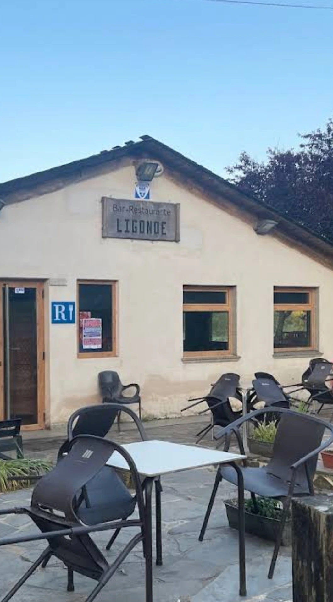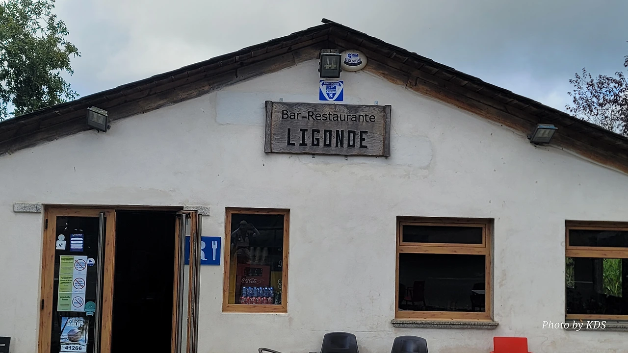 벤따스 데 나론(Ventas de Naron) 마을에서 조금 가파른 내리막길을 4Km가량 내려오면 닿는 마을이 리곤데(Ligonde) 마을이다. 이 마을의 전성기에는 순례자를 위한 병원과 공동묘지가 있었으나 현재에는 돌담 위에 남아있는 십자가가 그 흔적을 나타내고 있다. 이 마을에는 특이한 십자가상이 있다. 라메이로스 끄루세이로(Cruceiro de Lameiros)라고 부르는데, 17세기 마을 밖 떡갈나무가 우거진 아름다운 숲 속에 십자가 조형물을 세웠다. 이 십자가상에는 한편에는 그리스도의 고난을 상징하는 망치, 못, 가시관, 해골, 등이 조각되어 있고, 반대편에는 팔에 아기 예수를 안은 성모 마리아가 조각되어 있다. 어찌 잘못 보면 매우 흉측한 형상으로도 보인다. 이 마을과 1Km 떨어진 아이렉세(Airexe) 마을은 거의 붙어 있는 것 같아서 같은 마을로 착각할 수도 있다. 이 마을에 레스토랑 리곤데(Restaurante Ligonde)가 있는데 순례자들의 평가가 좋은데, 들어가 보지는 않았다. 거기서 다시 1.9Km를 더 가면 음식점 겸 숙소인 아 파소 데 포르미가(A Paso de Foemiga)가 있는 뽀르또스(Portos) 마을이다.