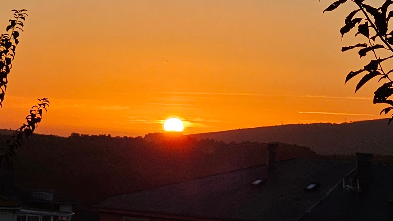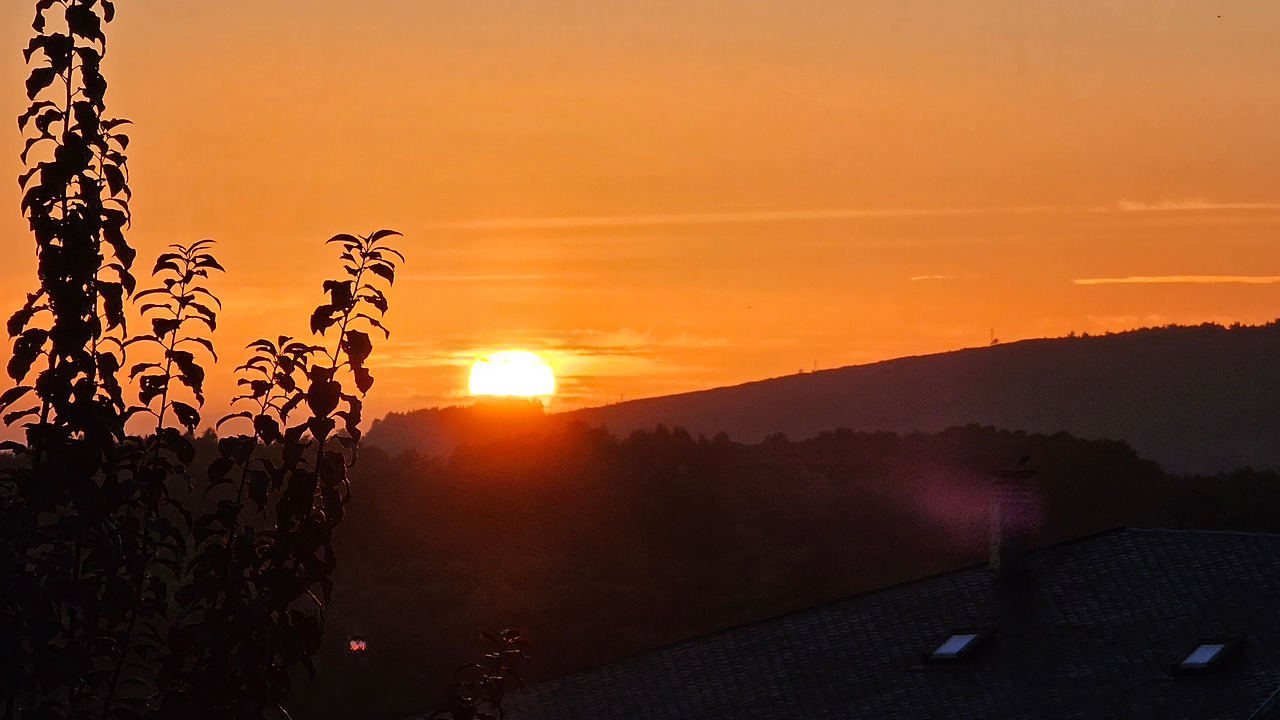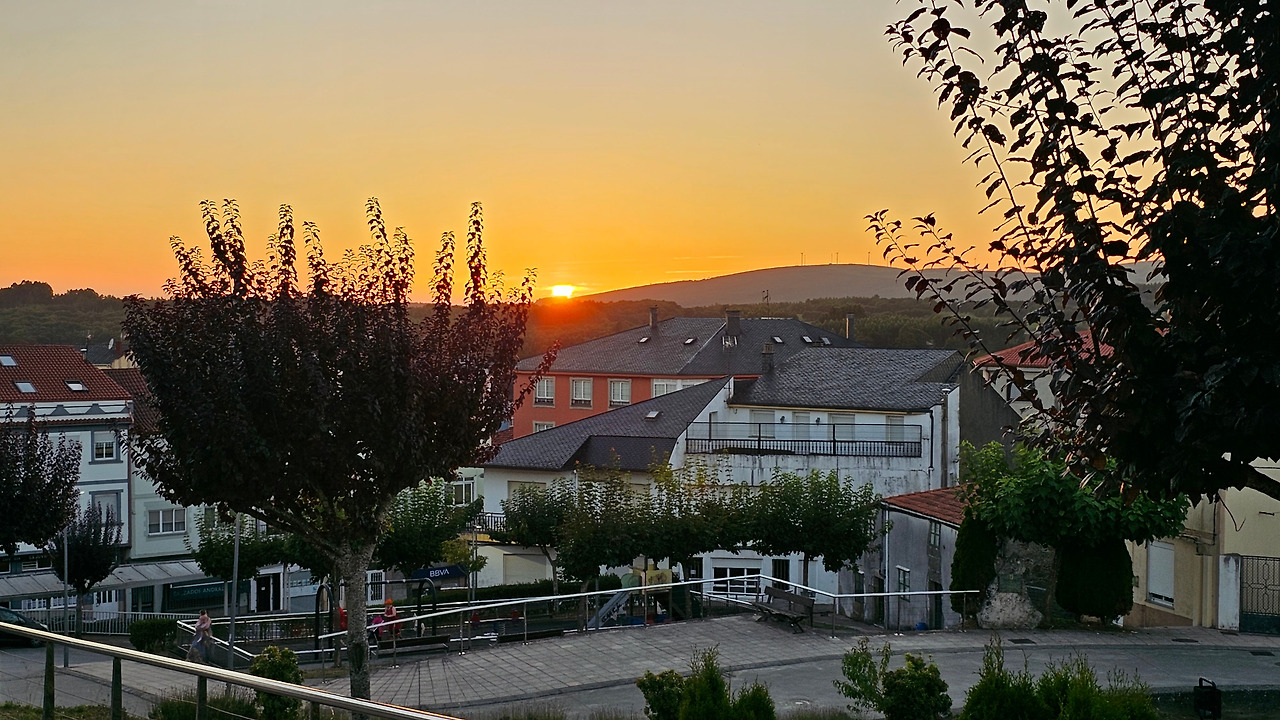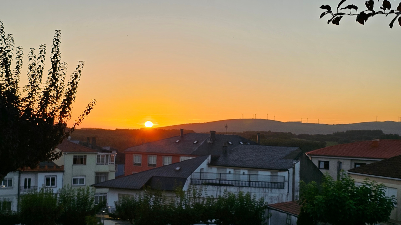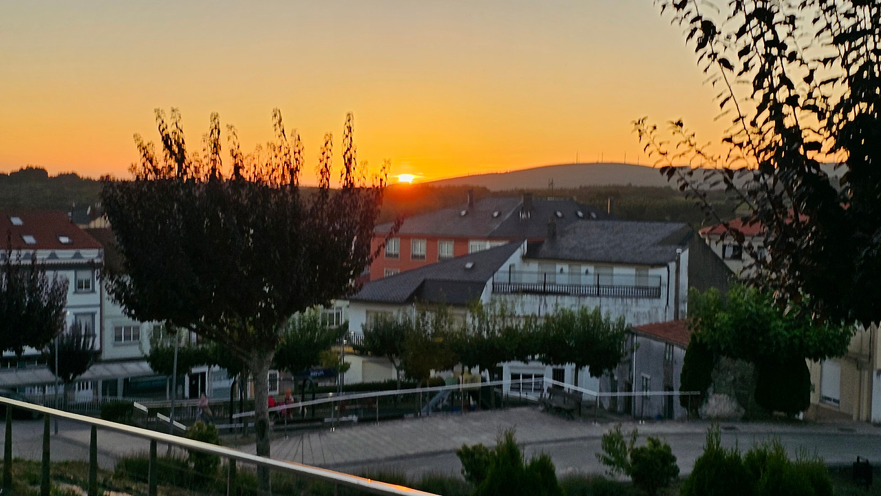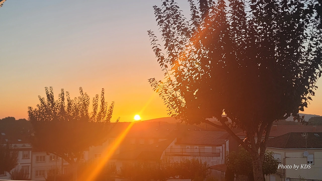 숙소 앞마당에서 저녁 9시가 넘어서 석양의 모습을 카메라에 담아 보았다. 스페인은 유럽의 남부 지방이지만 여름 해가 매우 늦게 지고 있다. 8월 중순인데도 일몰 시간이 21시가 넘었다. 대신 아침 해가 뜨는 일출시간도 한국 보다는 훨씬 늦다.