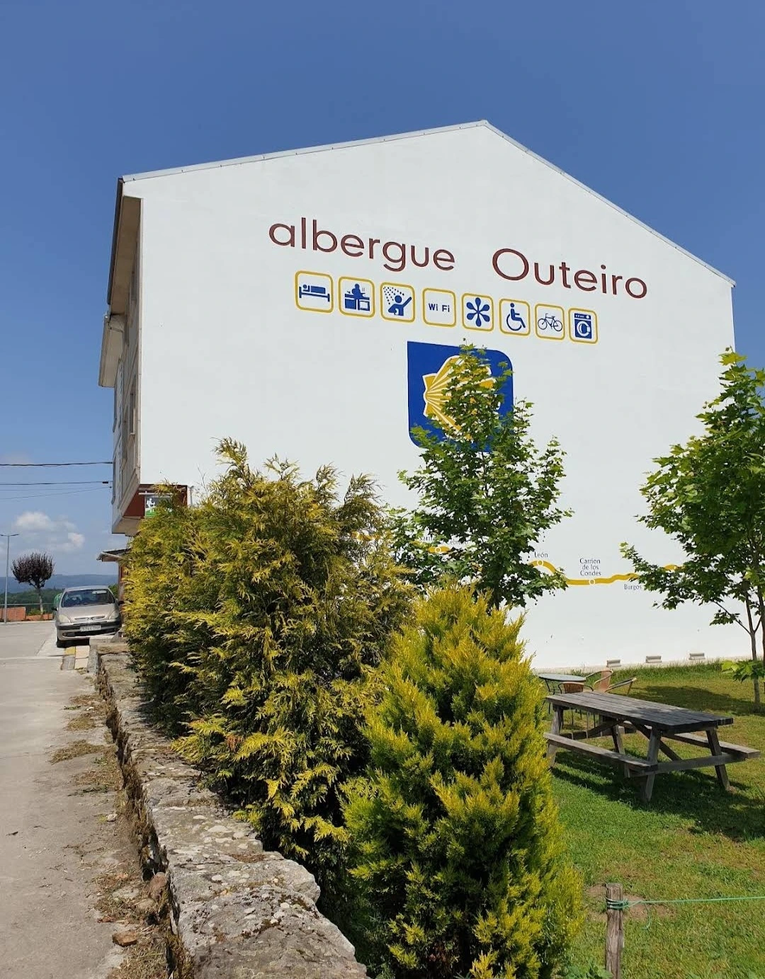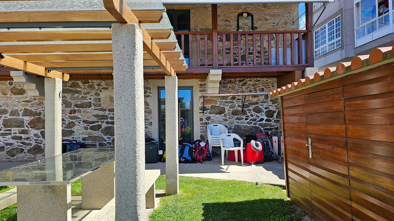 오늘은 25Km를 걸어서 목적지인 빨라스 데 레이(Palas de Rei) 마을에 도착했다. 마을에 도착하자마자 숙소를 찾기 위해 이 골목 저 골목을 뒤져보았다. 입구에서 가까운 곳에 찾아가니 문은 열려 있으나 아직 관리자나 주인이 출근을 하지 않았다. 동키 서비스로 배달된 배낭들만 나란히 줄을 지어 늘어서 있다. 침대의 여유가 있는지 없는지도 모르는 채 무직정 기다릴 수도 없고 난감했다. 할 수 없이 건물 앞 그늘의 의자에서 간단하게 점심 식사를 때우기로 했다. 식사가 다 끝나도 만날 수가 없어서 과감히 포기하고 다른 곳을 찾기로 했다. 다른 골목을 찾아서 가보니 한적하고 후미진 곳에 의외로 새로 지은 것 같은 깨끗한 숙소 하나가 번듯하게 서 있었다. 이름은 오우떼이로 알베리게(Albergue Outeiro)였다. 건물 옆으로 공터가 넓고 빨라 건조재도 잘 설치되어 있었다. 초인종을 누르고 들어가 보니 예약을 하지 않아도 침대가 여유가 있단다. 얼씨구나 좋구나 하고 얼른 수속을 하고 짐을 방으로 옮겼다. 그런데 이제까지는 걷거나 방을 구하기 위해 긴장해서 몰랐는데, 침대를 구하고 나니까 갑자기 온몸이 가렵고 피부가 쑤시기 시작한다. 이제까지 베드버그(Bedbug)에 물린 것을 모르고 계속 식중독이나 알레르기 정도로 생각했는데, 그게 아니다. 종아리와 발목 부분에 밀린 곳에서는 커가란 수포가 생기고 통증도 무척 심했다. 얼른 짐을 정리하고 목욕탕에 가서 옷을 벗으니 온몸이 정말 말이 아니다. 눈 뜨고 볼 수 없을 지경이다.