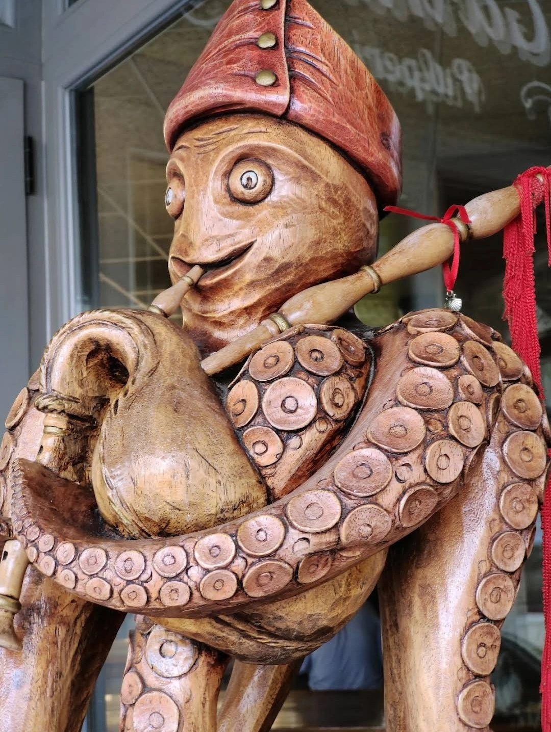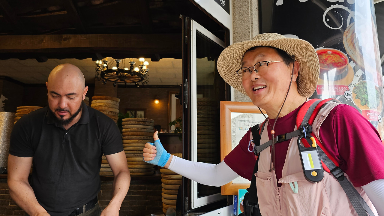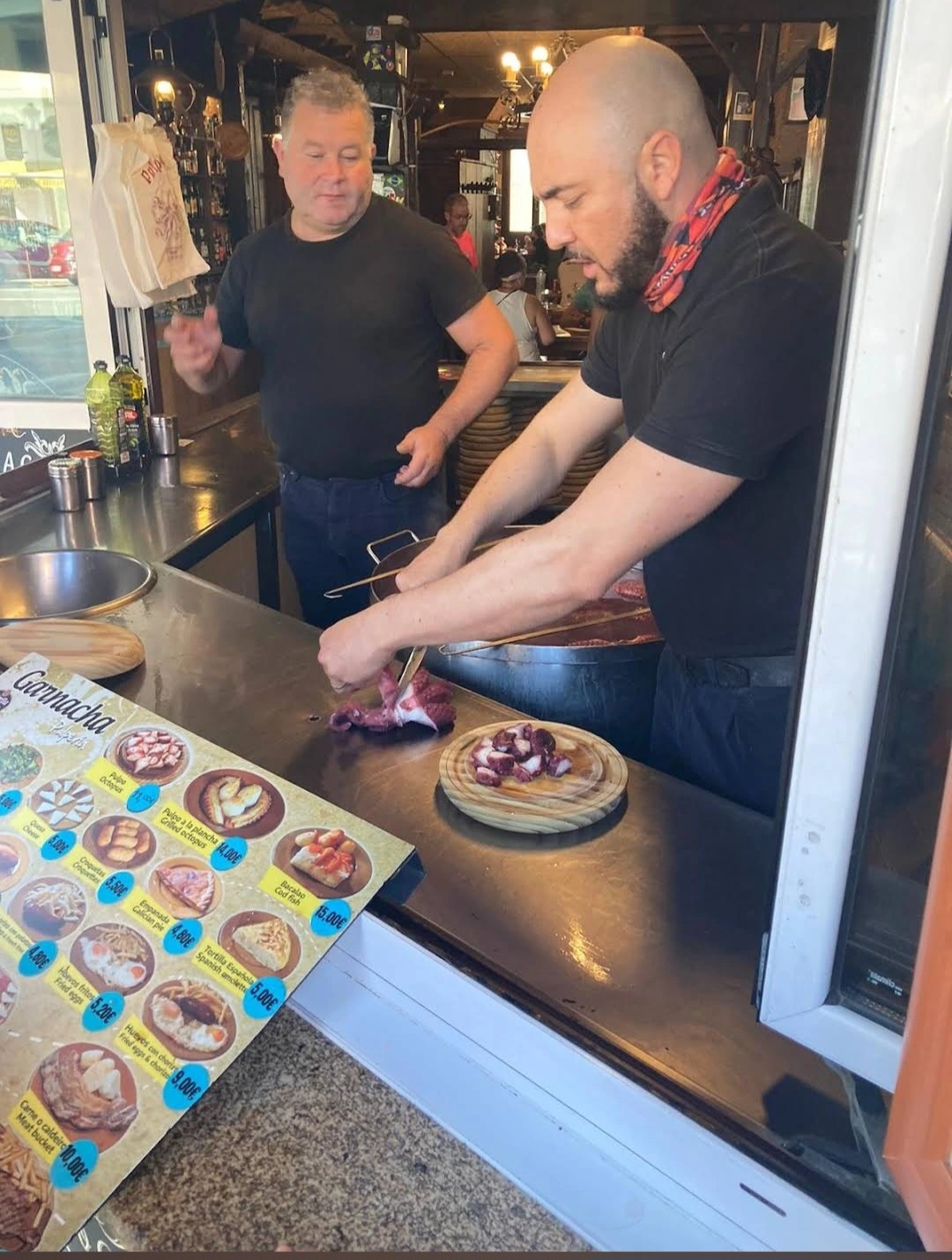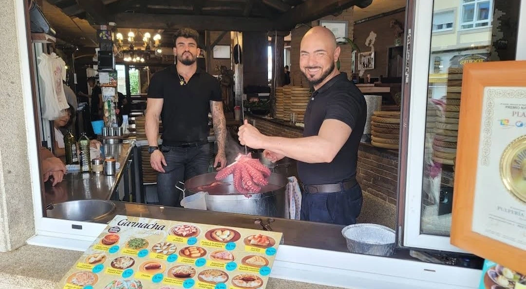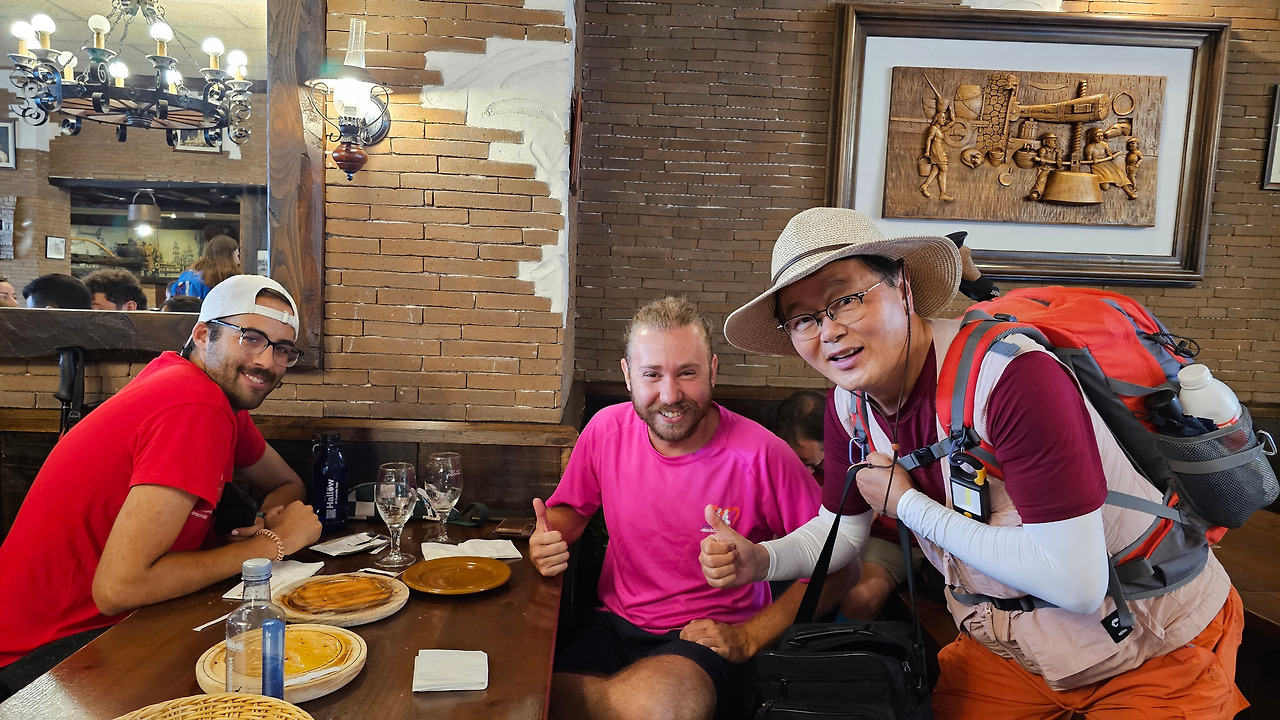 스페인의 "꽃" 문어는 문어의 근육을 분해하여 부드럽고 맛있게 만드는 첨가물이나 화학 물질을 사용하지 않고 자연 공정을 통해 연화되어 꽃처럼 말려 있는 모양이다. 세계적으로 문어가 맛있는 국가는 포르투갈, 스페인, 그리스라고 한다. 그런데 조선과객 금삿갓의 입맛에는 안동의 신시장 문어가 제일 맛있다. 물론 요리 방법의 차이이다. 안동 신시장의 문어는 동해안 문어를 가마솥에서 살짝 데쳐서 숙회로 만들어 먹으면 졸깃졸깃한 식감이 살아 있다. 그런데 이곳 스페인 뽈뽀는 커다란 식관에 여러 마리를 넣고 은근히 푹 삶아서 내므로 부드럽기는 하나 문어의 맛이 빠지고 식감이 약간 쫄깃하지 않아서 한국 문어에 익숙한 금삿갓의 입맛에는 최상품은 못된다. 금삿갓이 들린 이곳은 뽈뻬리아 아 가르나차(Pulperia A Garnach)라는 멜리데에서는 굉장히 유명한 문어집이었다. 주방도 개방해 놓고 순례객들이 사진을 찍을 수 있도록 허용하고, 넓은 객실이 있어서 많은 순례객들로 항상 붐비는 곳이었다. 이곳에서 두 시간 이상은 걸어온 허기진 배를 문어와 와인으로 해결했다.