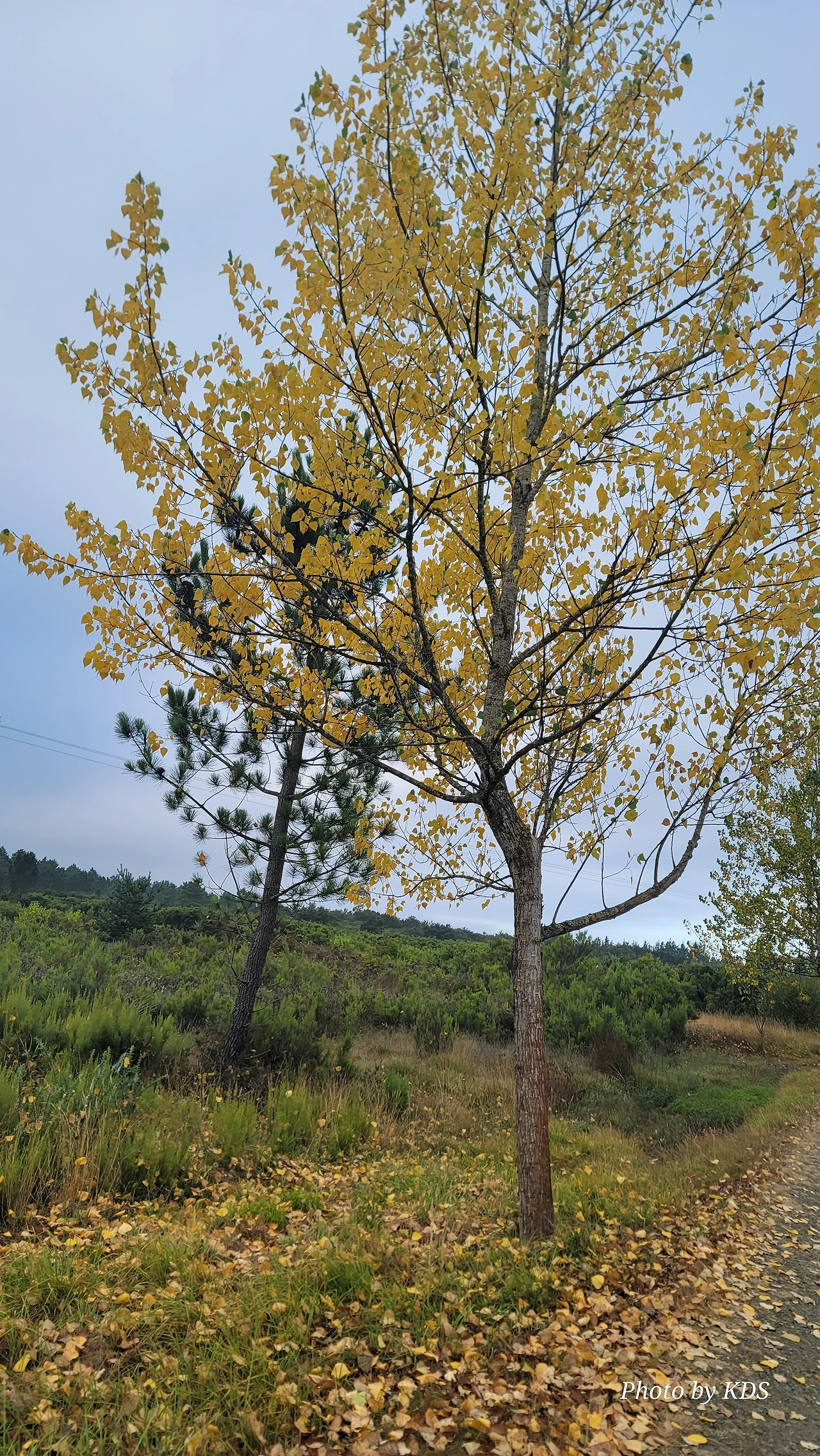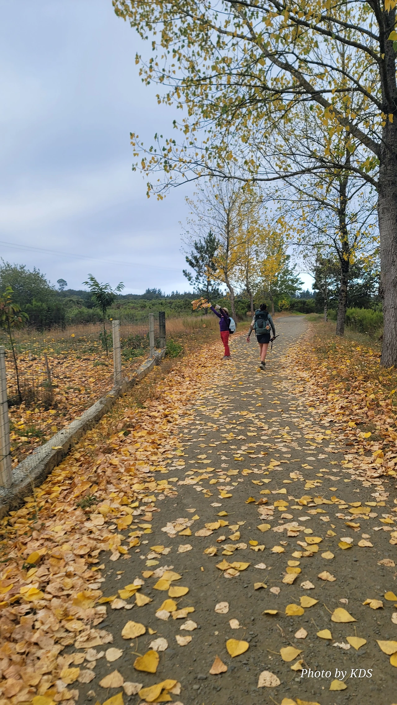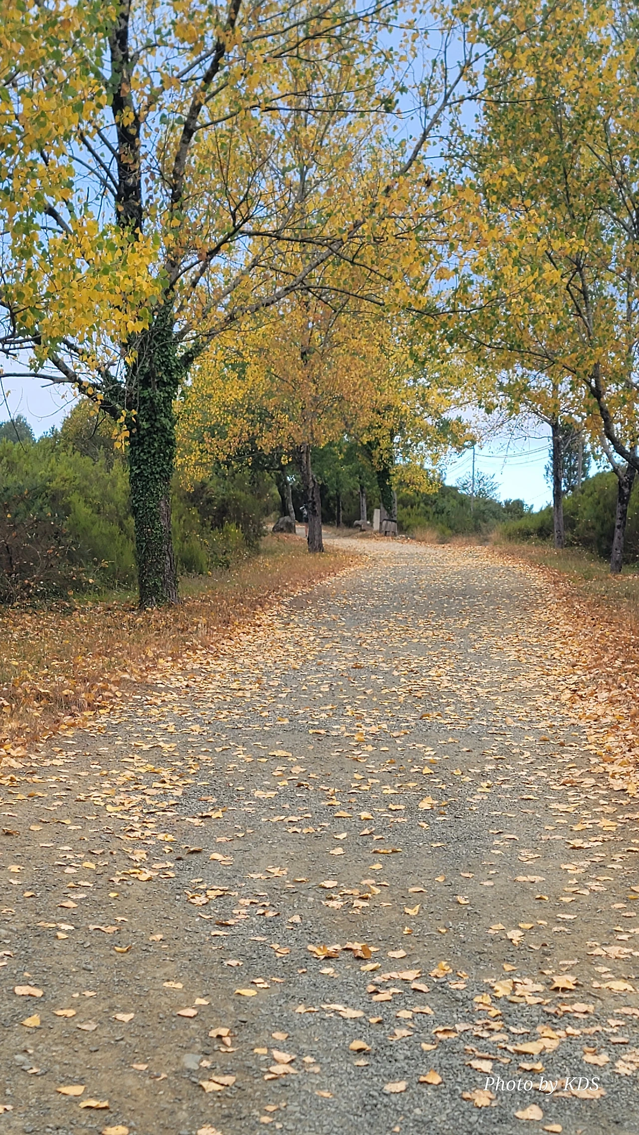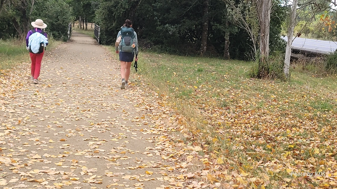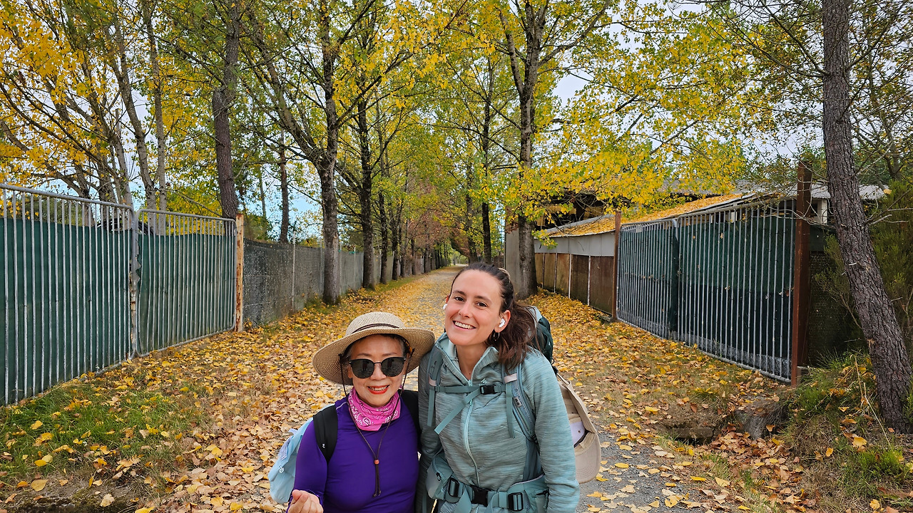 레보레이로(Leboreiro) 마을에서 푸레로스(Furelos) 마을로 이동하는 순례길에서 기이한 광경이 또 나타났다. 계절산 8월이면 모든 나무들이 잎이 무성하게 피어 있어야 정상인데, 이곳에 있는 가로수 들은 노랗게 변하여 낙엽이 되어 대부분 떨어지고 앙상한 나뭇가지를 드러내고 있었다. 덕분에 순례길은 노란 낙엽길이 되어 순례객들이 걷기에 운치가 아주 좋은 길이 되어 있었다. 나무의 수종(樹種)은 은사시나무 비슷하게 생겼다. 같은 종류의 나무가 수 Km정도 심어져 있었지만 이곳의 1Km 정도만 이런 현상을 보이는 걸 보면 나뭇잎에 치명적인 전염병에 걸렸거나, 그렇지 않으면 이 지역의 토양 특성 때문인지도 모르겠다. 아무튼 나무가 죽을 정도는 아니고 8월의 크리스마스를 보듯이 8월의 낙엽길을 만나기 감회가 색다르게 느껴졌다.