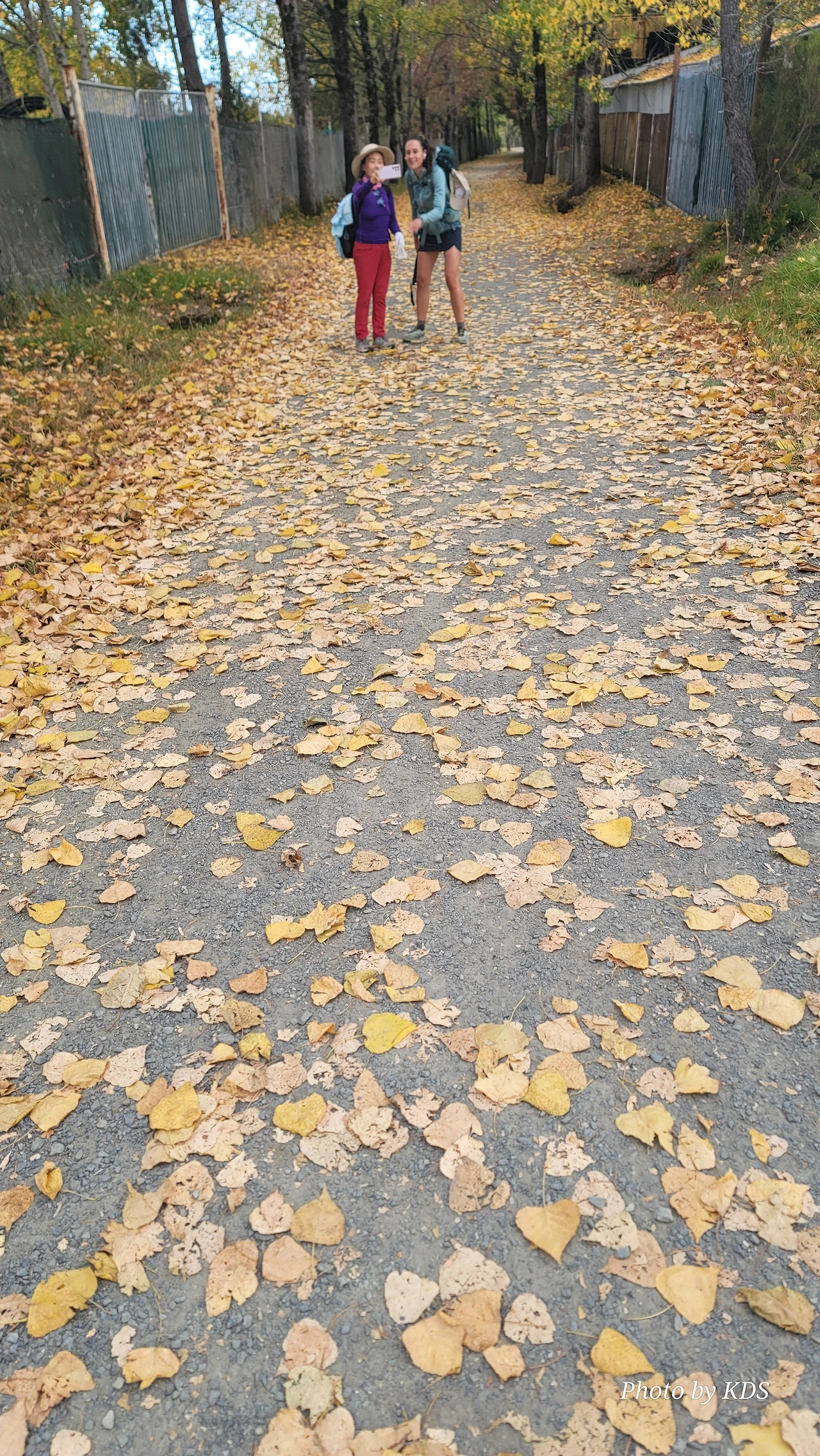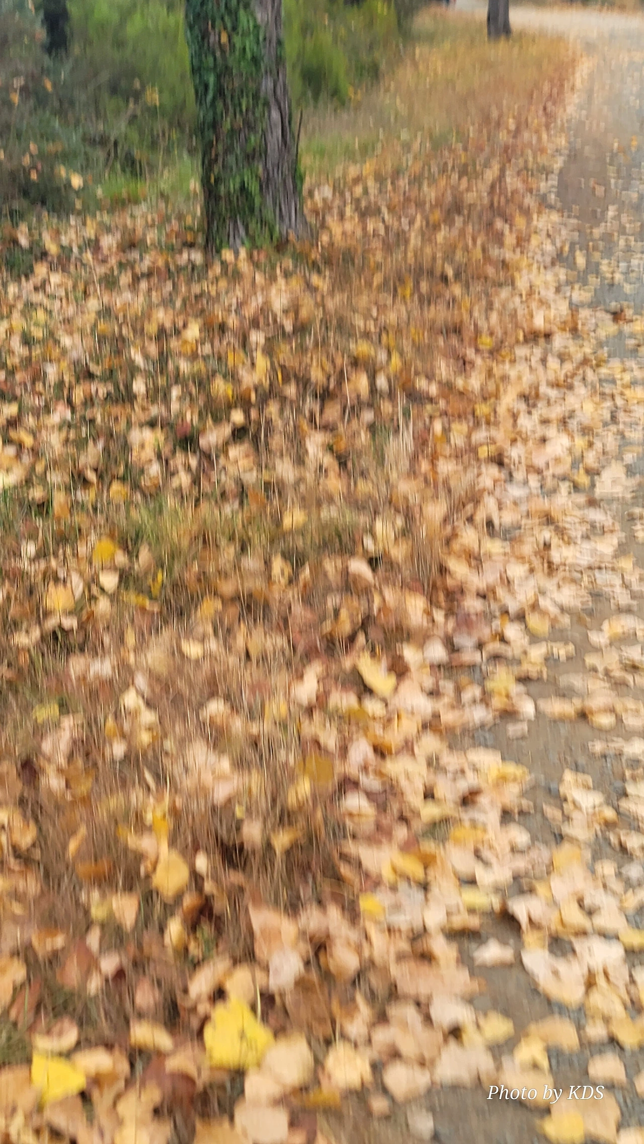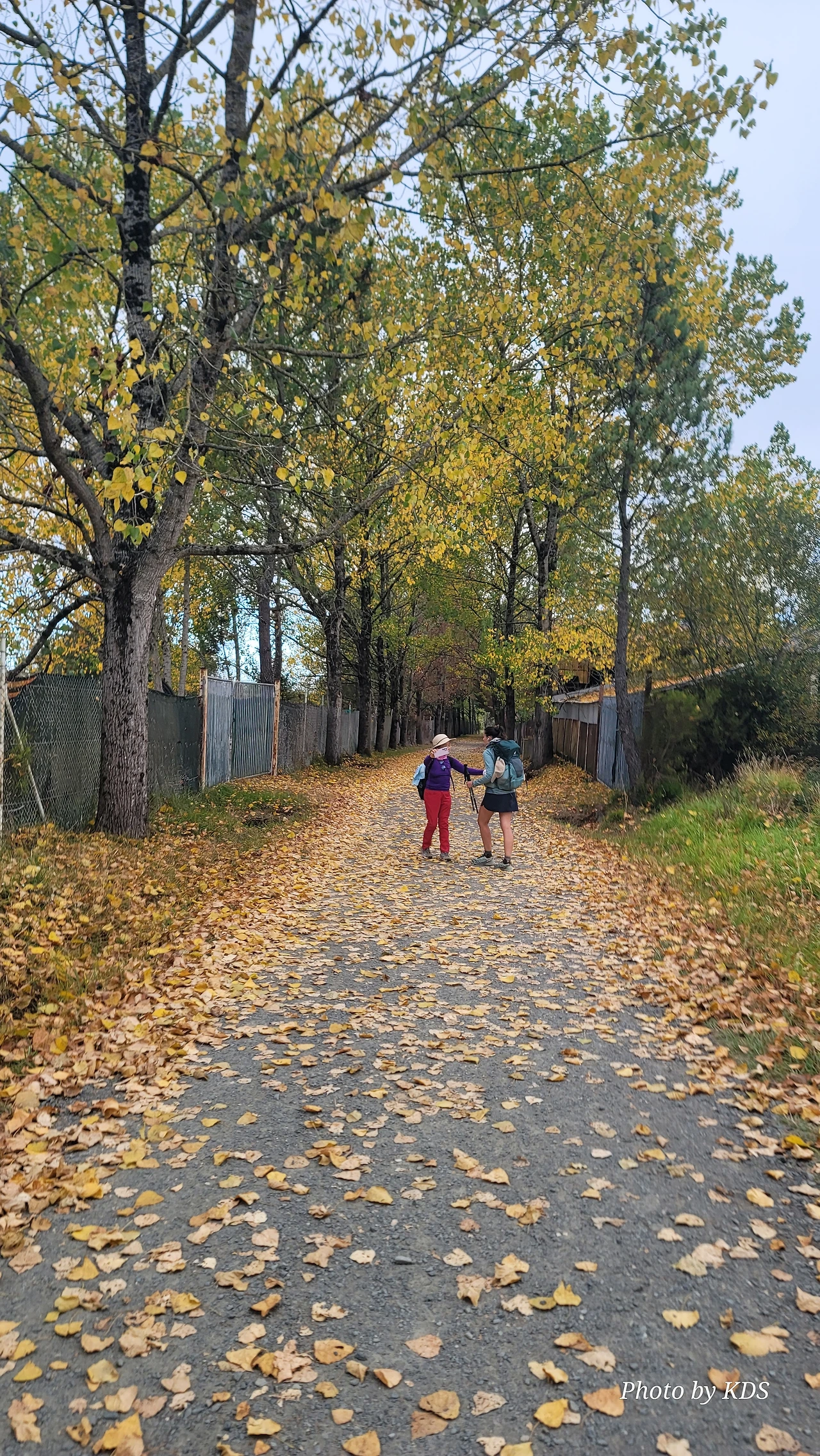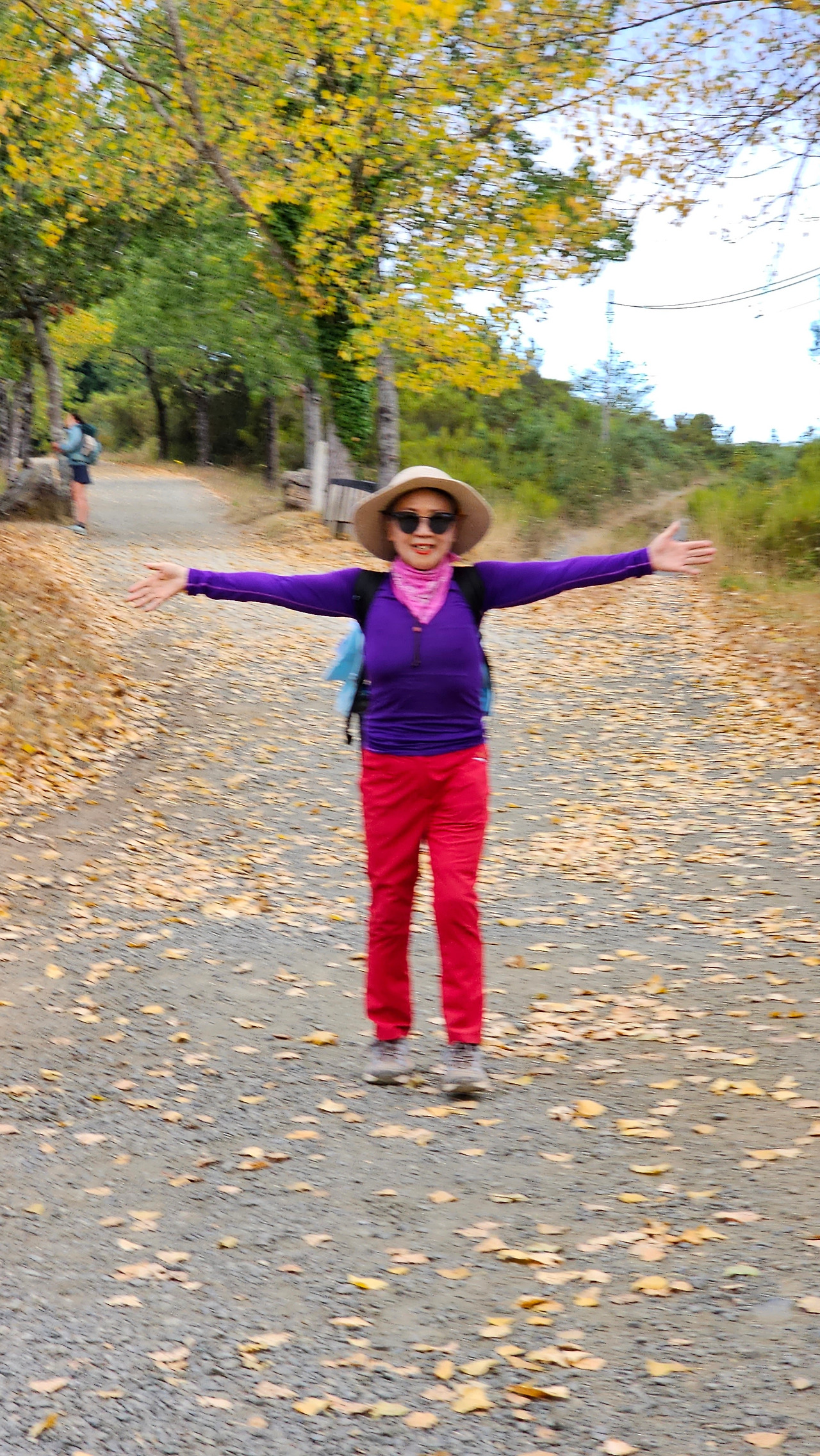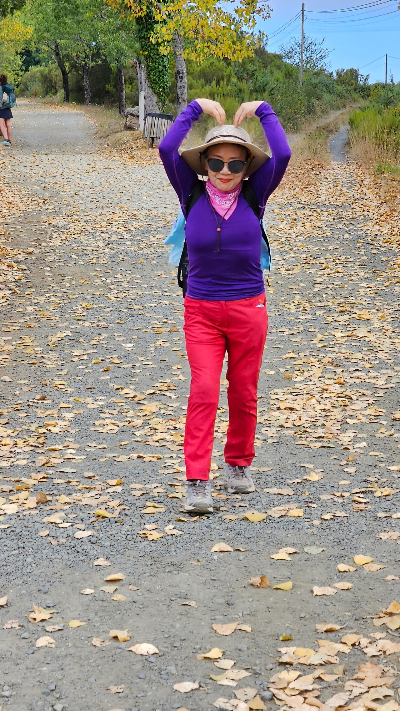 레보레이로(Leboreiro) 마을에서 푸레로스(Furelos) 마을로 이동하는 순례길에서 기이한 광경이 또 나타났다. 계절산 8월이면 모든 나무들이 잎이 무성하게 피어 있어야 정상인데, 이곳에 있는 가로수 들은 노랗게 변하여 낙엽이 되어 대부분 떨어지고 앙상한 나뭇가지를 드러내고 있었다. 덕분에 순례길은 노란 낙엽길이 되어 순례객들이 걷기에 운치가 아주 좋은 길이 되어 있었다. 나무의 수종(樹種)은 은사시나무 비슷하게 생겼다. 같은 종류의 나무가 수 Km정도 심어져 있었지만 이곳의 1Km 정도만 이런 현상을 보이는 걸 보면 나뭇잎에 치명적인 전염병에 걸렸거나, 그렇지 않으면 이 지역의 토양 특성 때문인지도 모르겠다. 아무튼 나무가 죽을 정도는 아니고 8월의 크리스마스를 보듯이 8월의 낙엽길을 만나기 감회가 색다르게 느껴졌다.