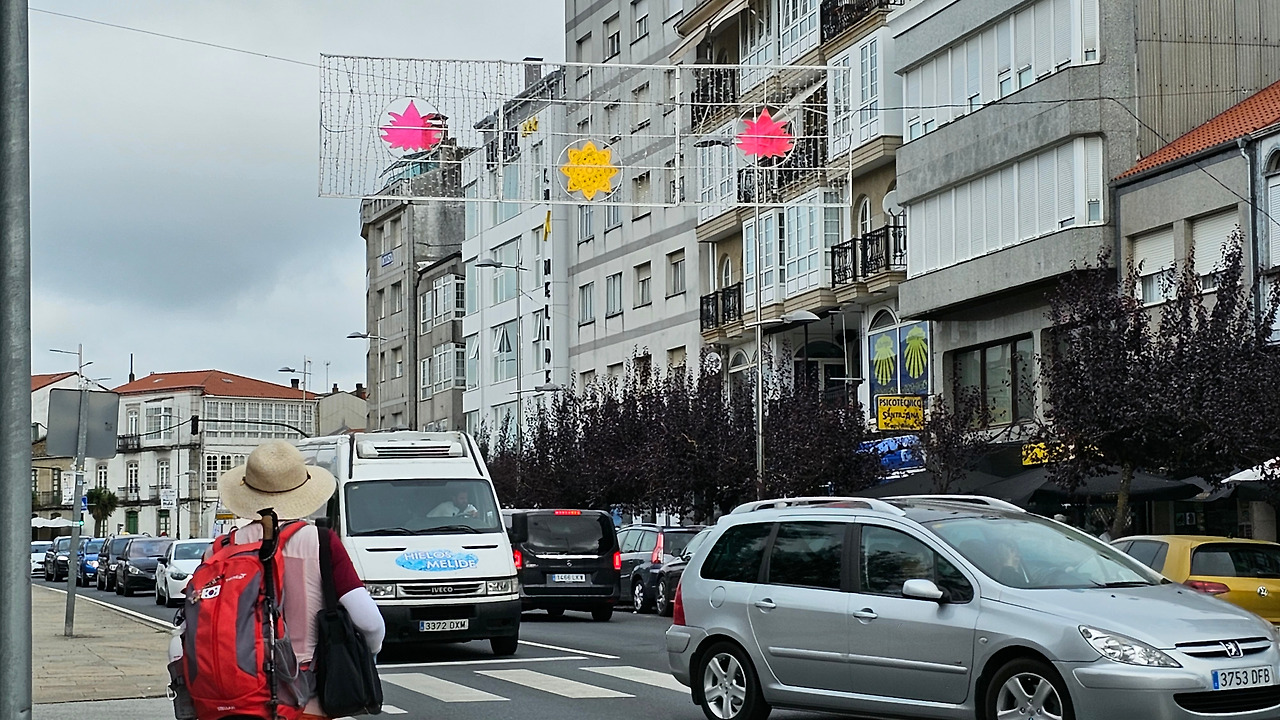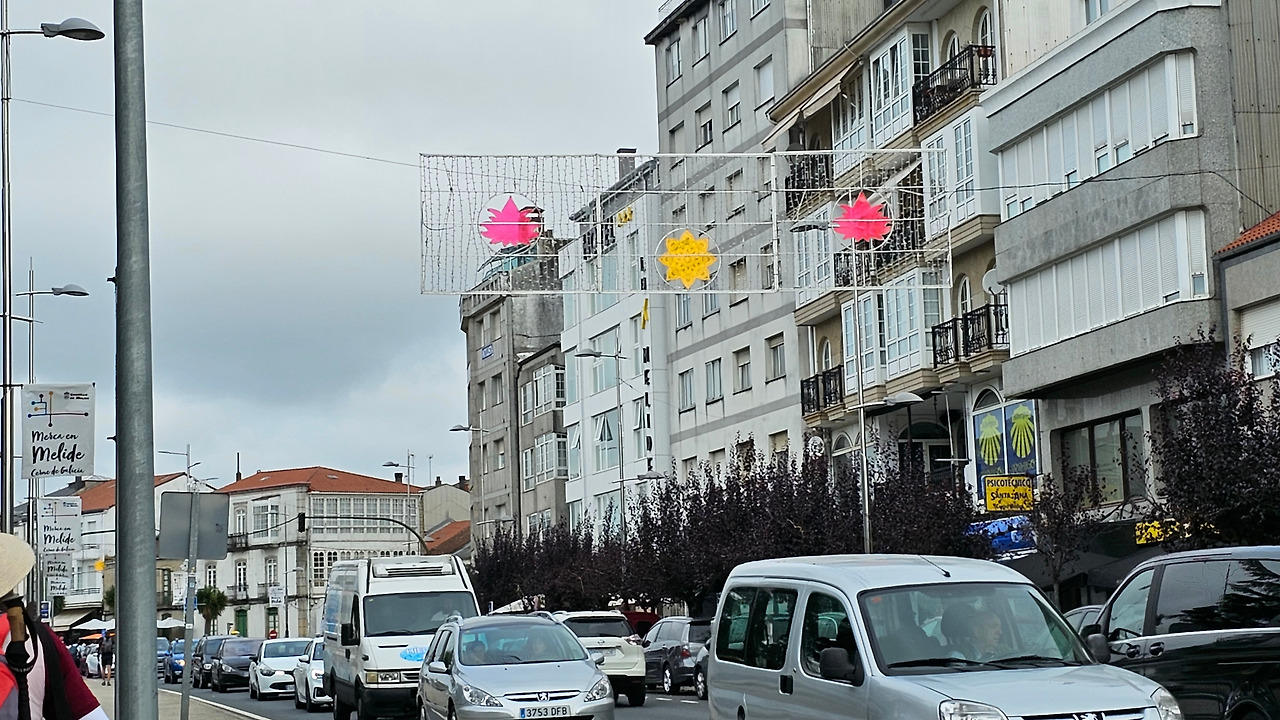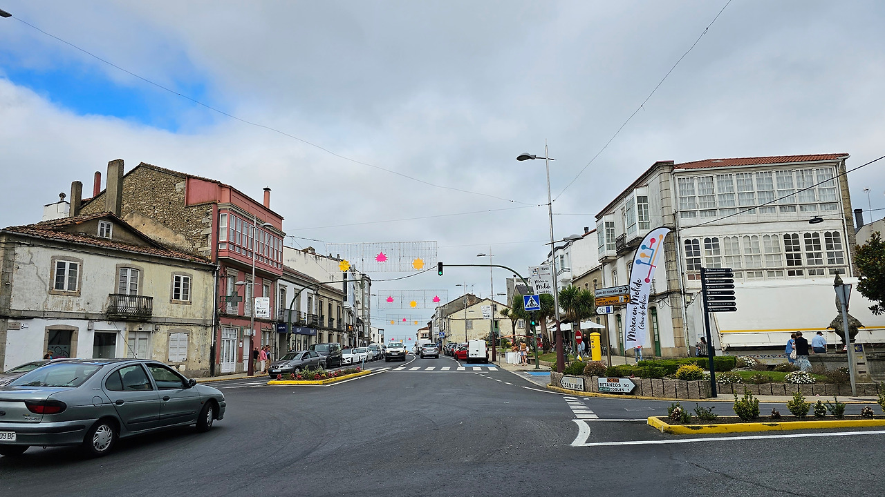 갈리시아의 꼬루냐(Coruna) 지역의 활기찬 이 도시는 10세기에 설립된 곳이다. 이 마을의 역사는 산티아고 순례길과 깊은 연관이 있다. 이곳은 산티아고 길 중의 중요한 두 길이 합하지는 길목이기 때문이다. 그 옛날 알폰소 2세가 처음으로 산티아고를 순례했던 길인 원시의 길인 프리미티보 길(Camino Primitivo)과 프랑스 생장에서 시작하는 프랑스 길이 이곳에서 합해지는 것이다. 그러니 자연히 이 도시가 순례객으로 인하여 발전할 수밖에 없었던 것이다. 1320년 멜리데는 산티아고 대주교 베레누엘 데 란도이라(Berenuel de Landoira)로부터 성을 짓고 마을을 요새화하며 세금을 부과하는 특권을 얻었다. 1467년에 Alonso Fonseca 대주교에 반대하고 그 권력에 맞서서 일련의 싸움을 시작했고, 그 과정에서 마을의 성벽과 성이 파괴되었다. 그 후 가톨릭 군주들은 마을에 요새 건설을 금지했다. 이 마을의 맛있는 뽈뽀 음식점에서 점심을 해결하고 거리를 둘러보면서 천천히 이 마을을 지나가게 되었다. 작은 도시이지만 아주 활력이 느껴지는 곳이다.