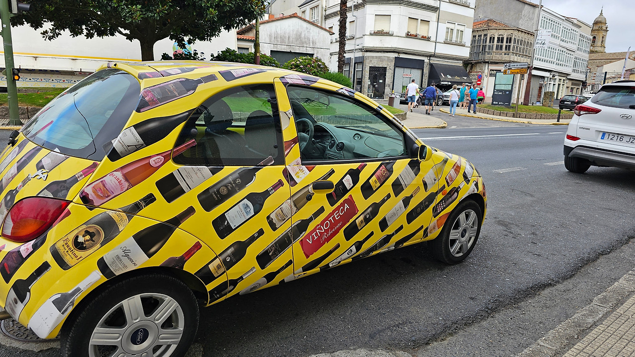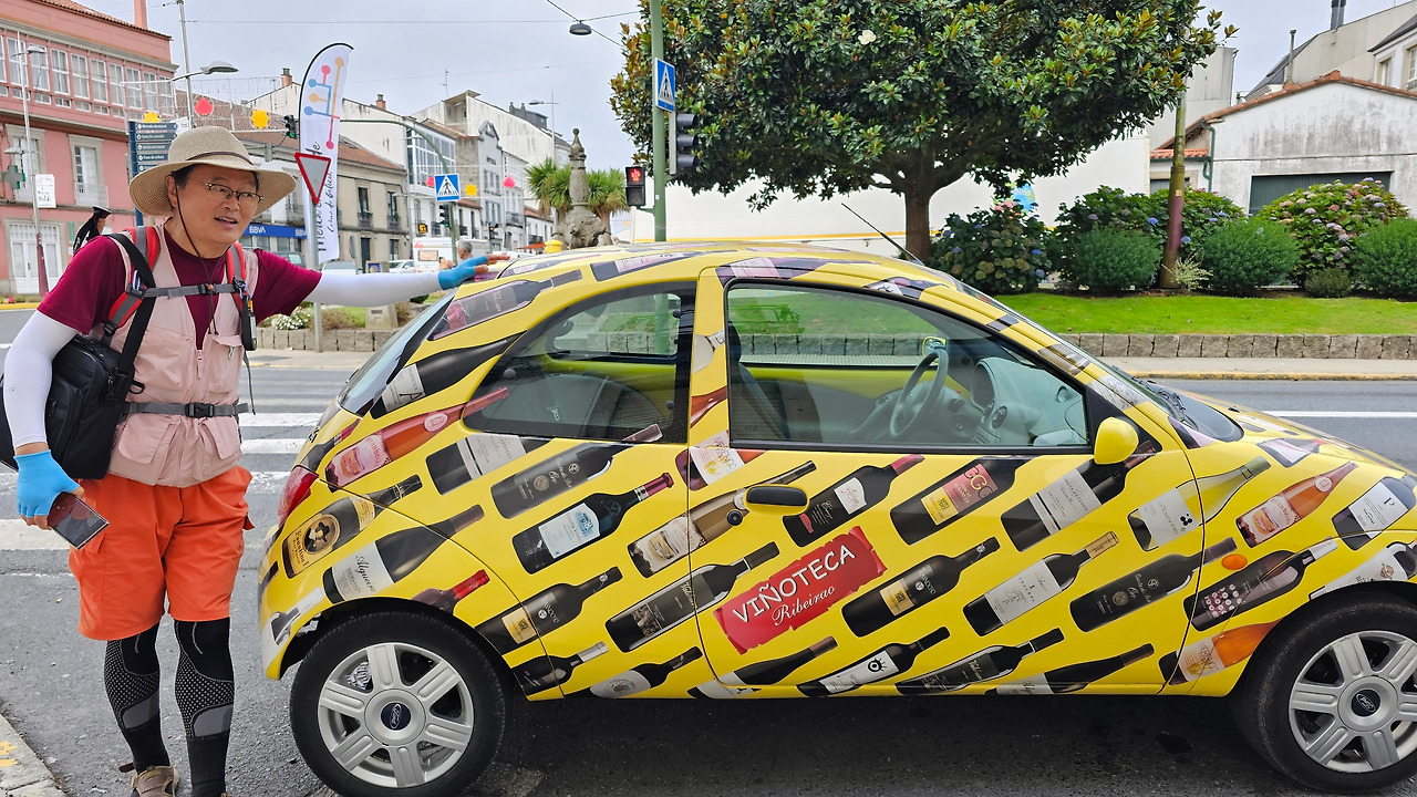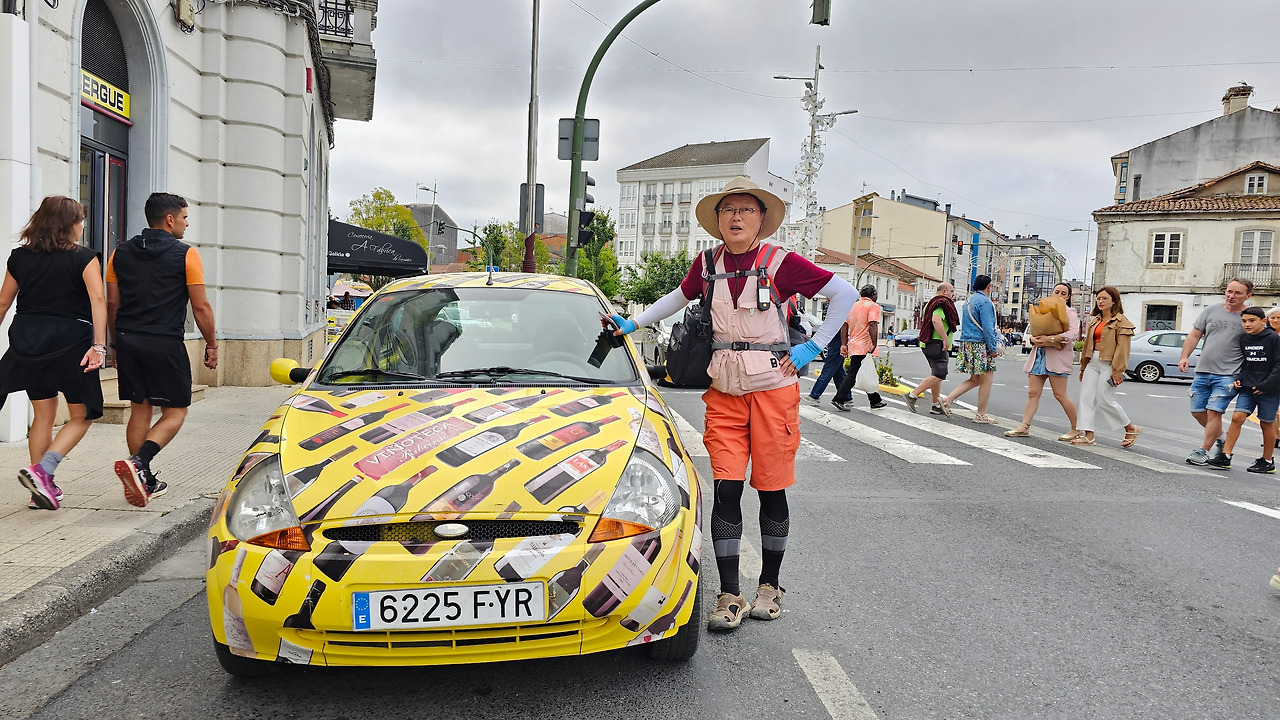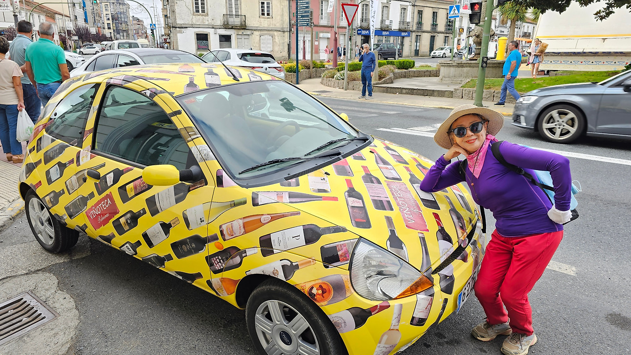 마을에는 14세기에 순례자를 위한 상티 스피리투스 병원이 들어서면서 만들어진 부속성당인 산따 마리아 성당(Iglesia de Santa María)이 있고, 12세기에 만들어진 로마네스크 양식의 성당인 산 뻬드로 성당 (Iglesia de San Pedro)이 있다. 그 외에도 작은 규모의 성당들이 골목골목에 배치되어 있었다. 도로에는 밤에 조명을 밝히려는 각종 조명 조형물이 거리를 따라 즐비하게 설치되어 있어서 이곳에서 밤을 묵는 순례객들에게 화려한 야경을 선물할 것 같았다. 도로 옆에 앙증맞은 작은 차에 와인을 광고하는 광고 랩핑을 자동차가 지나가는 순례길들의 눈길을 끌었다. 한참을 가는 데 이곳에도 맛있게 보이는 추로스 판매대가 있었다. 설탕이 아닌 초콜릿으로 옷을 입힌 맛있는 추로스였다. 허기진 순례객의 군침을 돌게 하는 간식거리다.