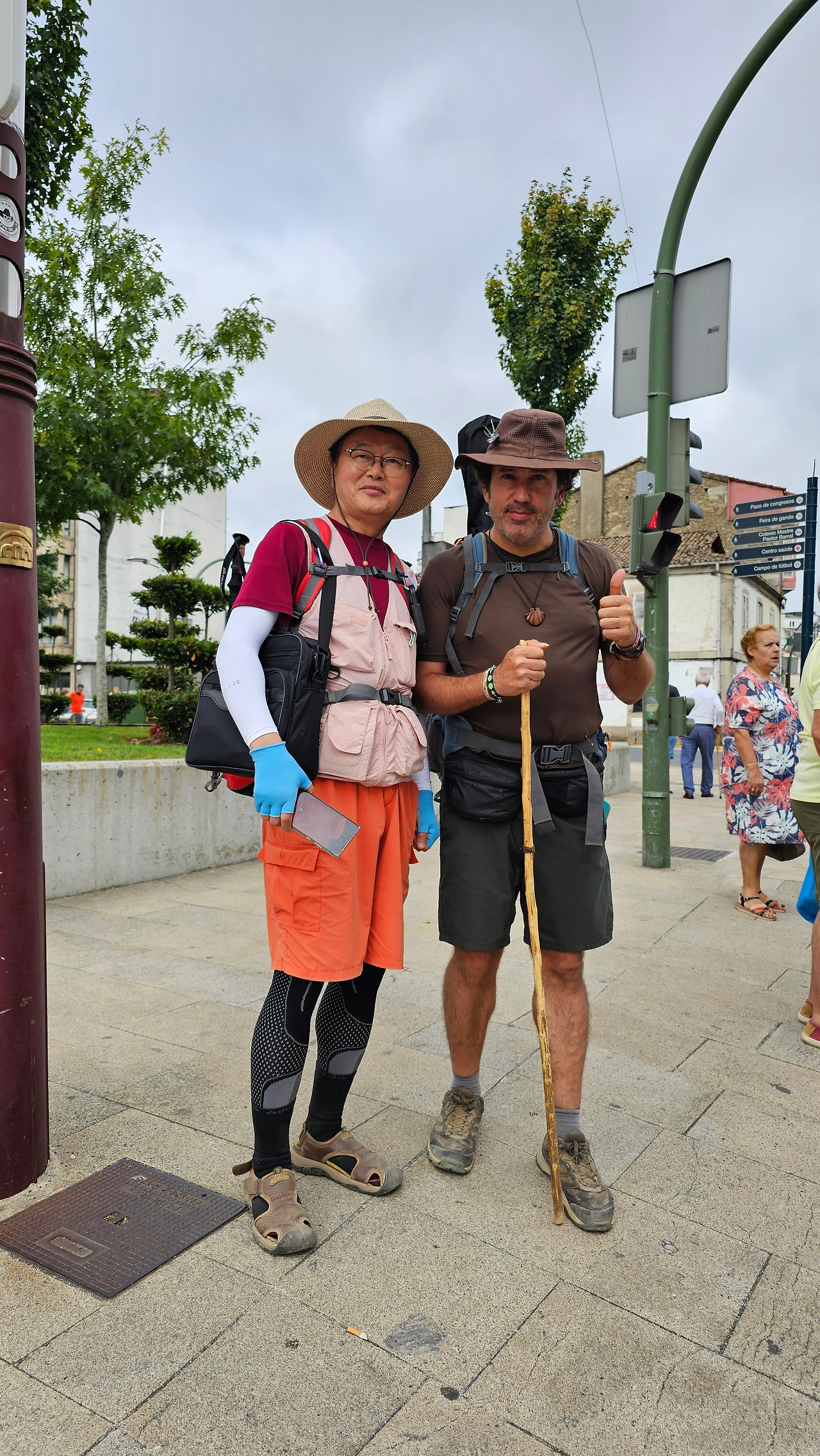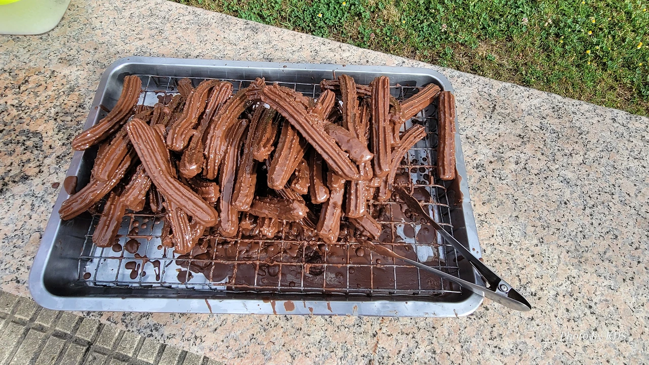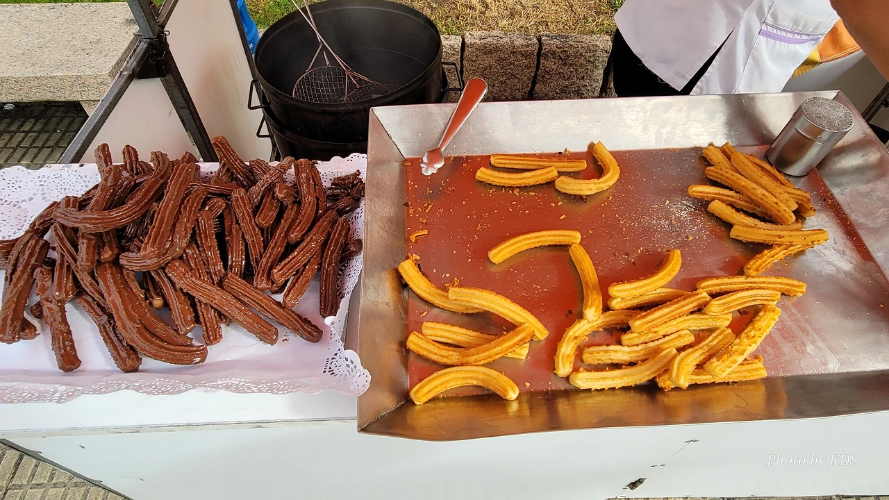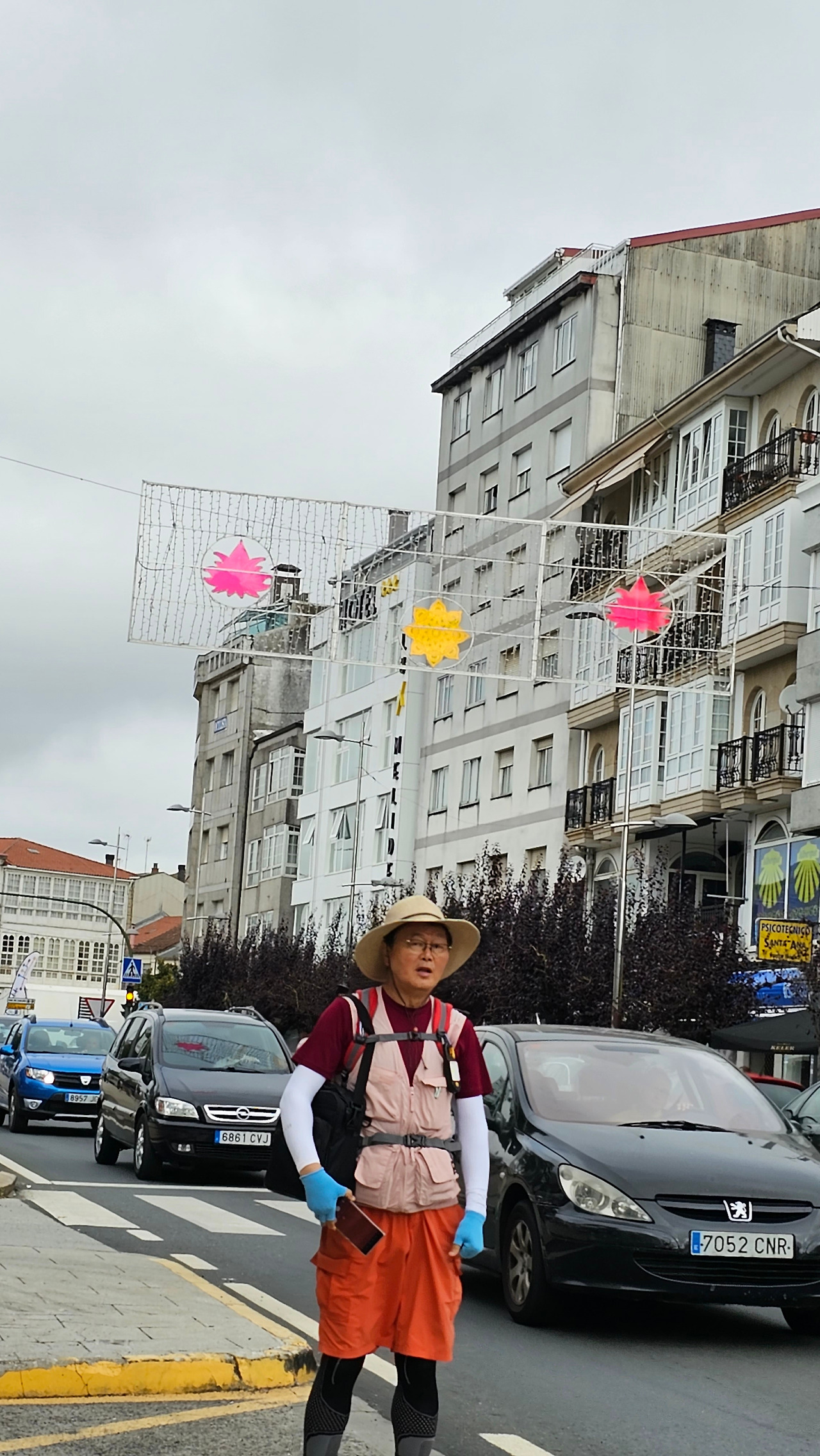 마을에는 14세기에 순례자를 위한 상티 스피리투스 병원이 들어서면서 만들어진 부속성당인 산따 마리아 성당(Iglesia de Santa María)이 있고, 12세기에 만들어진 로마네스크 양식의 성당인 산 뻬드로 성당 (Iglesia de San Pedro)이 있다. 그 외에도 작은 규모의 성당들이 골목골목에 배치되어 있었다. 도로에는 밤에 조명을 밝히려는 각종 조명 조형물이 거리를 따라 즐비하게 설치되어 있어서 이곳에서 밤을 묵는 순례객들에게 화려한 야경을 선물할 것 같았다. 도로 옆에 앙증맞은 작은 차에 와인을 광고하는 광고 랩핑을 자동차가 지나가는 순례길들의 눈길을 끌었다. 한참을 가는 데 이곳에도 맛있게 보이는 추로스 판매대가 있었다. 설탕이 아닌 초콜릿으로 옷을 입힌 맛있는 추로스였다. 허기진 순례객의 군침을 돌게 하는 간식거리다.