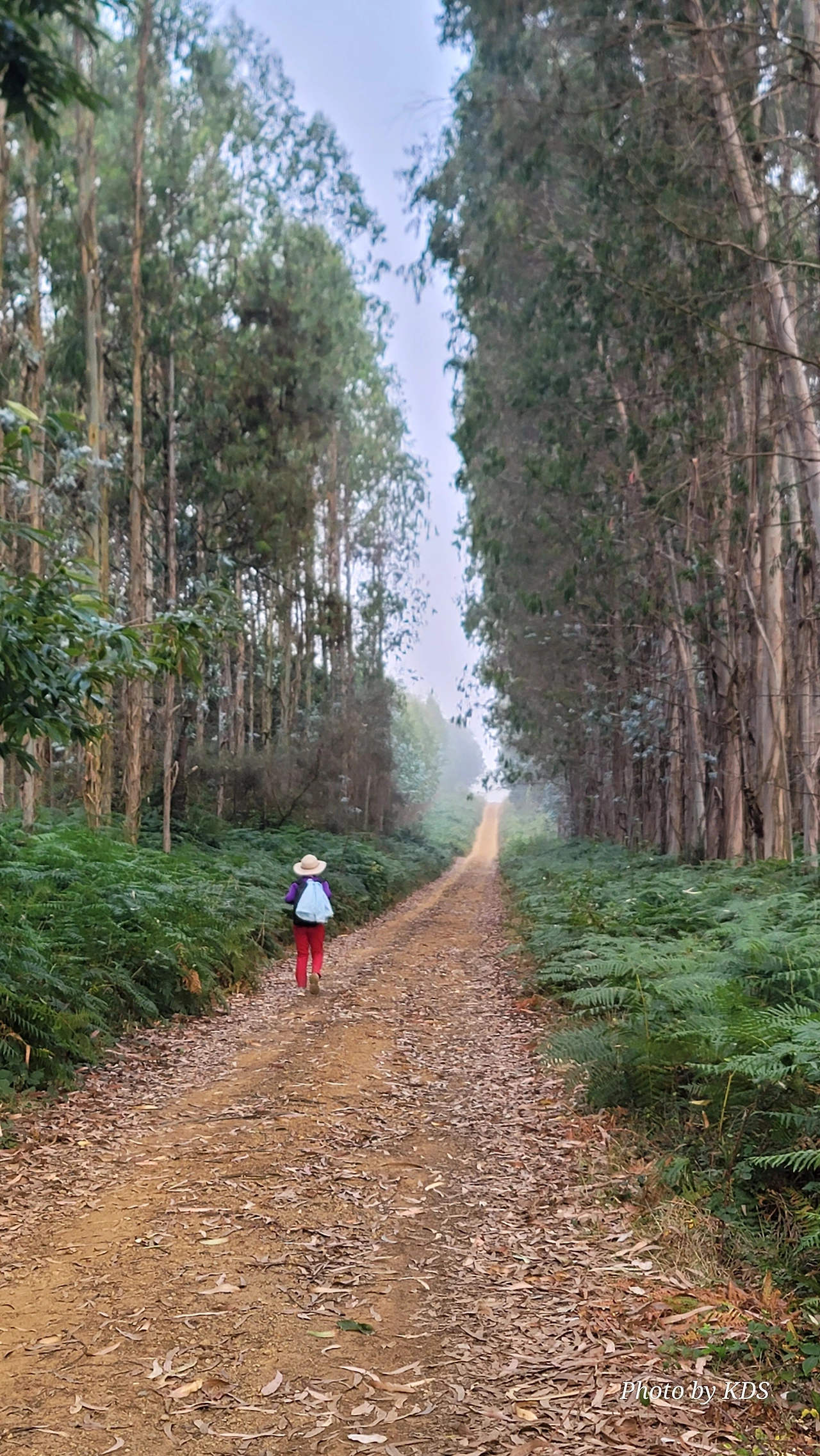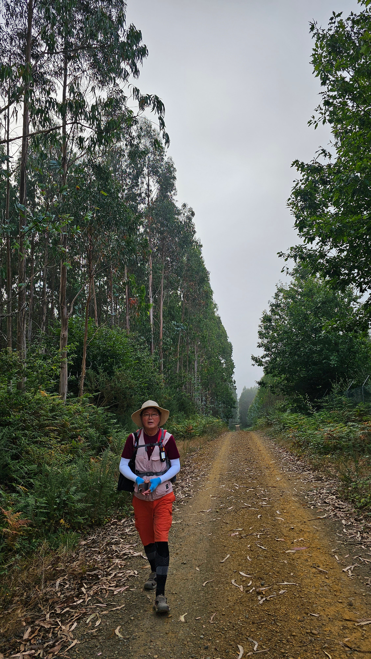 좀 편하고 빠른 지름길을 택한다고 약간 어려운 전통적인 순례길을 버리고 포장도로를 들어섰는데, 생각과 다른 상황이 조선 과객 금삿갓을 기다리고 있었다. 포장도로는 곧바로 고속도로와 연결이 되고 고속도로와 평행선으로 된 넓은 길이 끝 모르게 뻗어 있는데 완전 너덜길 비슷했다. 자갈이 많은 길이다. 한쪽은 고속도로, 다른 한쪽은 끝없는 조림지이다. 이곳의 조림지에는 모두 유칼립투스 나무들을 심어 놓았다. 오래된 조림지의 나무는 수십 미터의 크기로 자랐고, 조림한 지 얼마 안 된 곳에는 이제 어린 묘목들이 하늘을 향해 조금씩 기지개를 켜고 있었다. 스페인의 북부지방 특히 메세타 구간을 240Km 정도 걷다 보면 어떤 날은 나무 구경하기가 힘들 때도 있지만 어떤 곳에서는 끝없이 조림지역이 이어지는 곳도 있다. 메세타 지역에는 주로 플라타너스, 미루나무 등이 눈에 많이 보였는데, 이곳은 수종이 완전히 유칼립투스뿐이다. 모든 나무들이 오(伍)와 열(列)을 맞추어서 일정한 간격으로 심어놓았다. 가로 세로만 정연한 게 아니라 대각선으로도 질서 정연했다. 그러니 사람의 손으로 조림 관리를 하지 않고 기계화가 가능한 것이다. 나무의 가지를 치고 잡초를 제거하고, 거름을 주고 하는 모든 작업을 기계화하여 실시하고 있었다. 그런 광경을 보니 한편으로 부럽기도 하다. 산림 자원도 풍부하고 신선한 공기도 제공하는 조림지가 많은 것이 부러운 것이다.