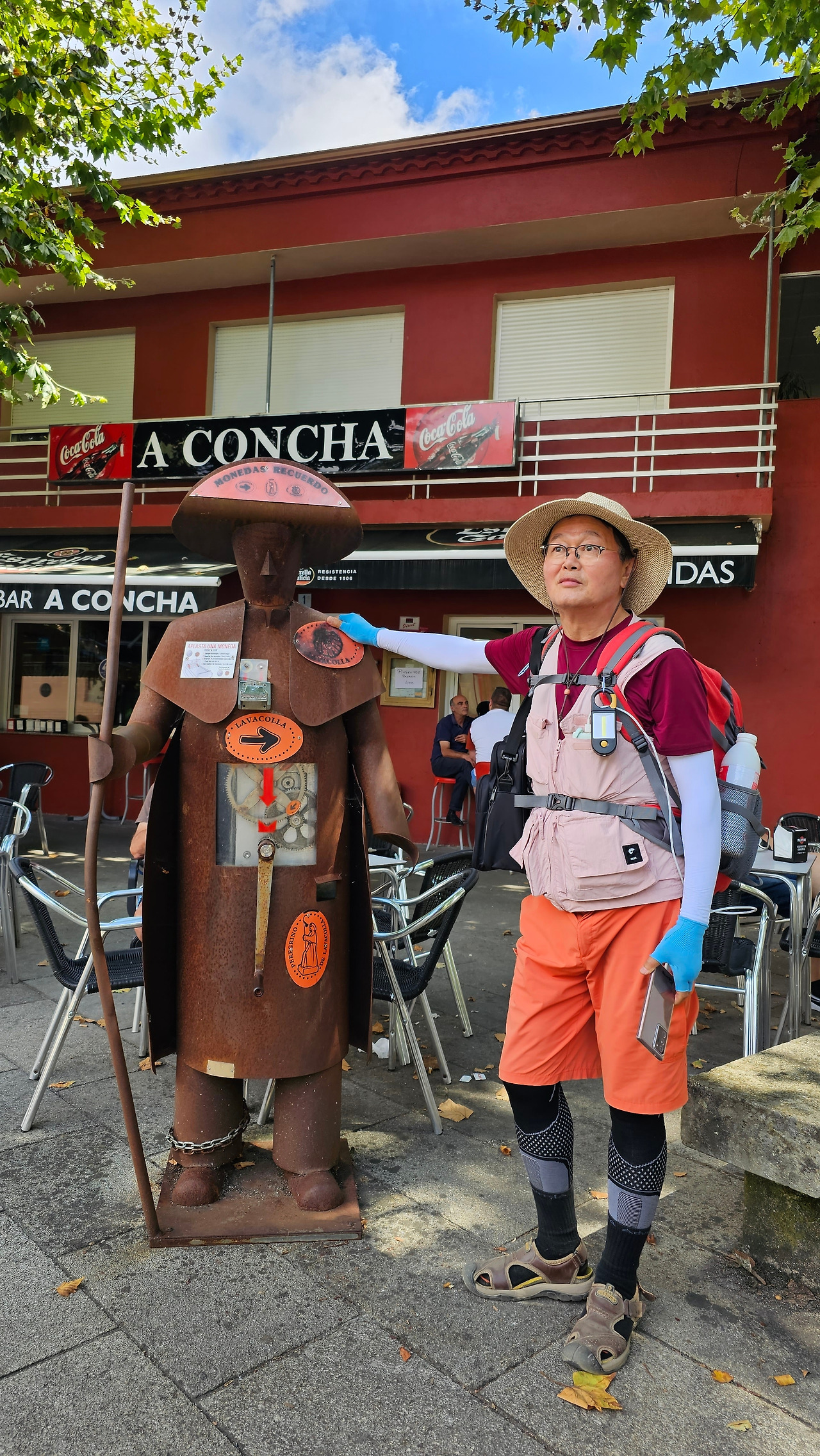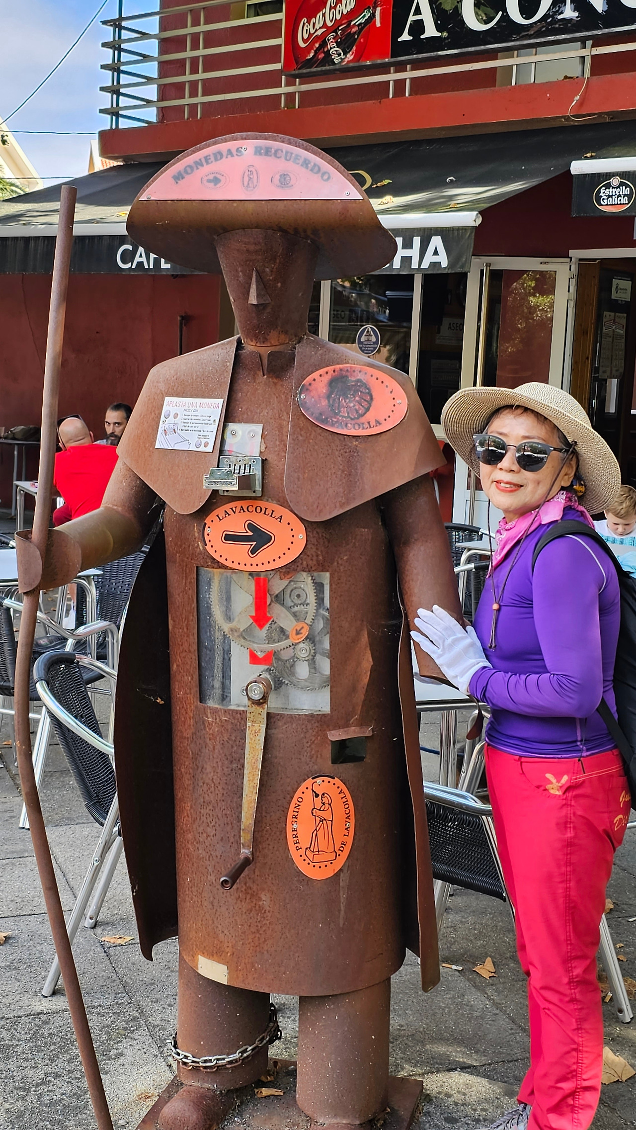 라바꼬야(Labacolla) 마을은 산티아고 국제공항이 있는 마을이다. 순례자가 아닌 일반 관광객은 이곳에서 비행기를 이용하는 것이다. 이 마을의 이름은 중세 시대의 순례자들이 산티아고에 깨끗하게 도착하기 위해 이 마을을 가로지르는 개울에서 씻었다는 사실에서 유래했다고 주장한다. 이것은 산티아고 데 콤포스텔라 대성당의 옥상 투어를 하면 대성당 가이드로부터 들을 수 있는 전설 중의 하나이다. 이 설(說)은 라바꼬야(Labacolla)라는 이름이 'lavar'(씻다)와 'cuello'(목)라는 단어에서 유래한 것이라고 한다. 즉 목을 씻는 마을인 것이다. 또 다른 설은 순례 이전의 시대를 언급하고 그 장소의 지리와 더 관련이 있다. 즉 Lava(낮은 목초지 또는 들판)와 Colla(언덕)라는 단어의 결합으로 언덕 옆의 낮은 목초지를 의미한다고 한다. 어느 설이 맞는 것인지는 하느님만 아실 것이다. 이제 남은 거리가 가까워지니까 산티아고를 가리키는 이정표의 간격도 매우 좁아져서 거의 500m 단위로 세워져 있었다.