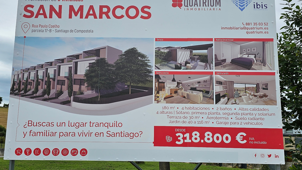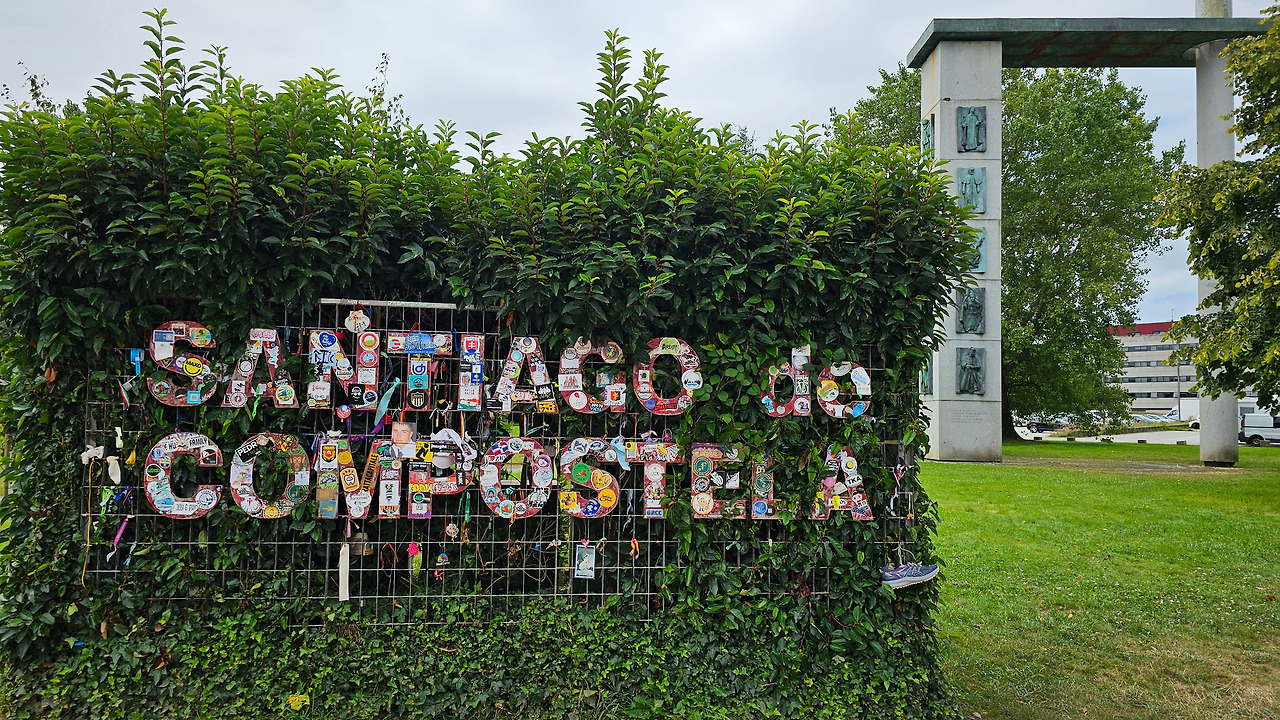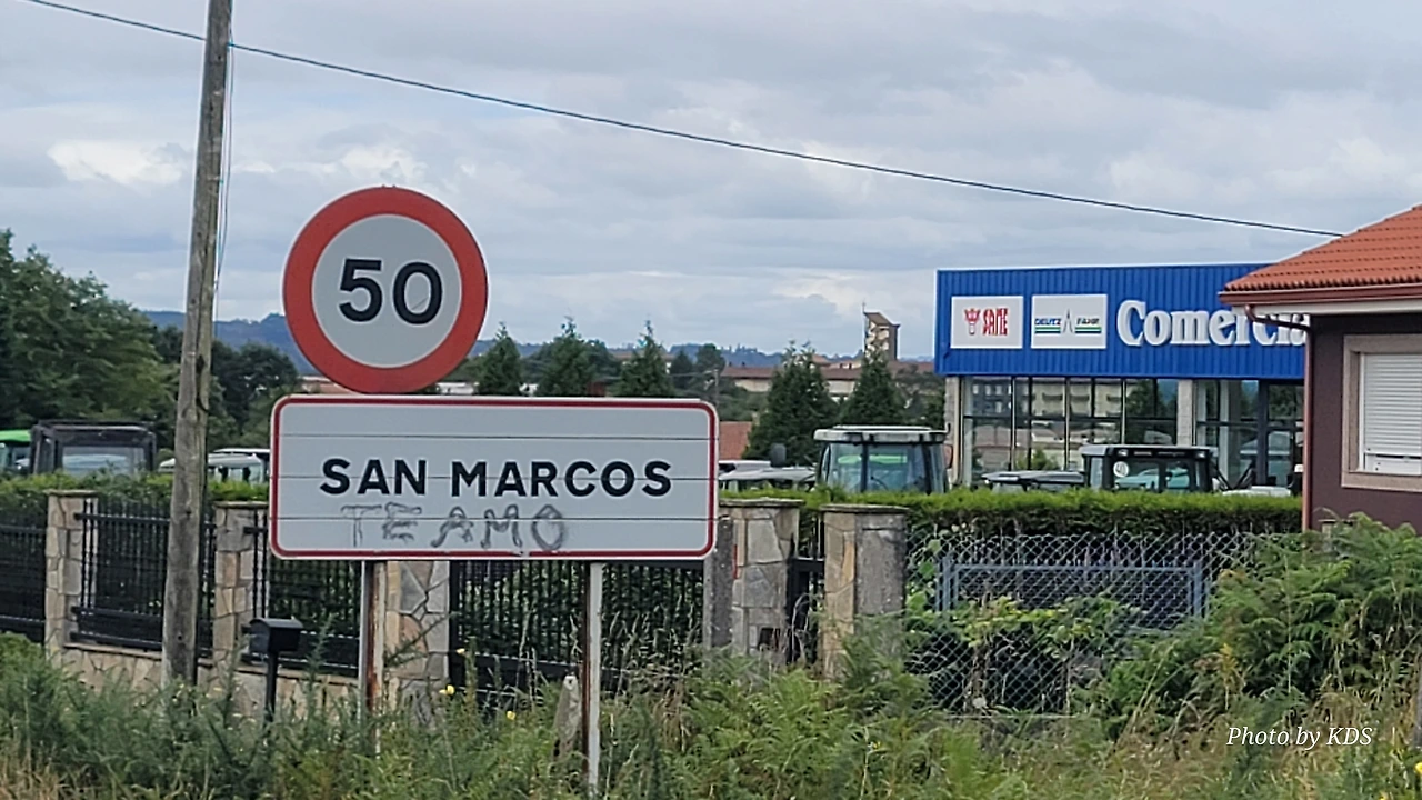 출발지에서 33.5Km를 걸어오면 산 마르코스(San Marcos) 마을에 당도하고, 이 마을과 1Km 사이로 같은 마을처럼 붙어 있는 마을이 몬떼 도 고소(Monte do Gozo) 마을이다. 몬테 도 고소 마을은 그 뜻이 '기쁨의 언덕'이다. 이곳은 해발 370m인 약간 언덕 지역이라서 여기보다 낮은 산티아고 데 콤포스텔라는 해발 260m여서 이곳에서 맑은 날에는 순례자들의 목적지인 산티아고 콤포스텔라 대성당의 세 첨탑을 처음으로 볼 수 있는 곳으로 알려져 있다. 이곳이 순례길의 마지막 언덕이자 대성당에 도달하기 전 마지막 정거장이 될 수 있으며, 남은 거리가 4.5Km여서 1시간 정도 걸으면 도착할 수 있다. 그래서 순례길의 전통에 따라 마침내 갈 길의 끝을 보고 순례자들은 환호하며 외쳤던 곳이다.
