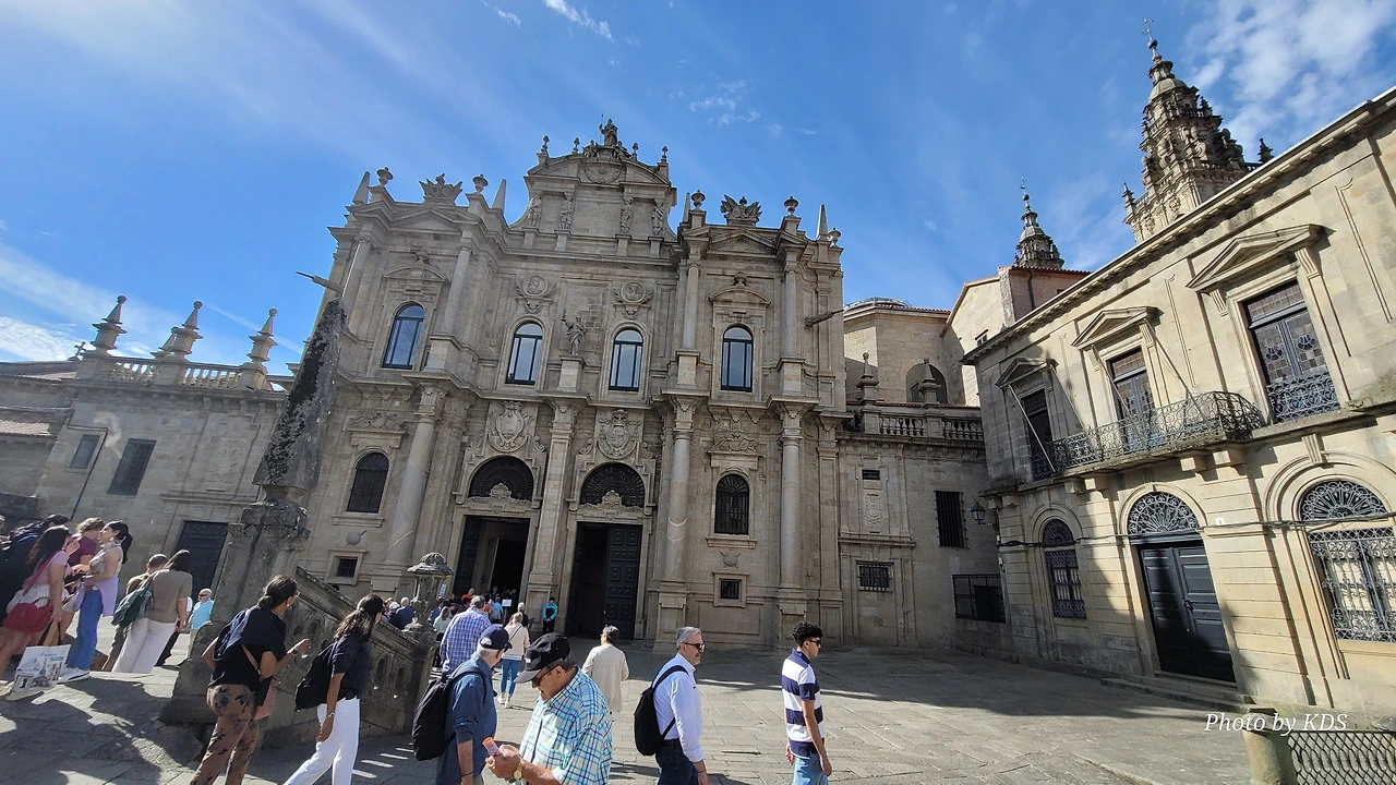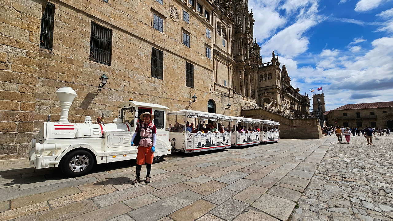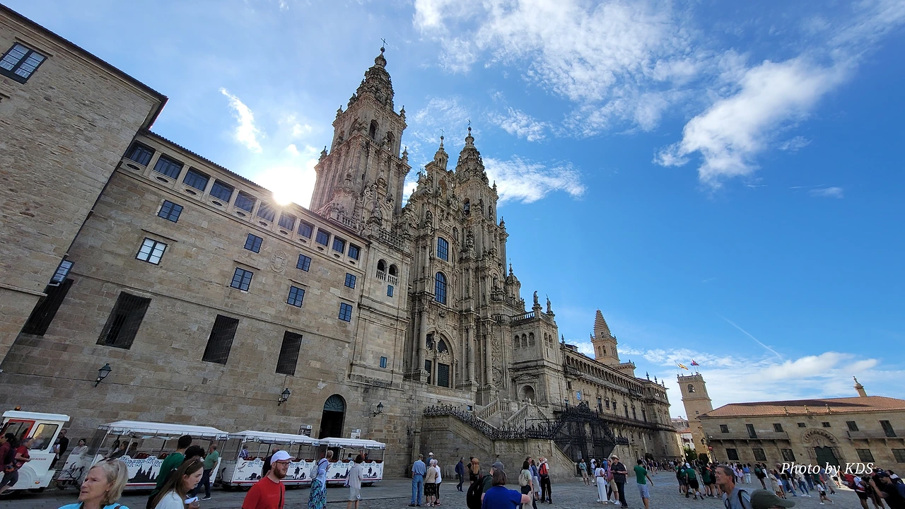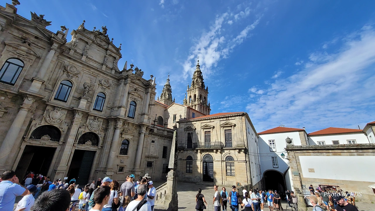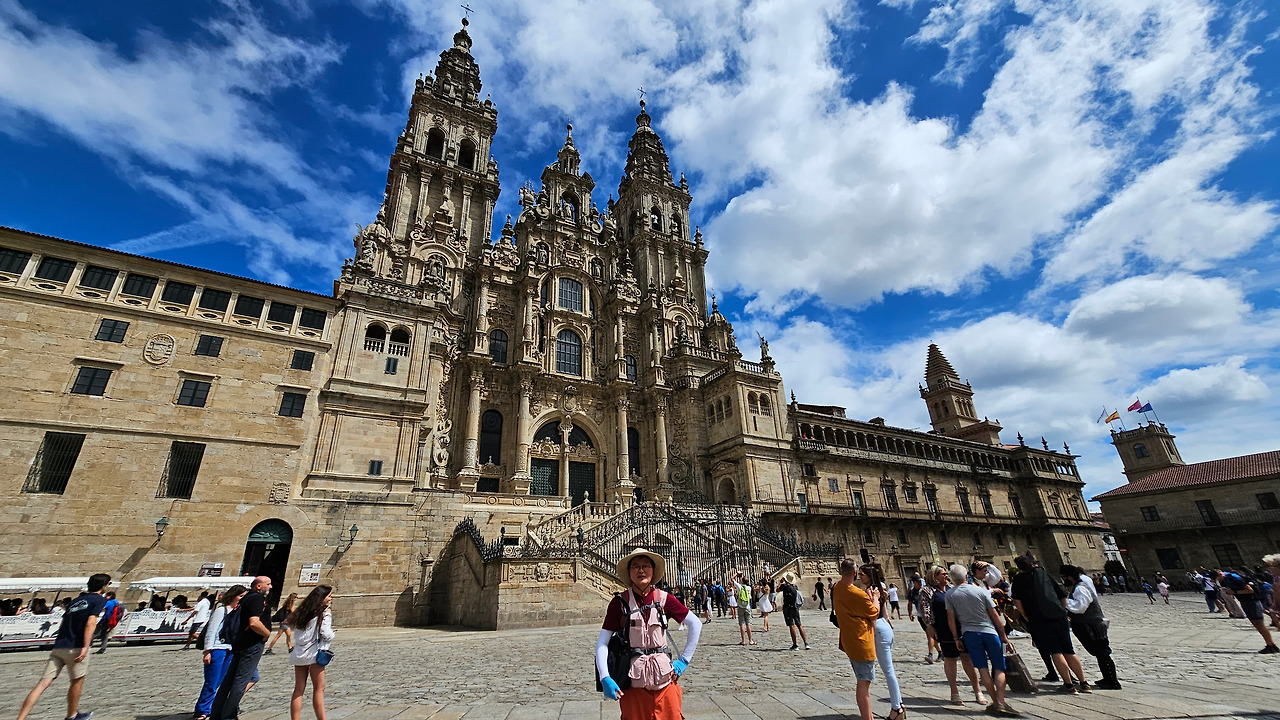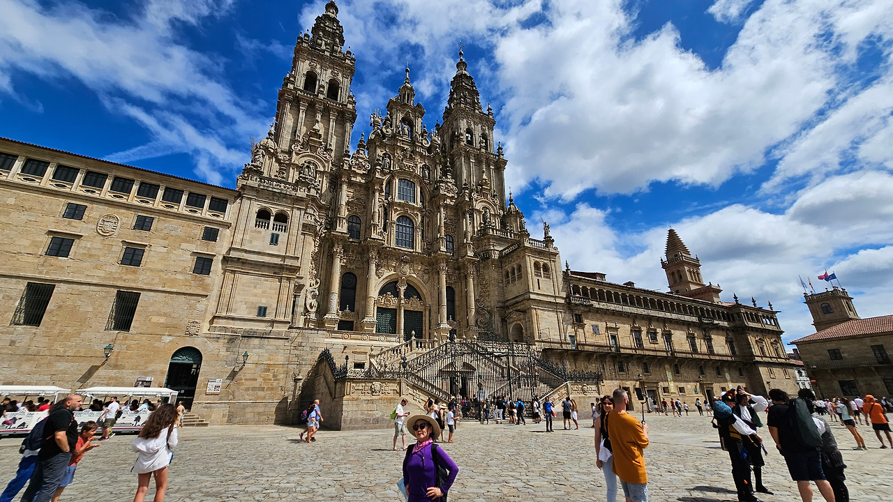7월 15일 생장 피에드 포르에서 출발하여 800Km를 걸어서 드디어 8월 14일 오늘 산티아고 대성당(Catedral Basilica de Santiago de Compostela)에 무사히 도착했다. 총일수로 31일이 걸렸고, 중간에 하루를 쉬었으니 순례길을 걸은 날은 정확히 30일이 되겠다. 그렇게 빠르지도 그렇게 느리지도 않은 적당한 기간이다. 특히 여성 순례객을 동반한 것으로는 짧은 기간 완주를 한 것이다. 오늘 총 39Km를 걸어서 이곳에 도착한 것이다. 대성당으로 오는 산티아고 구시가지의 골목길은 스페인의 연휴로 몰려든 순례객과 관광객으로 길이 막힐 정도였다. 대성당의 광장에도 무수한 인파들이 몰려서 정말 성황을 이루고 있었다.