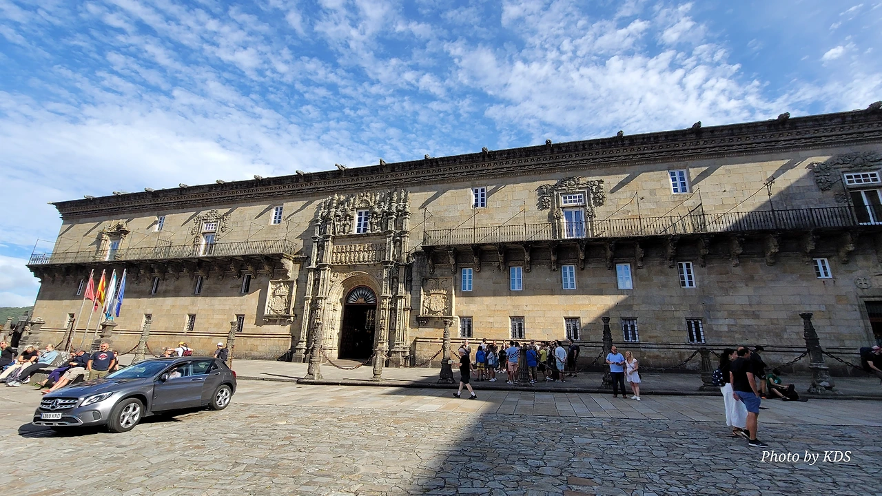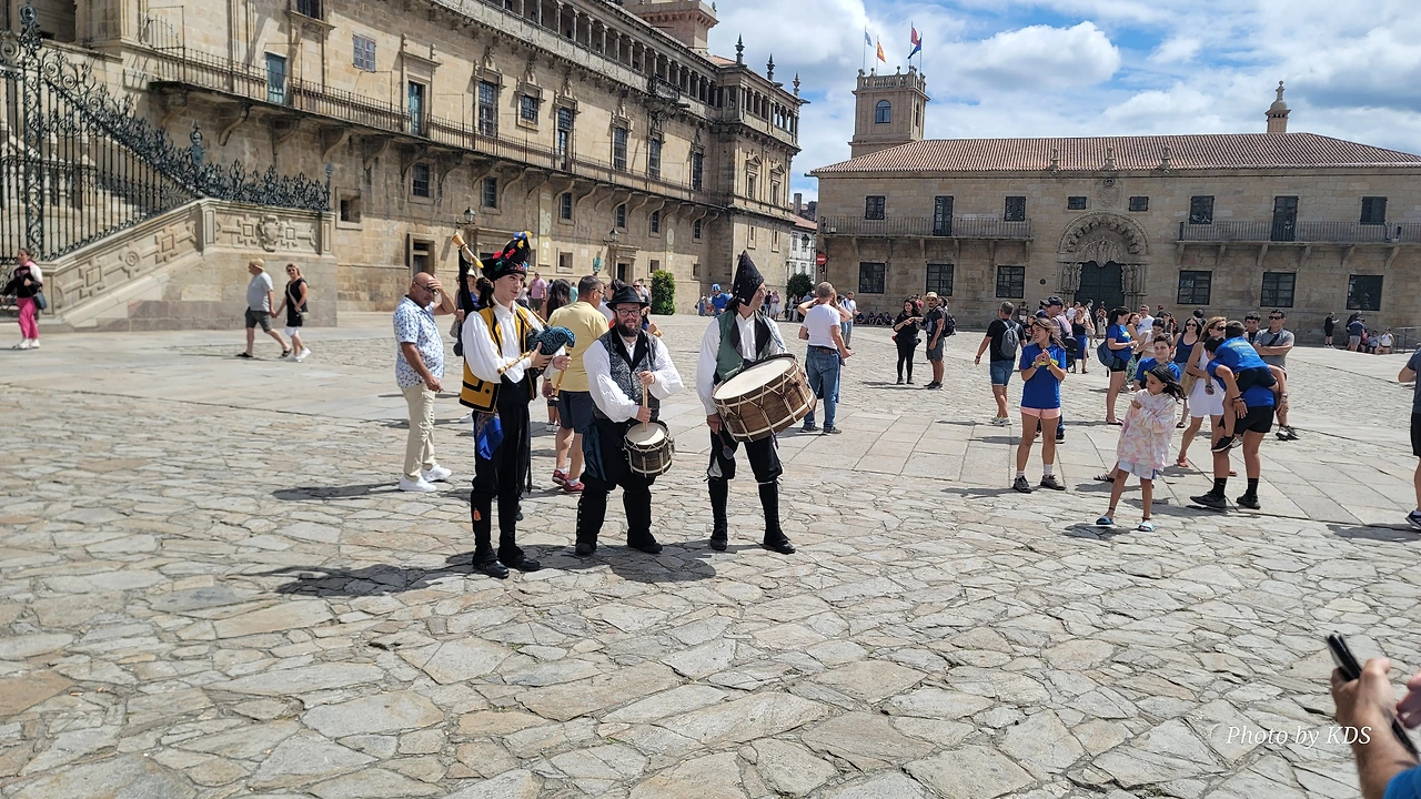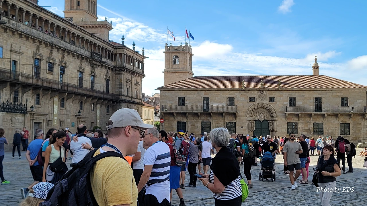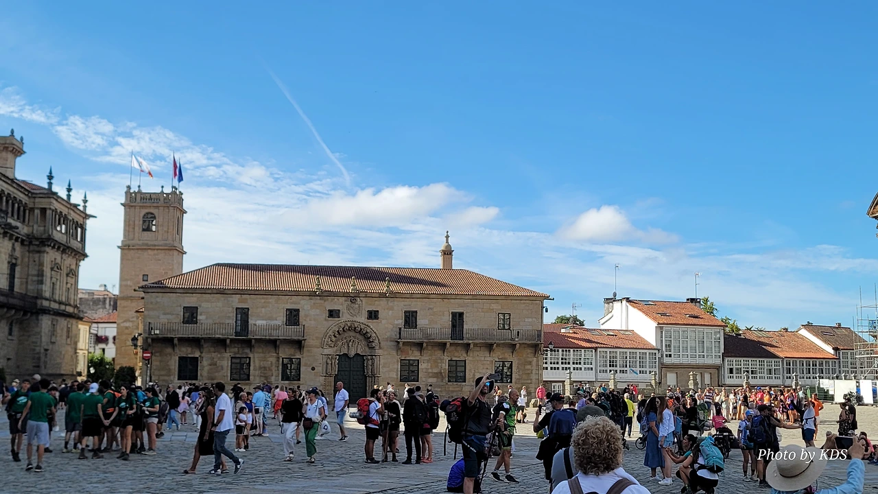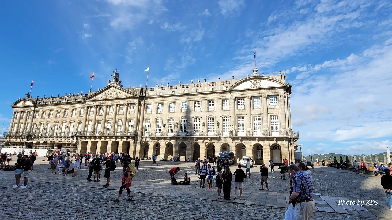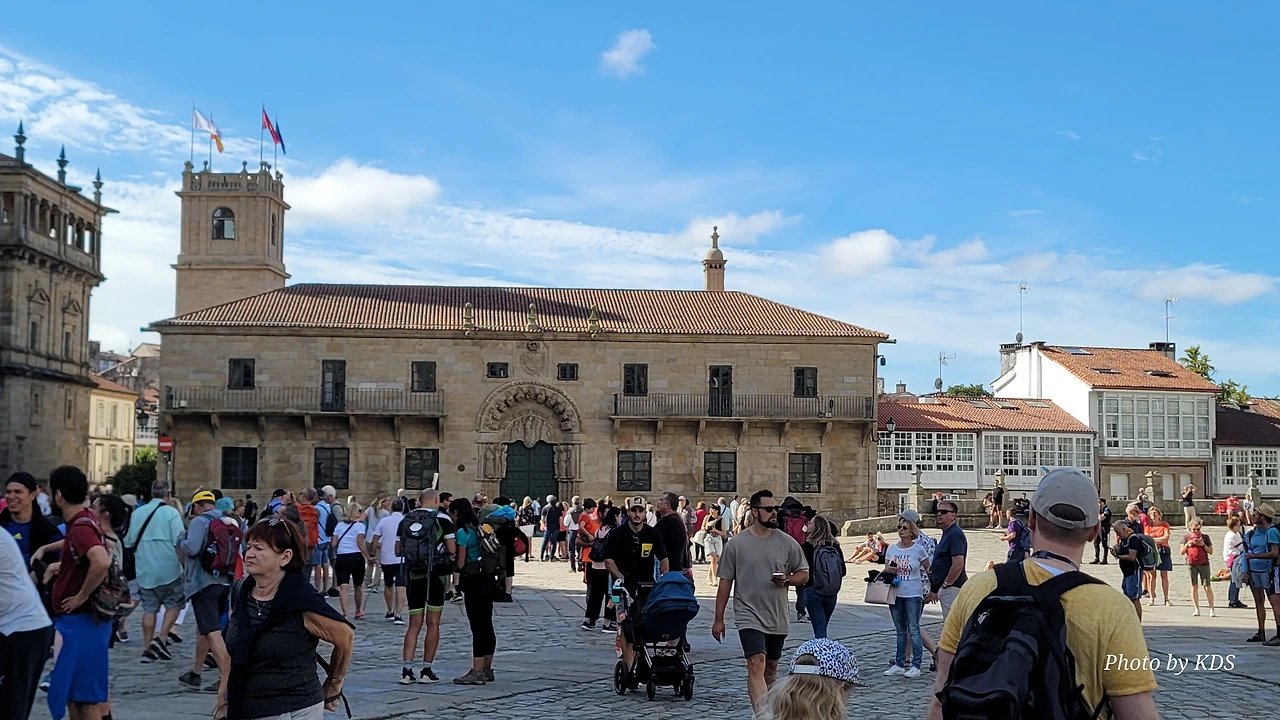 7월 15일 생장 피에드 포르에서 출발하여 800Km를 걸어서 드디어 8월 14일 오늘 산티아고 대성당(Catedral Basilica de Santiago de Compostela)에 무사히 도착했다. 총일수로 31일이 걸렸고, 중간에 하루를 쉬었으니 순례길을 걸은 날은 정확히 30일이 되겠다. 그렇게 빠르지도 그렇게 느리지도 않은 적당한 기간이다. 특히 여성 순례객을 동반한 것으로는 짧은 기간 완주를 한 것이다. 오늘 총 39Km를 걸어서 이곳에 도착한 것이다. 대성당으로 오는 산티아고 구시가지의 골목길은 스페인의 연휴로 몰려든 순례객과 관광객으로 길이 막힐 정도였다. 대성당의 광장에도 무수한 인파들이 몰려서 정말 성황을 이루고 있었다.