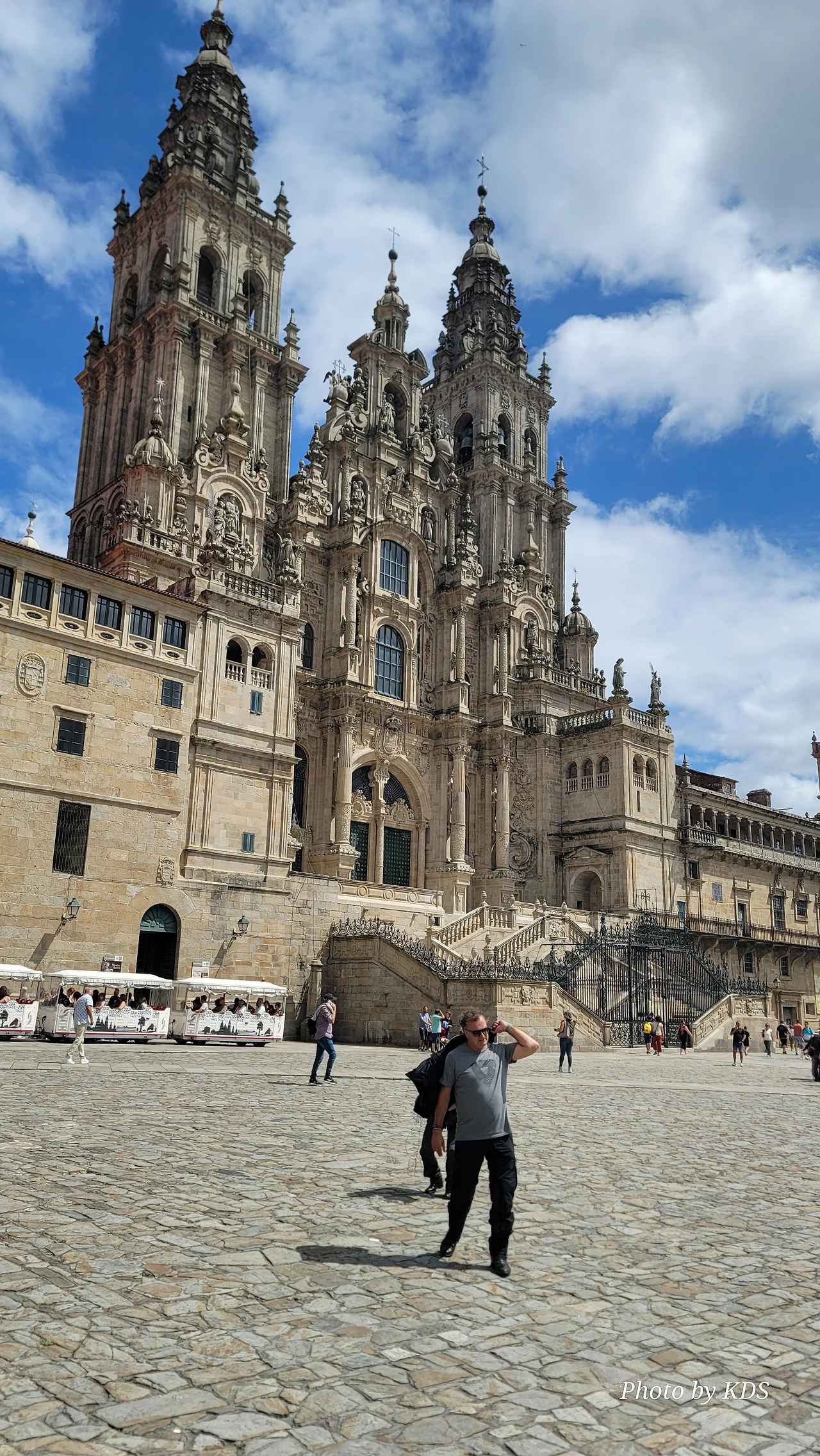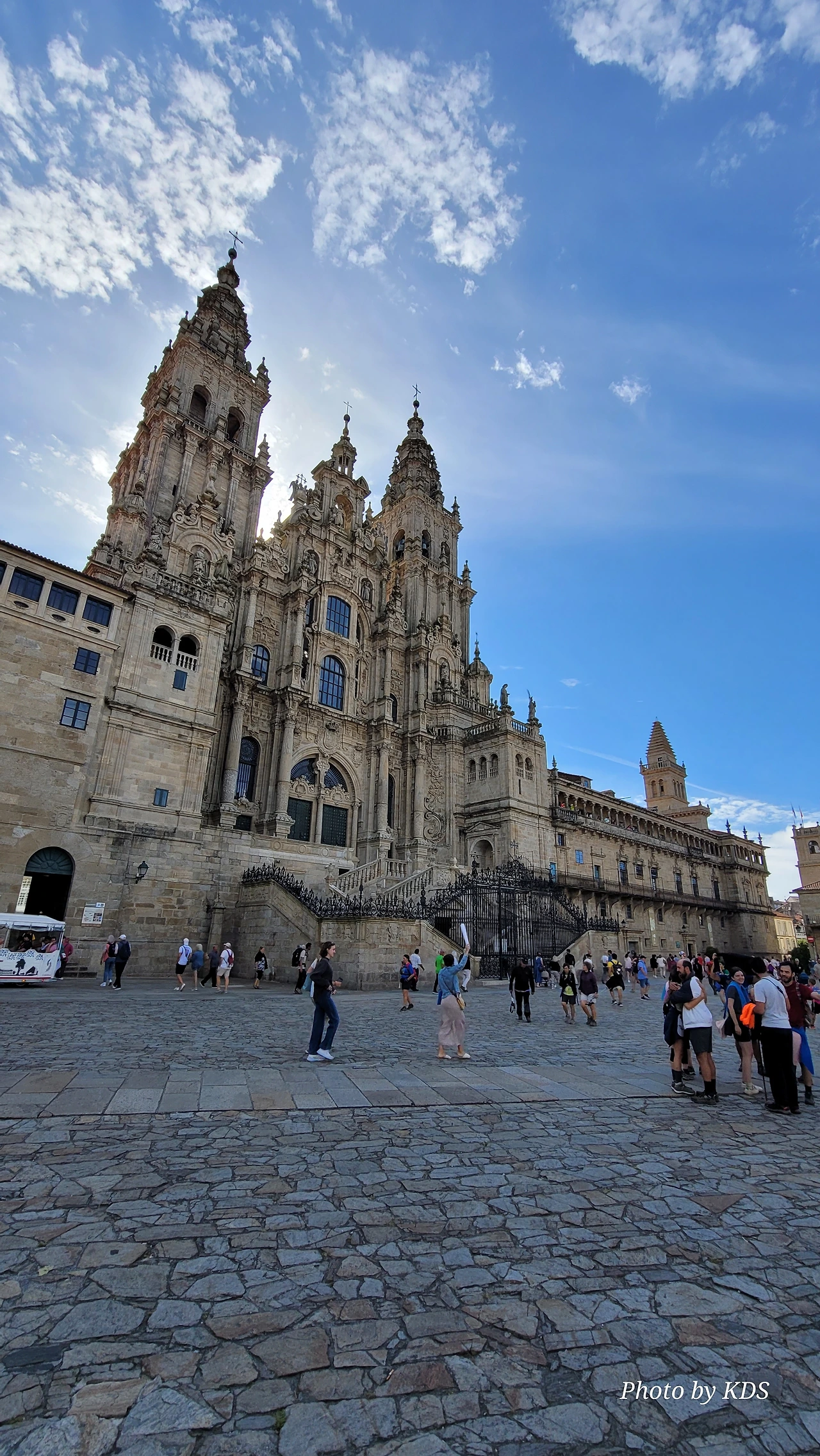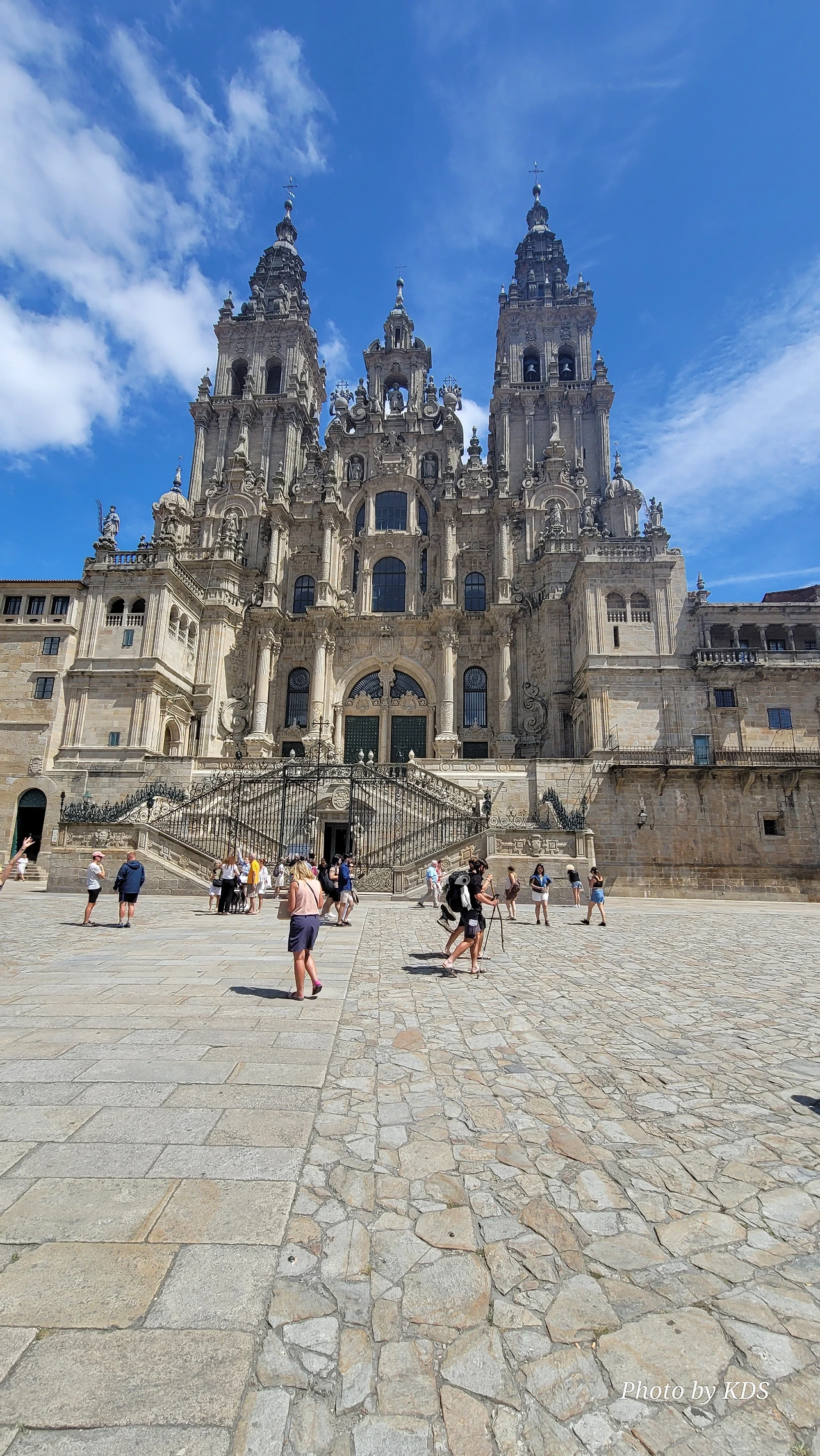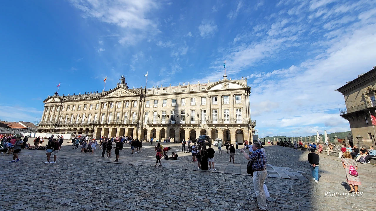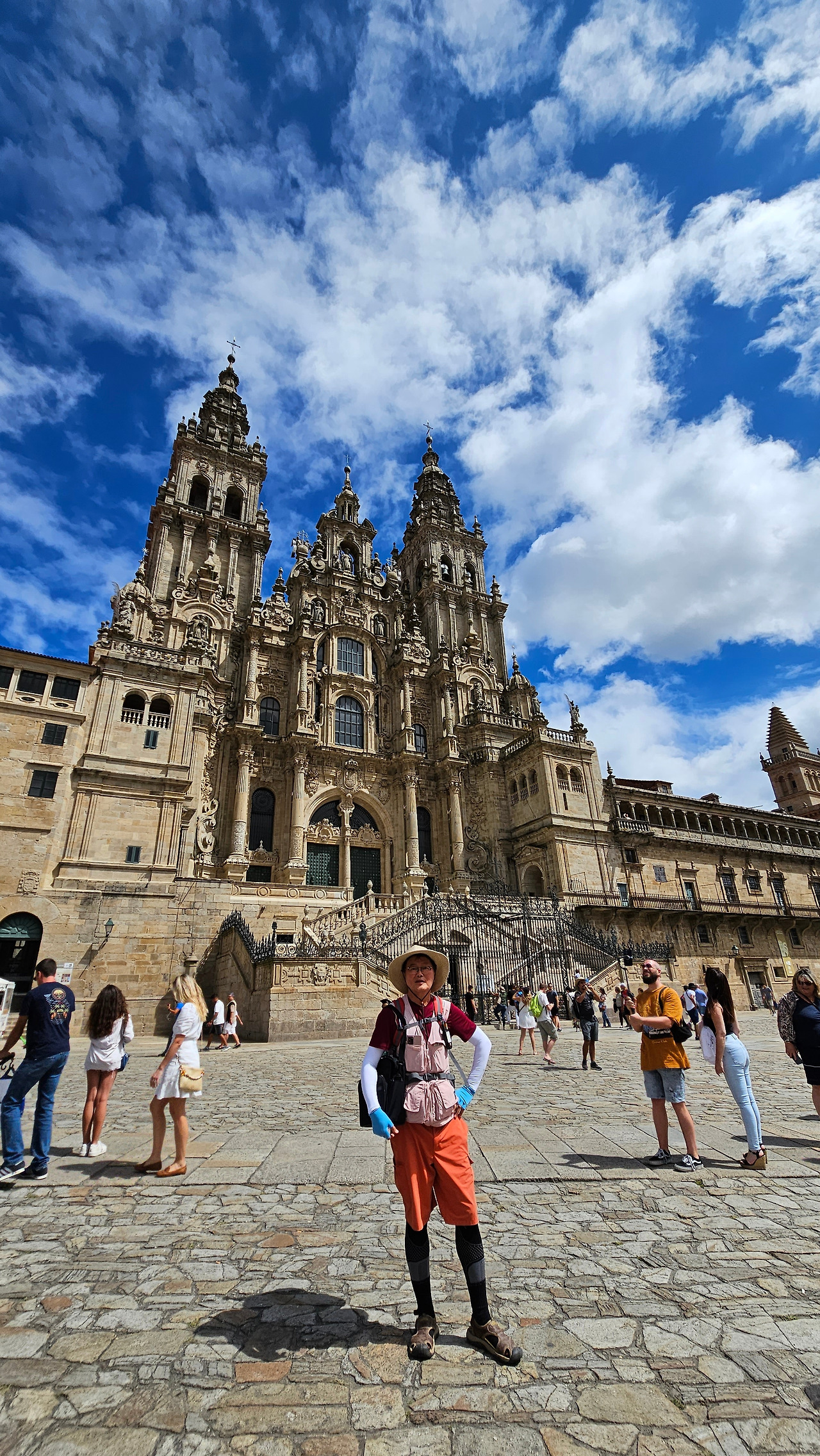 7월 15일 생장 피에드 포르에서 출발하여 800Km를 걸어서 드디어 8월 14일 오늘 산티아고 대성당(Catedral Basilica de Santiago de Compostela)에 무사히 도착했다. 총일수로 31일이 걸렸고, 중간에 하루를 쉬었으니 순례길을 걸은 날은 정확히 30일이 되겠다. 그렇게 빠르지도 그렇게 느리지도 않은 적당한 기간이다. 특히 여성 순례객을 동반한 것으로는 짧은 기간 완주를 한 것이다. 오늘 총 39Km를 걸어서 이곳에 도착한 것이다. 대성당으로 오는 산티아고 구시가지의 골목길은 스페인의 연휴로 몰려든 순례객과 관광객으로 길이 막힐 정도였다. 대성당의 광장에도 무수한 인파들이 몰려서 정말 성황을 이루고 있었다.