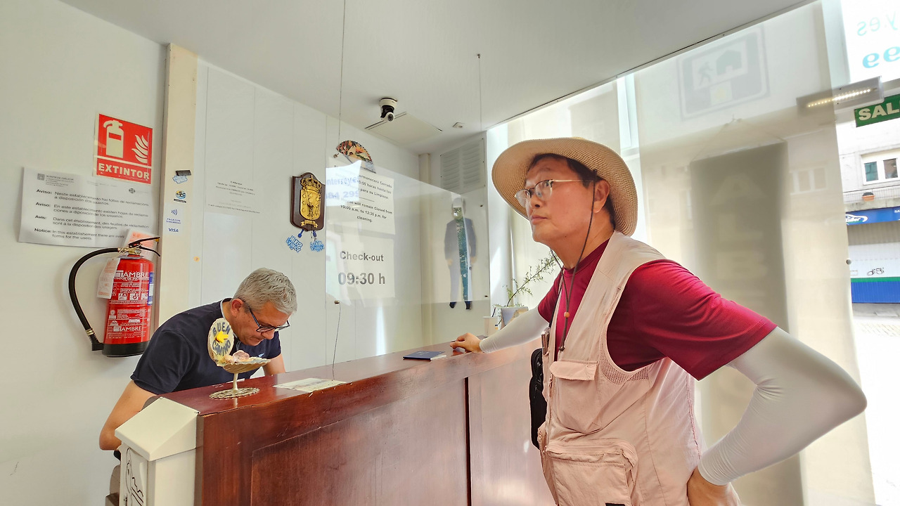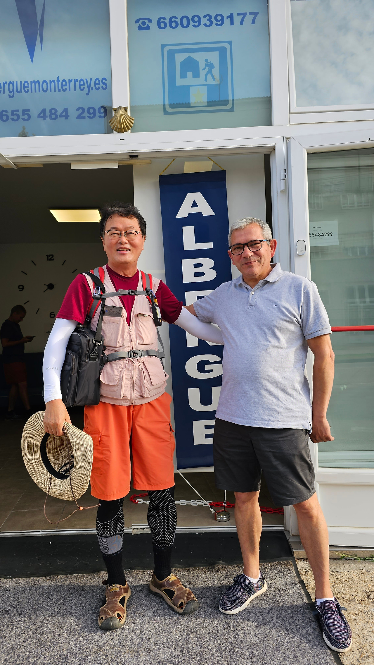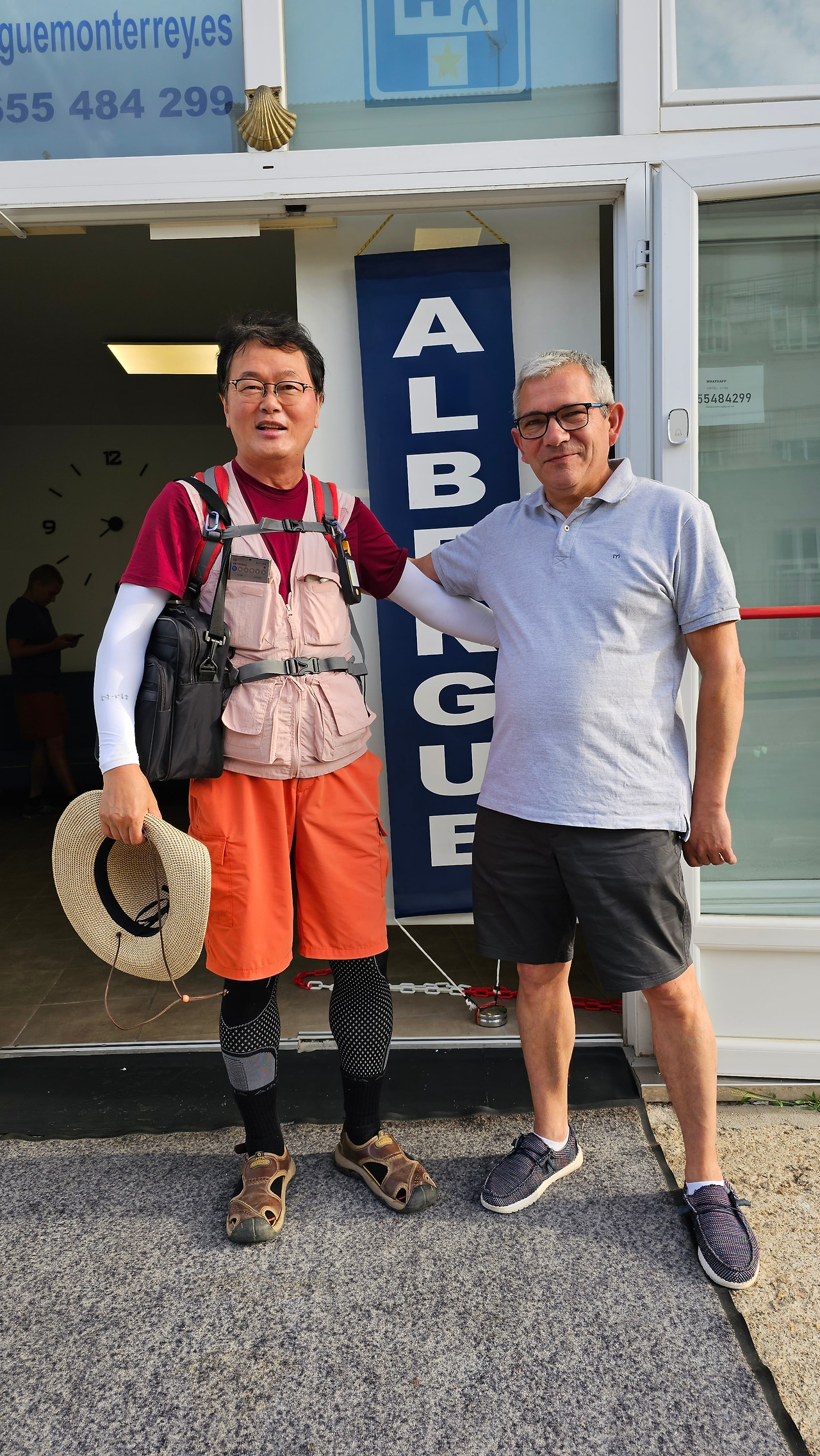 순례길을 걸어서 완주한 오늘의 마지막이고 가장 중요한 과업이 남았다. 두 사람이 밤을 편안히 누워서 밤을 보내야 할 숙소를 구해야 하는 것이다. 성당까지 오는 동안 39Km를 걸어서 힘들고 지쳤다. 그런데, 우체국 찾으랴, 성당 찾으랴, 순례자 사무소 찾으랴 돌아다니느라 다리는 천근만근이다. 꾀를 내서 구글지도를 펼치고 대성당 주변의 숙소를 차례대로 전화를 걸었다. 돌아오는 답은 풀 부킹(Full Booking)이란다. 어떤 곳은 아예 전화조차 받지를 않는다. 어떤 곳은 한 명이라면 침대 한나가 비었다고 하는데 그렇다고 한침대에 두 명이 들어갈 수는 없고, 호텔을 따로따로 정할 수도 없는 형편이라 대략 난감이다. 어쩔 수 없이 더 무거워진 큰 배낭과 작은 배낭을 두 개씩 짊어지고, 오던 길로 되돌아갈 수밖에 없었다. 왜냐하면 오늘(14일)과 내일이 연휴라서 이곳으로 쏟아져 들어온 순례객과 관광객이 넘쳐서 시내의 모든 숙박시설은 모조리 만원이었다. 온 길도 힘들었는데 다시 되돌아가야 한다니 더 힘이 들고 맥이 빠진다. 시내를 벗어나면서 숙박시설은 모조리 들어가서 물어보아도 마찬가지였다. 시내를 정말 벗어나서 다른 마을과 인접한 곳으로 오면서 계속해서 구글 지도를 찾아 전화를 했더니 마침 하나가 잡혔다. 몬테레이 알베르게(Momterrey Albergue)였다. 그나마 하느님 감사하다고 외칠 지경이다. 산티아고 시내를 벗어난 조용한 주택지역에 있는 그나마 신축한 지 그리 오래되지 않은 숙소였다. 주인장을 만나서 입식 수속을 하고 샤워를 하고 나니 만사가 귀찮다. 시내를 둘로 볼 생각은 엄두도 안 나고 더구나 대성당의 저녁 미사 참석은 신자가 아니라서 생각도 못했다. 대성당의 저녁 미사에서 향로(Botafumeiro) 퍼포먼스가 최고라는데 생략했다. 두고두고 아쉬운 처사가 아닐까 생각한다.