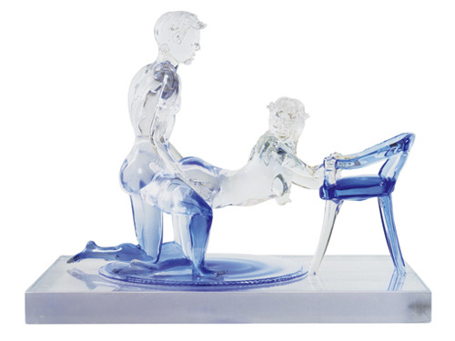 다른 하나는 바위 침상 위에서 열락의 신음을 참지 못하고 새빨간 입술을 크게 벌려서 토해내는 여인이다. 검정스타킹의 두 다리를 추켜들고 하늘로 날아가는지, 아니면 심연의 나락으로 내려앉는지 모를 표정이다. 모두 소조(塑造)로 빚어낸 실물 크기의 남녀교접 형상이다. 플라스틱에 색을 입혀 실제처럼 보이려는 효과를 내고 있다. 제프는 작가 자신이고, 상대는 한 때 그의 부인인 포르노배우 치치올리나다. 이 부부는 자신들의 성기가 클로즈업된 사진과 이처럼 성행위를 하는 포즈의 수많은 사진 및 조소작품을 작가의 개인전에 내보였다.