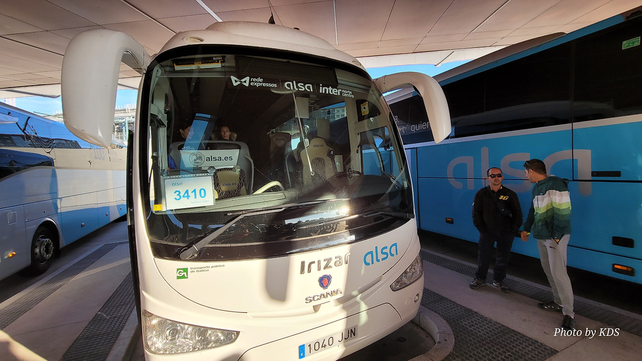 묵시아에서 산티아고 순례길의 모든 일정은 끝냈다. 지금부터는 스페인과 포르투갈을 대충 훑어보는 여행을 시작하는 거다. 묵시아 숙소에서 05:00이 기상하여 배낭을 다시 꾸려서 06:10에 산티아고 데 콤포스텔라로 출발하는 첫 버스를 타야 한다. 이것을 타고 나가서 산티아고에서 포르투갈의 포르투로 이동을 해야 한다. 새벽의 밤바다는 컴컴해서 보이지도 않는다. 가로등만 졸고 있는 거리를 지나서 간이 버스 정류장에서 버스를 기다렸다가 탑승했다. 여행은 늘 긴장의 연속이다. 버스의 제일 앞자리를 잡아서 전방을 주시하면서 한 시간 반 정도 달려서 산티아고 버스터미널에 도착했다.