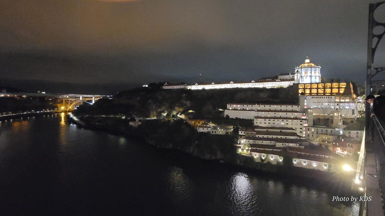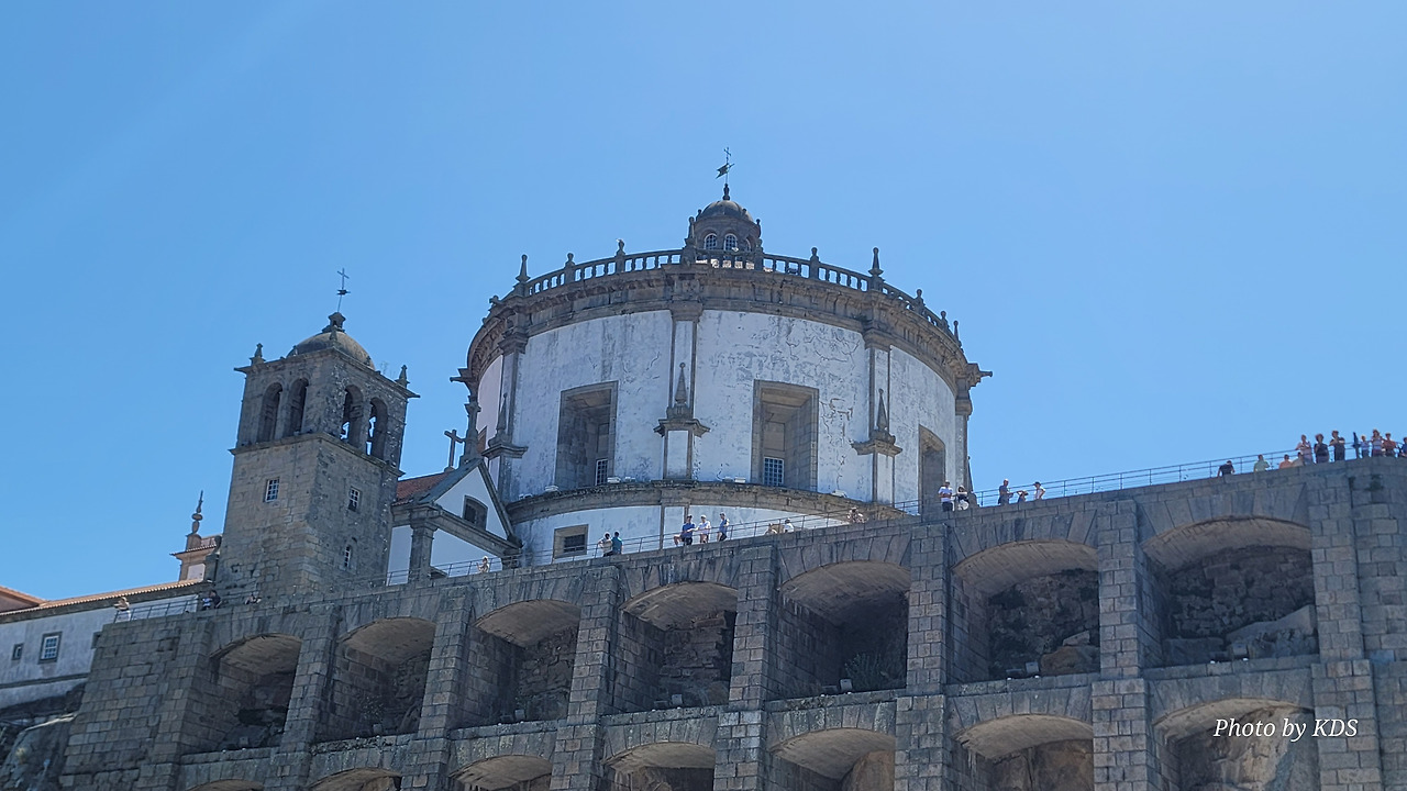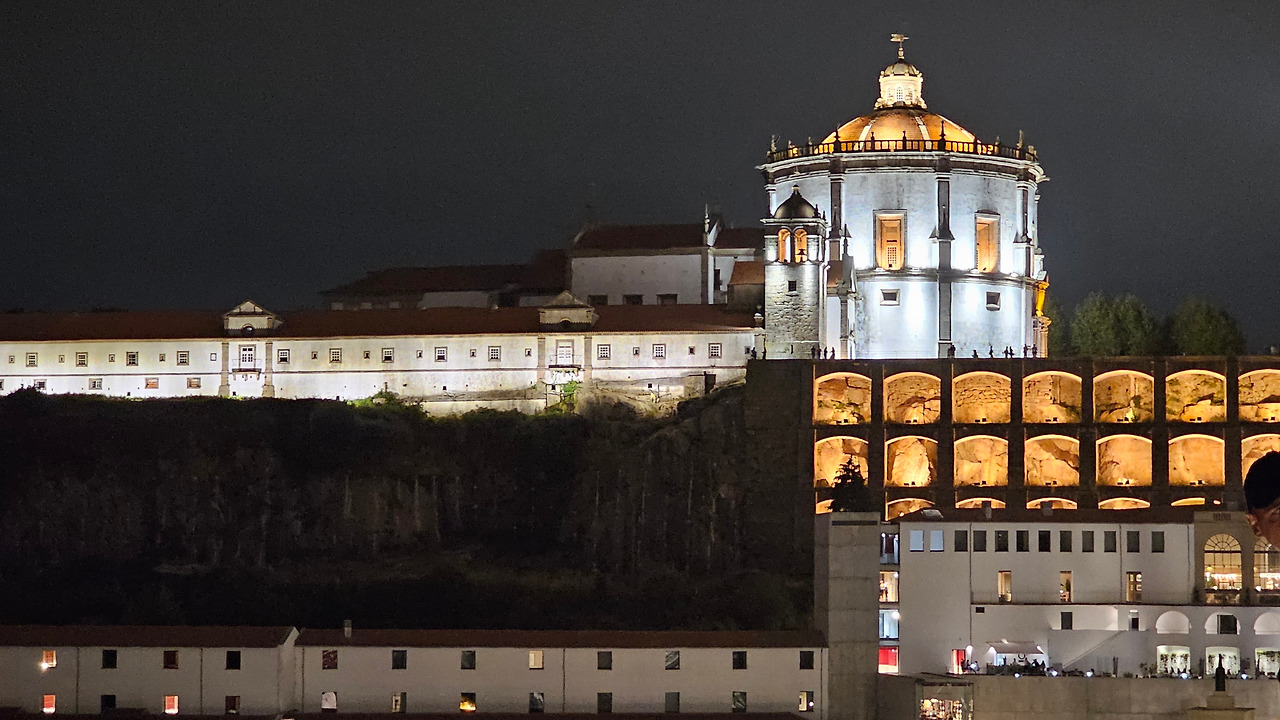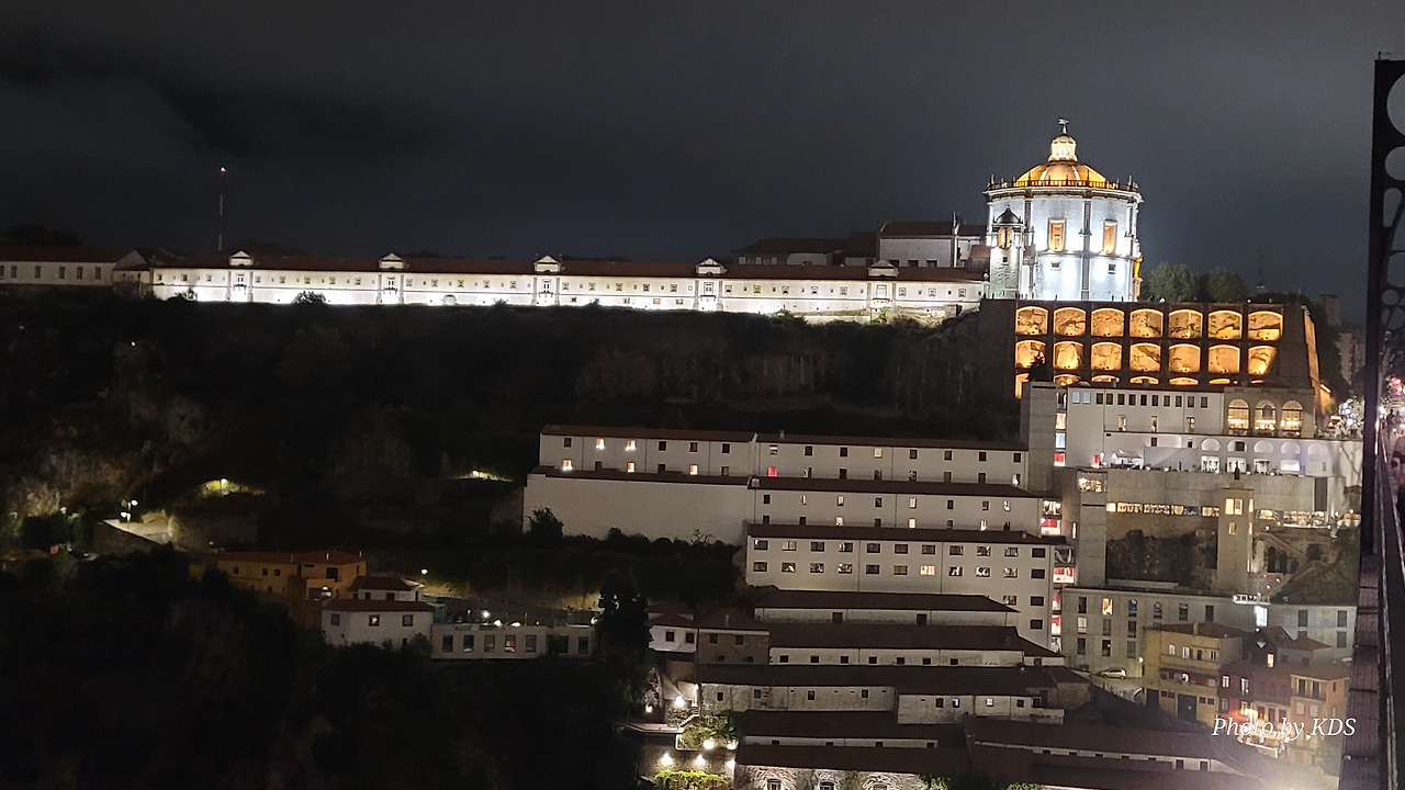 강의 가파른 언덕 위에는 다양한 집들과 시설들이 건축되어 있는데, 언덕의 꼭대기에 세하 두 필라르 수도원(Mosterio Santo Agostinho da Serra do Pilar)이 있다. 약간 경사로를 한참 걸어서 올라가야 하는데, 올라가서 도루강의 양쪽을 바라보는 풍경도 좋고, 밤에는 이 수도원의 담장이 마치 석굴처럼 약간 파져 있는데 여기에 조명을 설치해 두어서 야경이 보기에 그런대로 볼 만하다. 건물은 원형 교회 형태로 1,500년대에 건축되었다. 포르투 쪽에 있는 모로(Morro) 정원보다 이곳의 높이가 더 높아서 개인적으로 이곳 전망이 더 좋다는 사람도 많다.