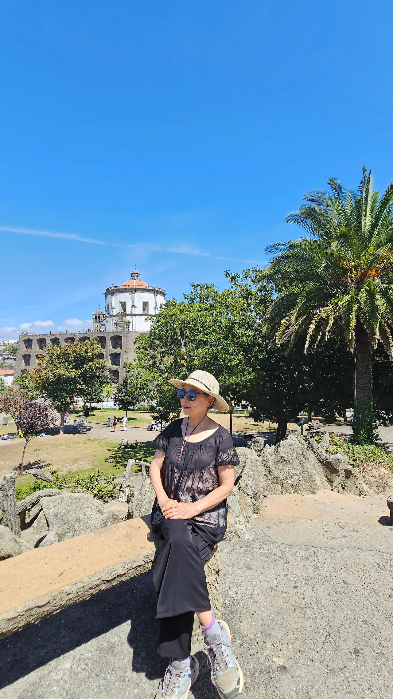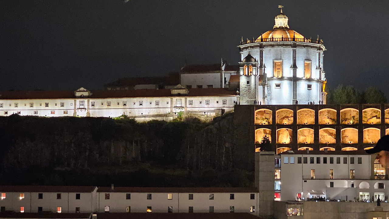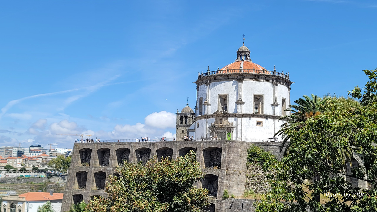 강의 가파른 언덕 위에는 다양한 집들과 시설들이 건축되어 있는데, 언덕의 꼭대기에 세하 두 필라르 수도원(Mosterio Santo Agostinho da Serra do Pilar)이 있다. 약간 경사로를 한참 걸어서 올라가야 하는데, 올라가서 도루강의 양쪽을 바라보는 풍경도 좋고, 밤에는 이 수도원의 담장이 마치 석굴처럼 약간 파져 있는데 여기에 조명을 설치해 두어서 야경이 보기에 그런대로 볼 만하다. 건물은 원형 교회 형태로 1,500년대에 건축되었다. 포르투 쪽에 있는 모로(Morro) 정원보다 이곳의 높이가 더 높아서 개인적으로 이곳 전망이 더 좋다는 사람도 많다.