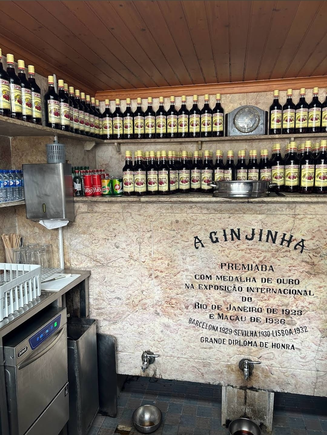 A Ginjinha 바는 1840년에 처음 문을 열어 5대에 걸쳐 같은 가족이 운영해 왔다. 정통 포르투갈의 맛을 원한다면 이보다 더 좋은 곳은 없다. A Ginjinha 바는 소유주의 이름을 따서 Ginjinha Espinheira 바라고 명명했다. 바는 항상 반쯤 취한 관광객들로 붐빈다. 진자 한 잔의 가격은 €1.55이다. 이 한잔이 비록 많은 질병을 치료할 수는 없을지라도 하루 관광에 큰 도움이 될 것이다. Ginja에는 체리가 있으면 ‘com’, 없으면 ‘sem’이라는 두 가지 유형이 있다. 진진하에서 사용하는 체리는 모렐로 체리 또는 시큼한 체리로 알려져 있다. 진자는 진진하(Ginjinha)의 약칭이다. 리스본에서 진진하를 최초로 생산, 판매한 사람은 프란시스코 에스피네이라(Francisco Espinheira)였다. 유사한 체리 리큐어가 포르투갈에서 수세기 동안 제공되었지만, 체리에서 직접 발효되어 만드는 데 비용이 많이 들고 시간이 많이 걸리기 때문에 상류층 전용이었다.