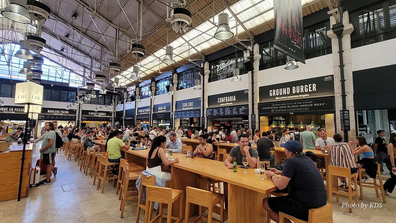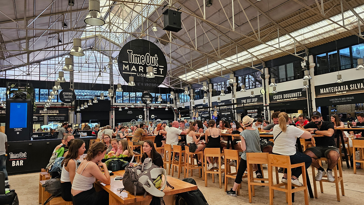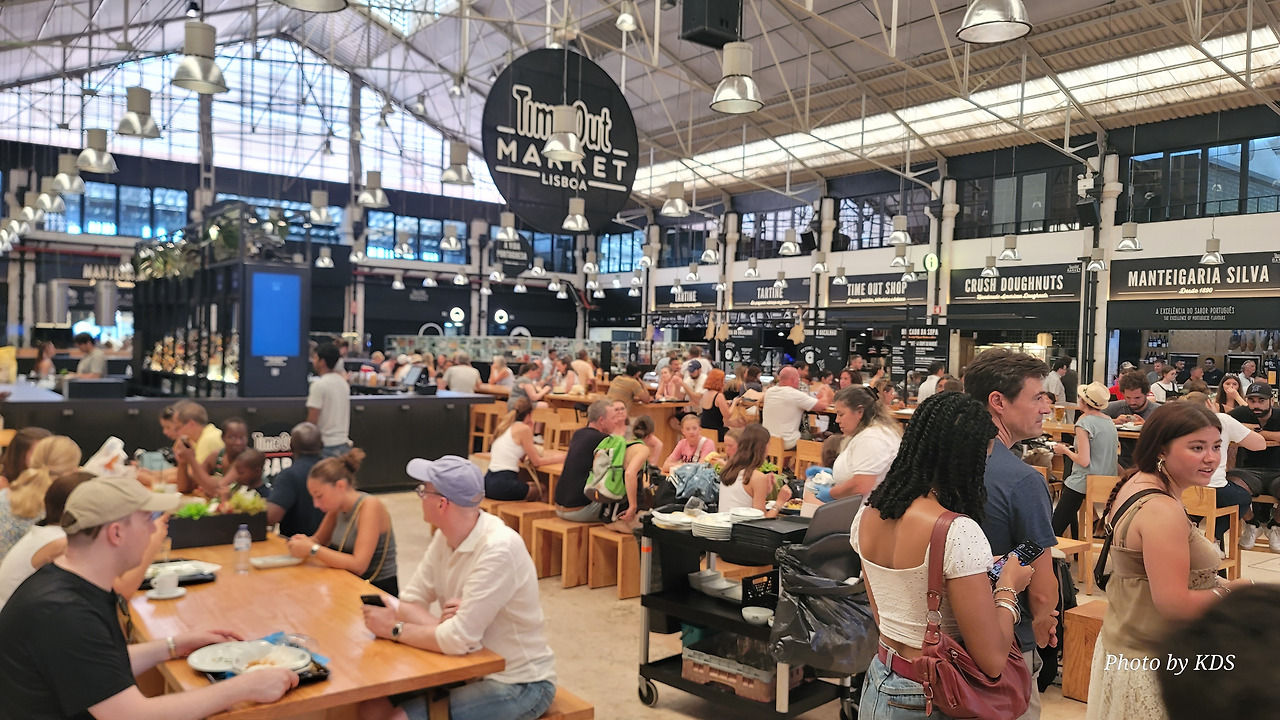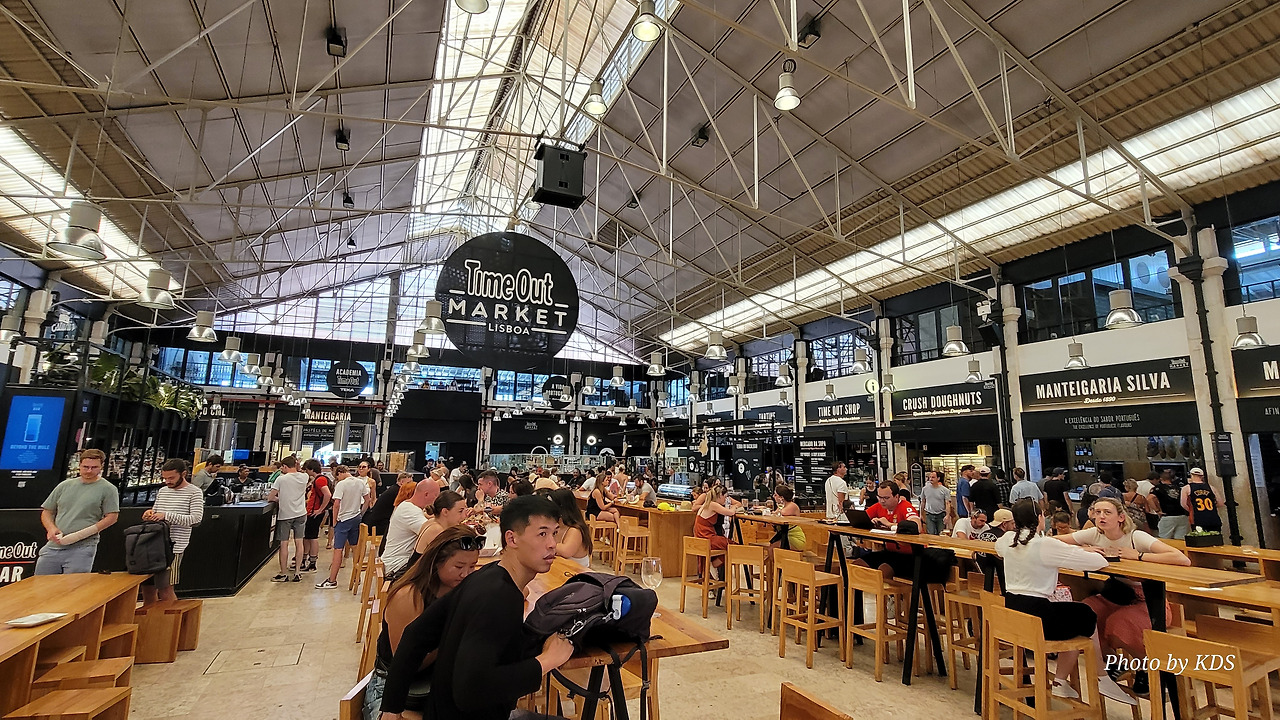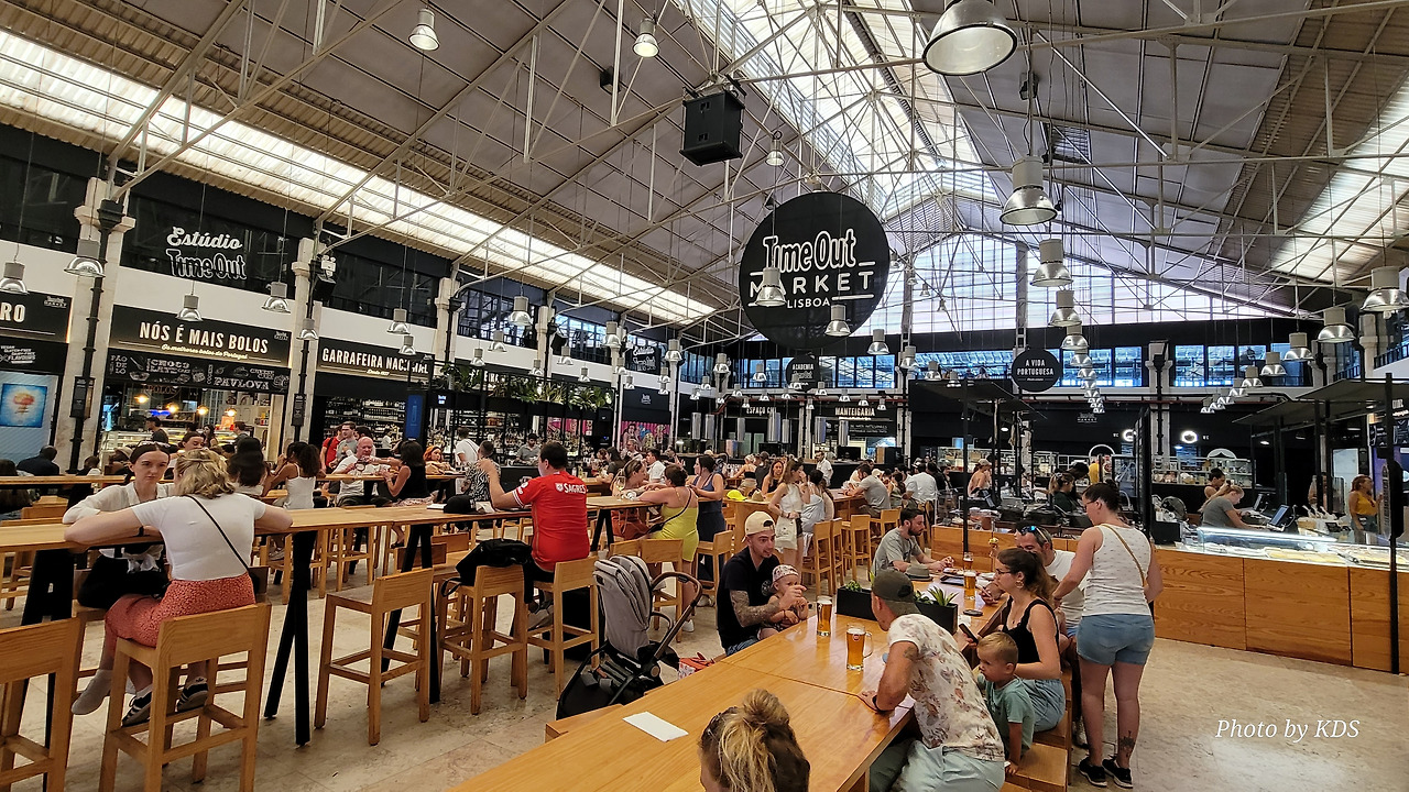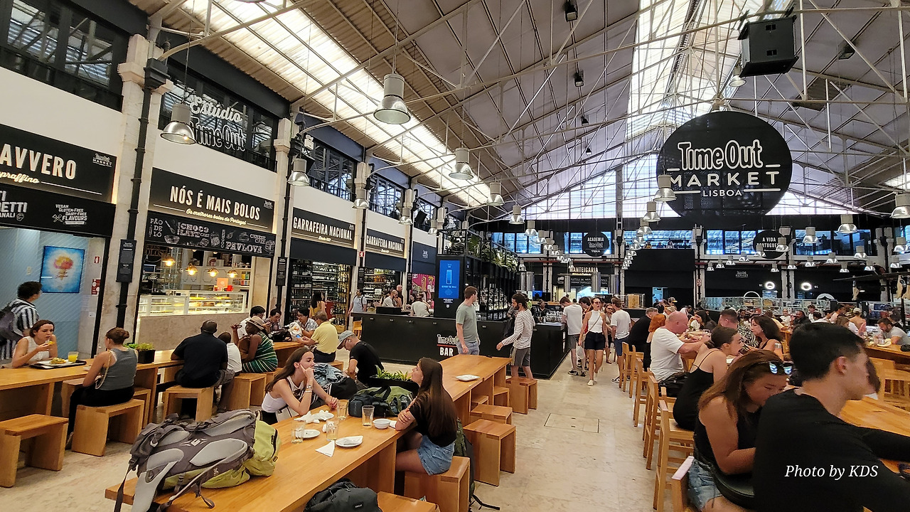 영국의 글로벌 문화•여행 가이드 잡지사인 '타임아웃'(TimeOut)이 2014년에 포르투갈 리스본에 전 세계에서 첫 번째로 오픈한 타임아웃마켓(Time-out Market)인데, 여행객이나 현지인에게 폭발적 인기를 얻고 있다. 26개 레스토랑, 8개 바, 12개 이상의 상업 공간 및 콘서트홀과 이용객들이 식사를 할 수 있는 테이블과 의자로 구성되어 있다. 여기에 입점한 브랜드는 모두 리스본 최고의 요리 즉 최고의 스테이크, 최고의 버거, 최고의 스시 또는 최고의 쇼 등으로 구성되어 있다. 다른 한편에는 도시에서 가장 잘 알려지고 가장 오래된 해산물과 생선, 과일과 채소 및 꽃 판매점이 구비되어 있다. Academia Time Out 요리 학교는 음식에 대한 사랑을 배우고, 향상하고, 공유할 수 있는 공간이다. '계란 후라이 하는 법을 몰라요'부터 '나는 미슐랭 스타 셰프예요'까지, 미구엘 메스키타 셰프와 그의 팀이 진행하는 모두를 위한 워크숍이 마련되어 있단다. 그리고 또한 개인 행사, 팀 빌딩, 어린이를 위한 생일 파티, 포르투갈의 기념품인 Barcelos의 수탉보다 더 멋있는 기념품을 집으로 가져가는 관광객을 위한 코스를 진행한다고 한다. 이곳에 들려서 시장 구경도 하고 맛있는 음식을 시켜서 맥주한 잔을 하면서 여행의 피로를 풀면 아주 기분이 좋다. 점심 시간이 가까우면 정말 자리를 차지하기가 힘들 정도로 인파들이 몰려든다. 10시 정도 도착하여 시장과 음식점을 둘러보고 좋아하는 음식을 골라서 자리를 잡는 것이 제일이다.