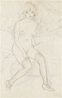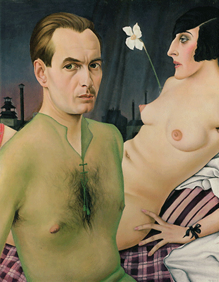 누드 자화상이라고 하면 우선 생각나는 화가가 에곤 실레(Egon Schiele)와 최초의 누드 자화상을 그린 여성화가 파울라 모더존-베커(Paula Modersohn-Becker)가 생각난다. 사실 에곤 실레는 자기의 그림을 너무 자기 비하적(卑下的)으로 그려서 누드화로서 에로스적 감흥이 전혀 일어나지 않는다. 파울라 모더존-베커는 30대의 우아한 자신의 몸과 임신한 몸을 모두 자화상으로 그렸다. 임신한 자화상을 보고 에로스를 논한다면 독자들로부터 뺨을 맞을지도 모르지만, 실제 두 작품 중 임신한 자화상이 금삿갓의 취향에선 더 에로스적이다. 에곤 실레의 자화상은 메마르고 수척한 신이 무슨 병에 걸린 듯 뒤틀리고 일그러져 있어서 보기에도 썩 좋지는 않다. 하지만 크리스티안 샤드(Christian Schad)의 자화상에는 본인만 나오는 게 아니라 여성 모델이 함께 나온다. 본인은 완전 누드가 아니고 얇은 시스루 속옷을 입고 있지만 모델은 전라의 모습을 하고 있다.
