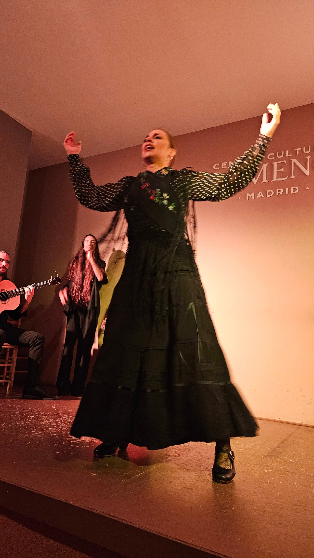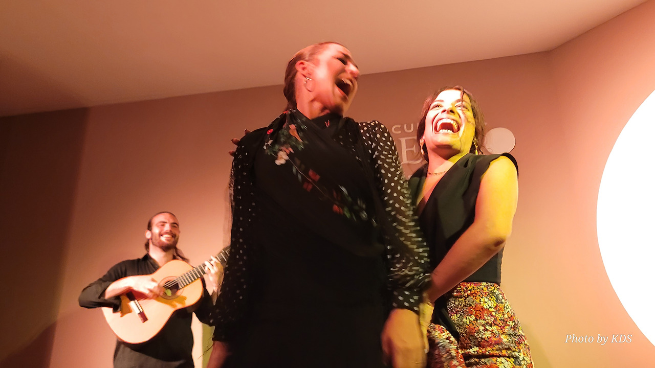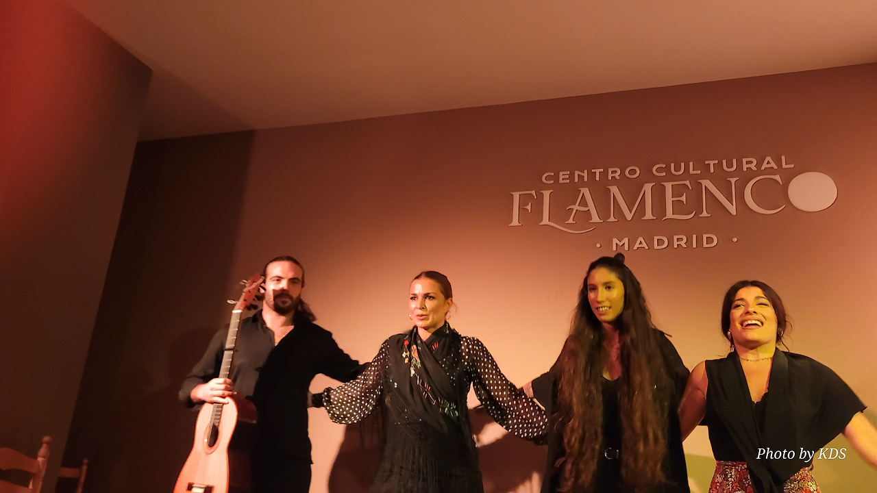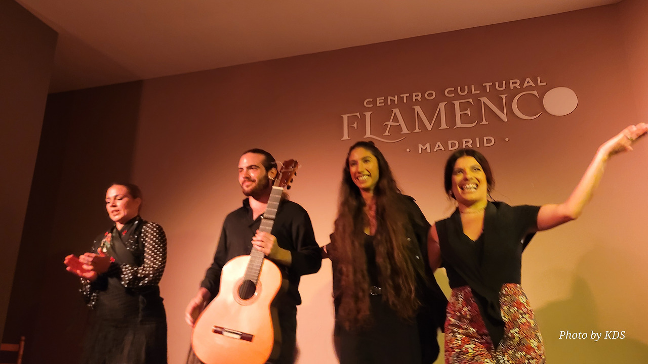 에펠탑을 방문하지 않고 파리에 가거나 뉴욕에 가서 자유의 여신상과 사진을 찍지 않는 것은 아무도 감히 할 수 없을 것이다. 그러니까 스페인에 와서 플라멩코 보드를 밟지 않는 것은 생각할 수 없는 일이다. 플라멩코는 스페인 문화의 일부이고, 살면서 적어도 한 번은 필수적인 약속이기 때문이다. 금삿갓이 방문한 마드리드에 있는 플라멩코 문화 센터(Centro Cultural Flamenco)는 예술로 가득 찬 매우 플라멩코스러운 지역에 위치해 있다. 지역 이름은 추에카(시케나 백작의 거리, 6)이다. 18세기부터 위대한 플랑드르 전통의 지역으로, 여러 추종자들이 카예 바르키요와 그 주변을 플라멩코와 통역사와 예술 애호가들의 지역으로 이야기한단다. 바르킬로 거리에는 20세기 후반 이미 플라멩코 예술가들로 유명한 카페 데 라 살사가 있었단다. 금삿갓이 간 날의 공연은 춤(바일레)은 리시 스파이어, 이삭 데 로스 레예스, 노래(칸타)는 에런 몰리나, 기타는 안토니오 곤잘레스였다.