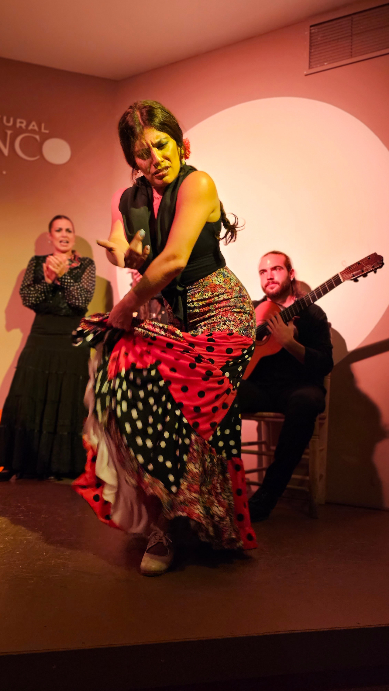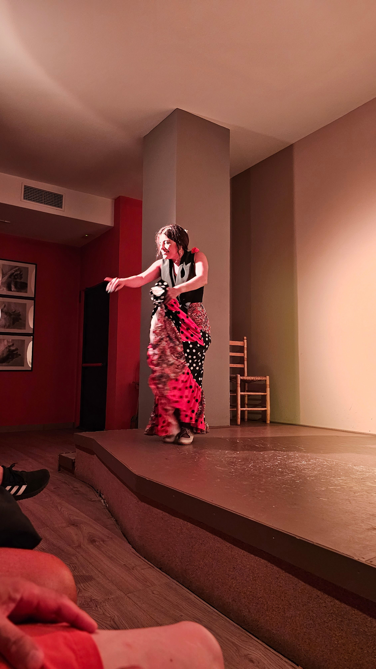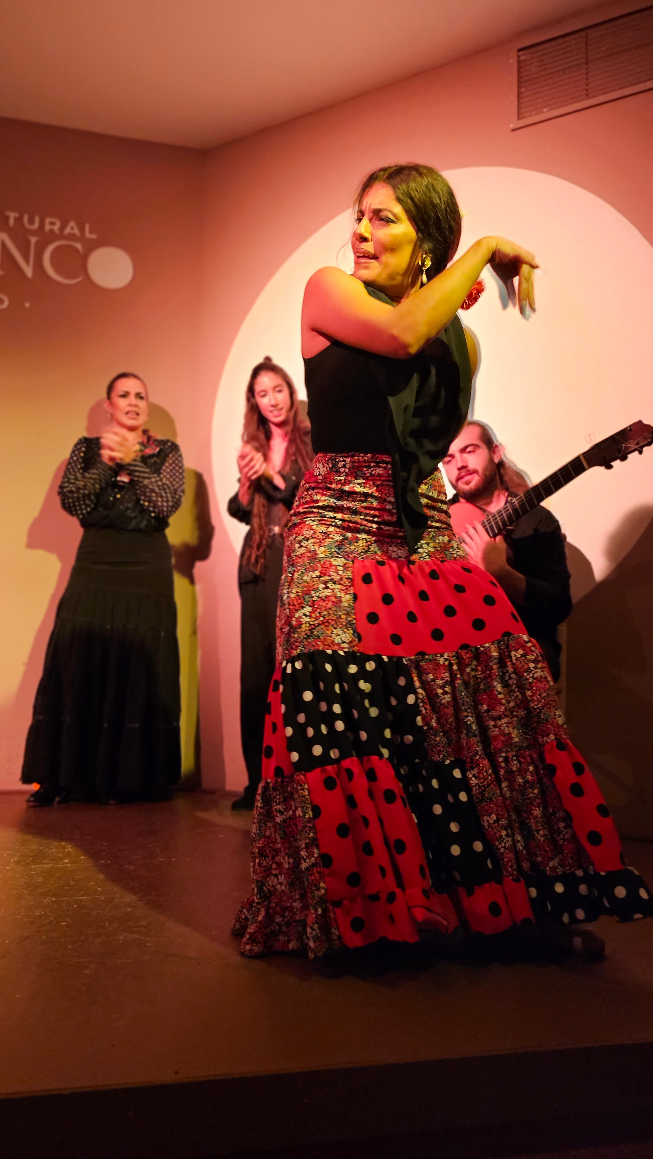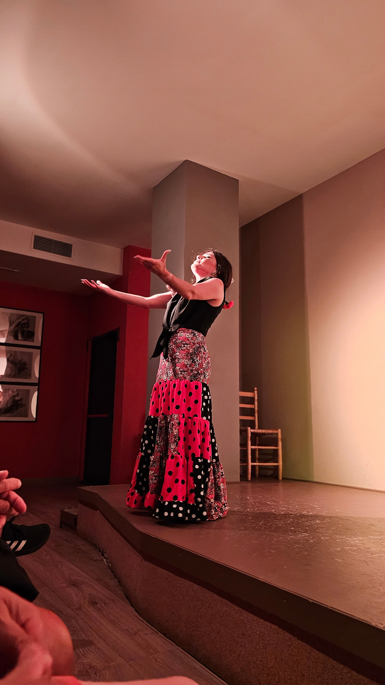 에펠탑을 방문하지 않고 파리에 가거나 뉴욕에 가서 자유의 여신상과 사진을 찍지 않는 것은 아무도 감히 할 수 없을 것이다. 그러니까 스페인에 와서 플라멩코 보드를 밟지 않는 것은 생각할 수 없는 일이다. 플라멩코는 스페인 문화의 일부이고, 살면서 적어도 한 번은 필수적인 약속이기 때문이다. 금삿갓이 방문한 마드리드에 있는 플라멩코 문화 센터(Centro Cultural Flamenco)는 예술로 가득 찬 매우 플라멩코스러운 지역에 위치해 있다. 지역 이름은 추에카(시케나 백작의 거리, 6)이다. 18세기부터 위대한 플랑드르 전통의 지역으로, 여러 추종자들이 카예 바르키요와 그 주변을 플라멩코와 통역사와 예술 애호가들의 지역으로 이야기한단다. 바르킬로 거리에는 20세기 후반 이미 플라멩코 예술가들로 유명한 카페 데 라 살사가 있었단다. 금삿갓이 간 날의 공연은 춤(바일레)은 리시 스파이어, 이삭 데 로스 레예스, 노래(칸타)는 에런 몰리나, 기타는 안토니오 곤잘레스였다.