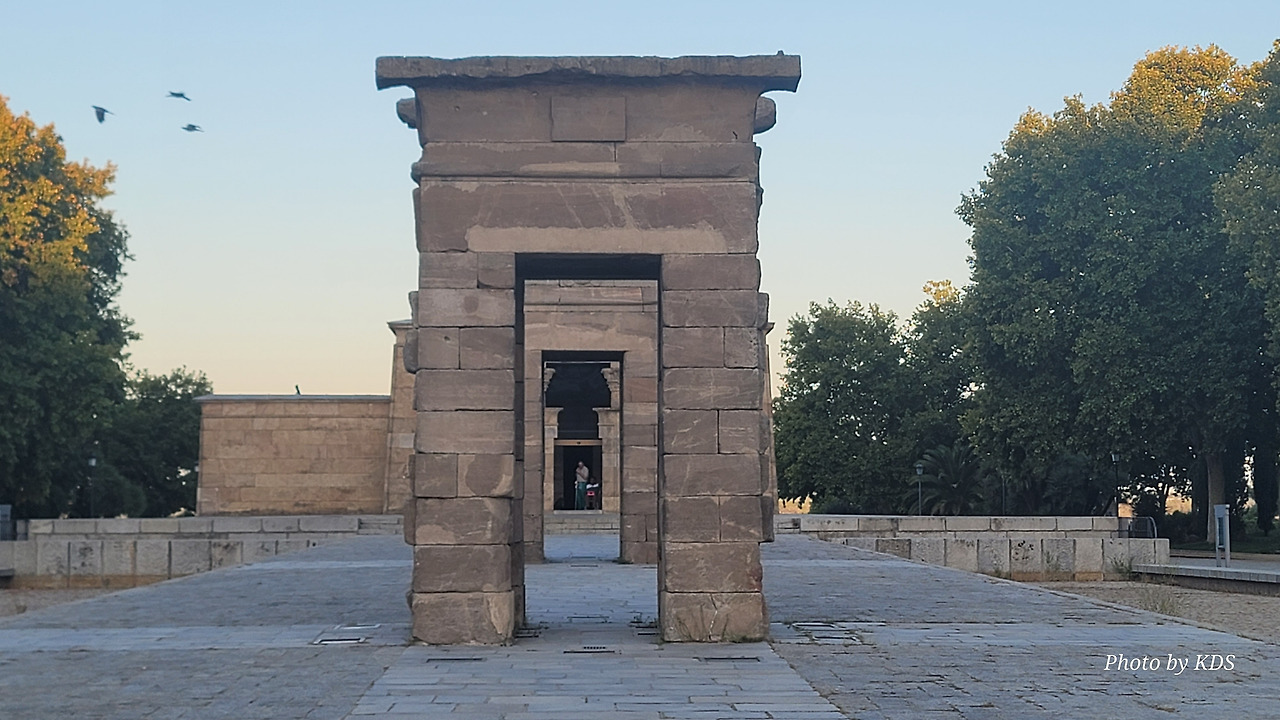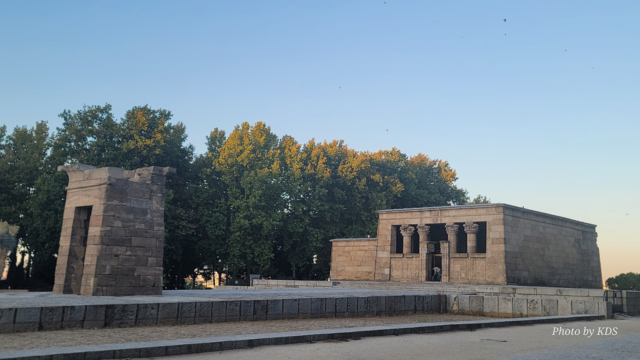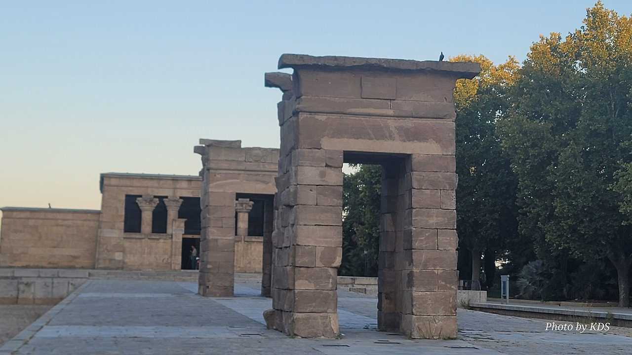 데 보드 신전(Templo de Debod)은 현재 스페인 마드리드에 위치한 이집트의 고대 누비아 사원이다. 이 사원 또는 신전은 원래 기원전 2세기 초 이집트 아스완에서 남쪽으로 15km(9.3마일) 떨어진 곳에 세워졌던 것이다. 1960년 아스완 하이 댐 건설로 인해 저수지가 수많은 기념물과 고고학 유적지에 위협을 가함에 따라 UNESCO는 이 풍부한 역사적 유산을 보존하기 위한 국제적 호소를 했고, 스페인이 아부 심벨 신전의 보존에 협조를 했다. 이집트 정부는 1968년 누비아 기념물 보존 국제 캠페인에 참여한 데 대한 감사의 표시로 이를 스페인에 사원을 기증했다. 이 사원은 1970~1972년에 해체, 운반되어 미드리드의 몬타냐 공원에 재건되었다. 이집트 밖으로 이전된 몇 안 되는 고대 이집트 건축물 중 하나이며 스페인에서 유일한 이집트 건축물이다. 신전의 앞쪽 광장에는 원래 얕은 물을 채워놓은 연못으로 조성되어 있는데, 금삿갓이 방문한 시기가 가뭄과 더위가 심해서인지 물을 모두 빼버리고 바닥의 돌들이 들러나 있었다.