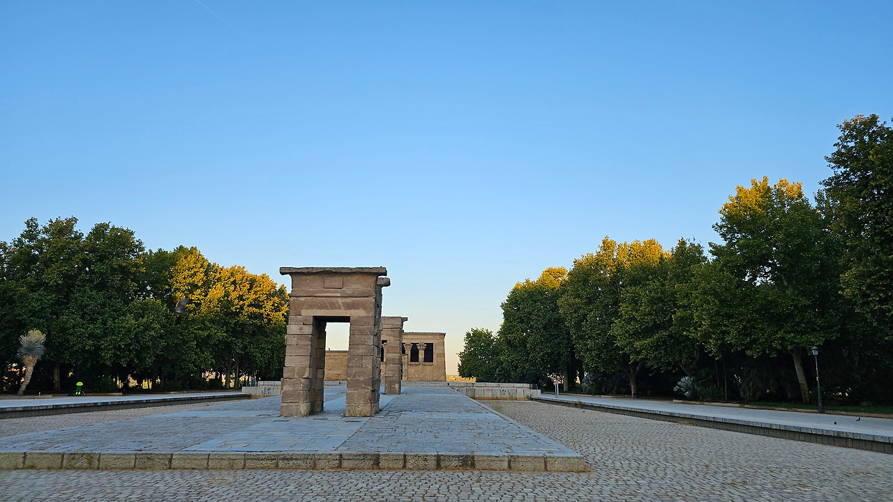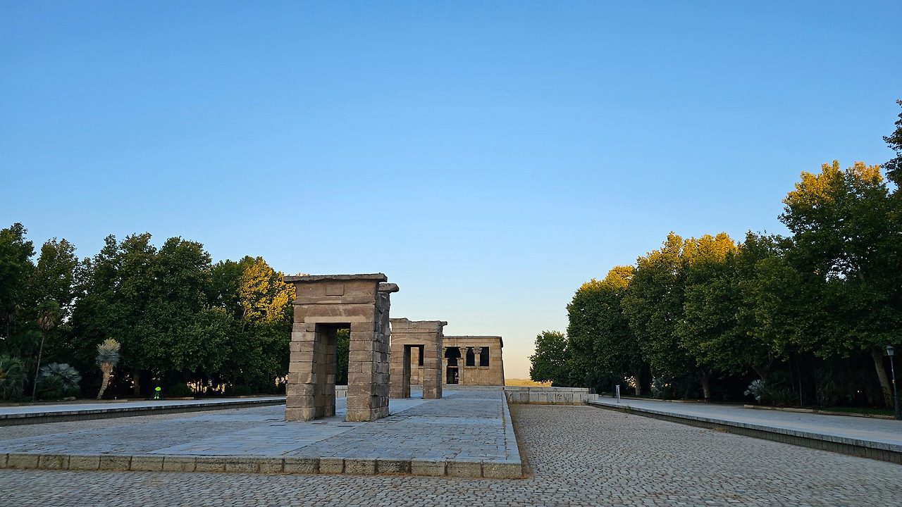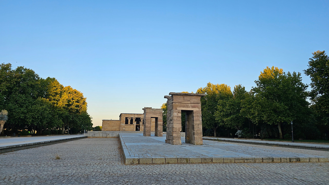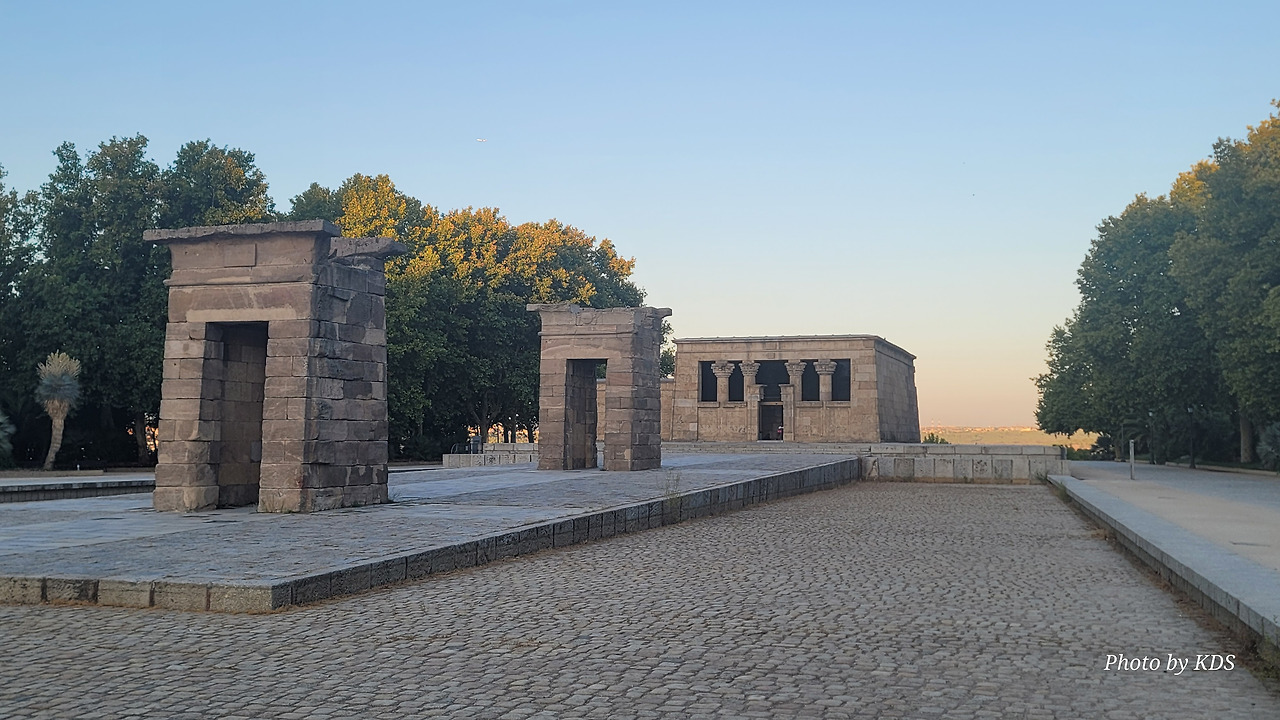 데 보드 신전(Templo de Debod)은 현재 스페인 마드리드에 위치한 이집트의 고대 누비아 사원이다. 이 사원 또는 신전은 원래 기원전 2세기 초 이집트 아스완에서 남쪽으로 15km(9.3마일) 떨어진 곳에 세워졌던 것이다. 1960년 아스완 하이 댐 건설로 인해 저수지가 수많은 기념물과 고고학 유적지에 위협을 가함에 따라 UNESCO는 이 풍부한 역사적 유산을 보존하기 위한 국제적 호소를 했고, 스페인이 아부 심벨 신전의 보존에 협조를 했다. 이집트 정부는 1968년 누비아 기념물 보존 국제 캠페인에 참여한 데 대한 감사의 표시로 이를 스페인에 사원을 기증했다. 이 사원은 1970~1972년에 해체, 운반되어 미드리드의 몬타냐 공원에 재건되었다. 이집트 밖으로 이전된 몇 안 되는 고대 이집트 건축물 중 하나이며 스페인에서 유일한 이집트 건축물이다. 신전의 앞쪽 광장에는 원래 얕은 물을 채워놓은 연못으로 조성되어 있는데, 금삿갓이 방문한 시기가 가뭄과 더위가 심해서인지 물을 모두 빼버리고 바닥의 돌들이 들러나 있었다.