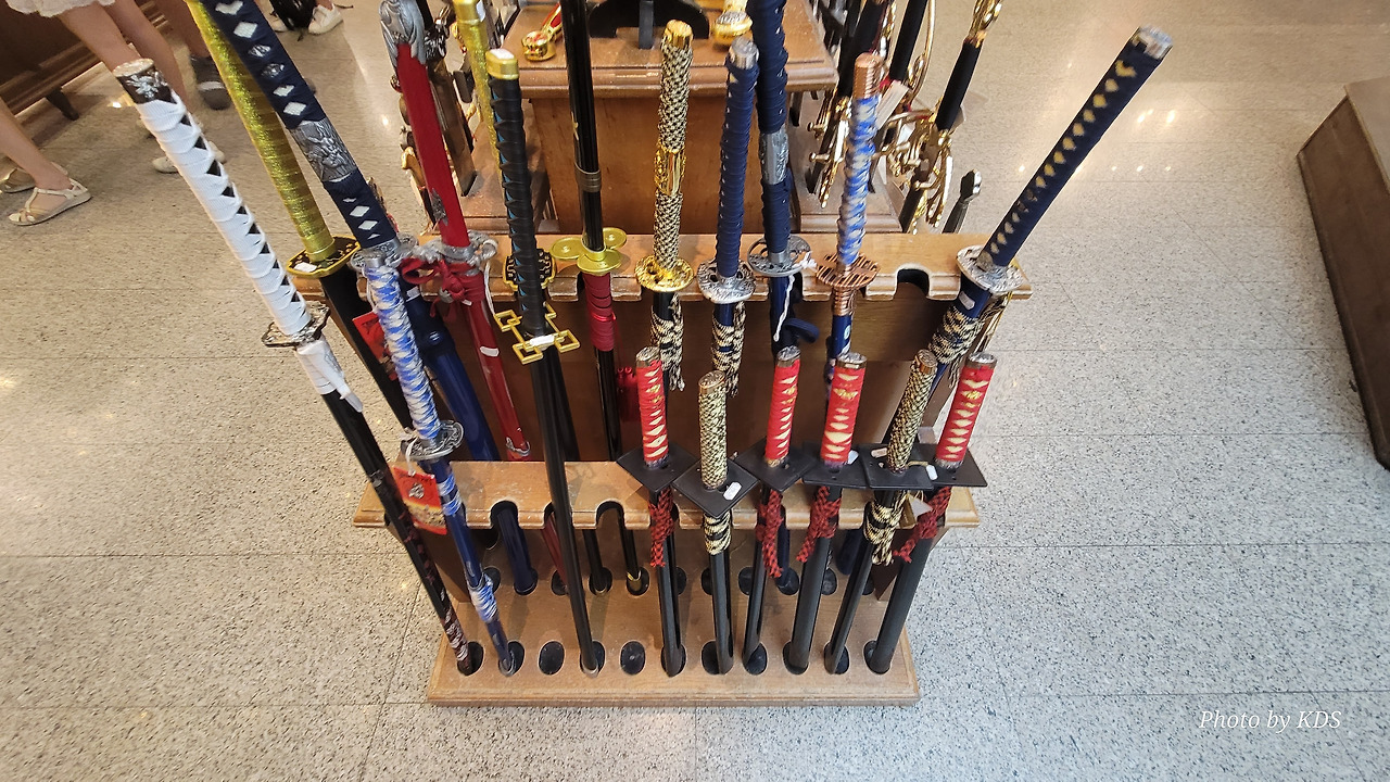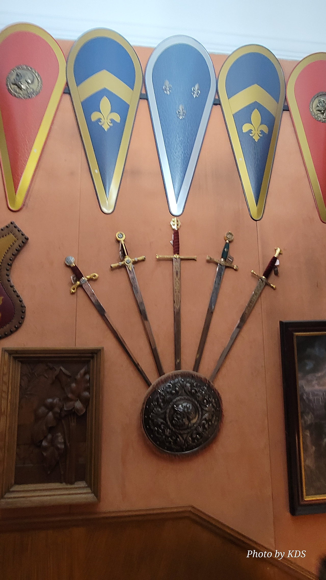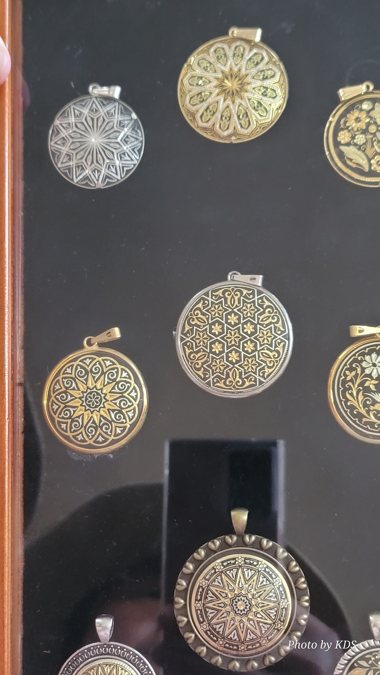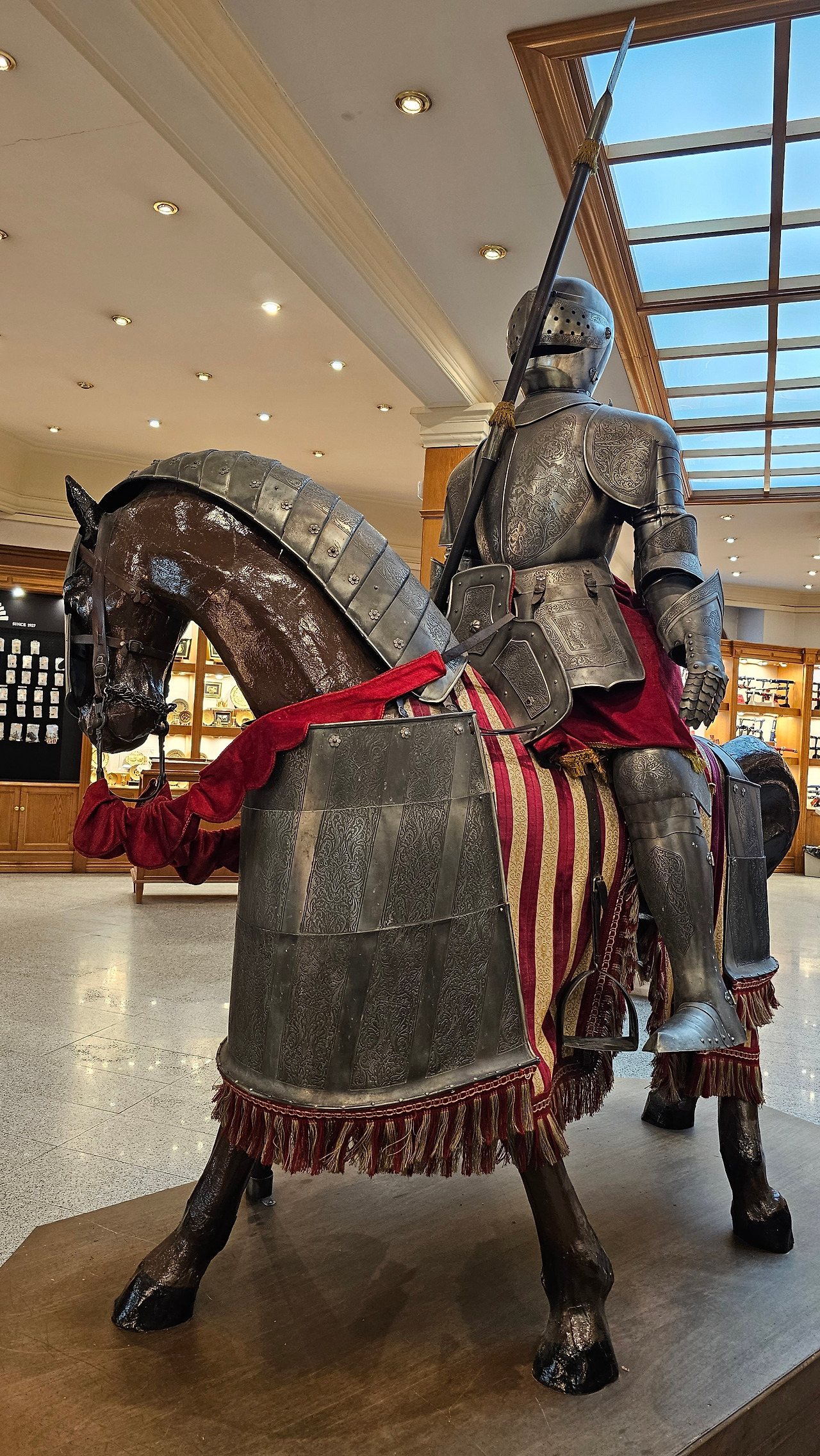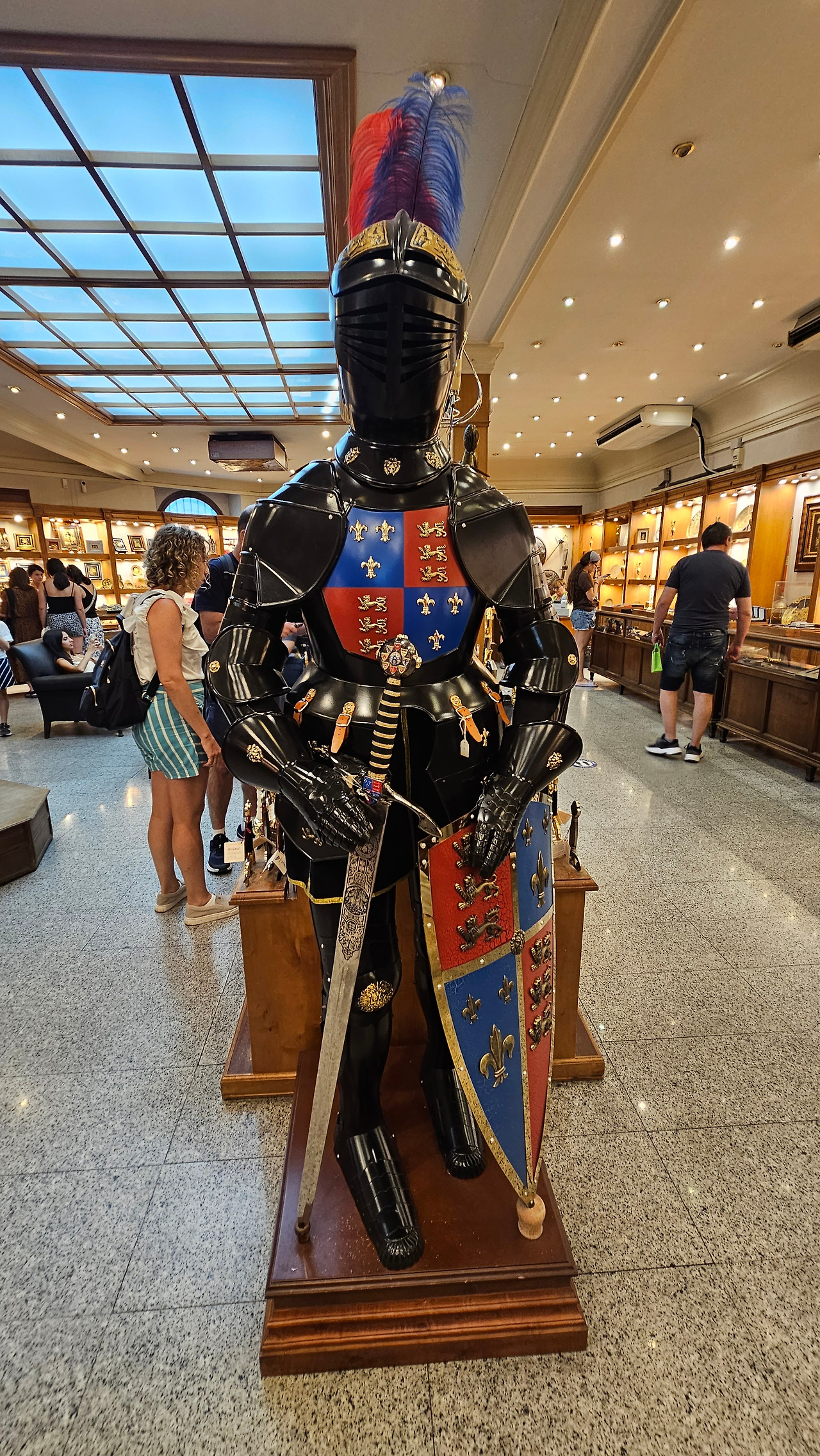 어느 나라를 가나 여행사의 스타일은 비슷하다. 관광객을 가득 태워온 관광버스가 제일 먼저 기념품 가게의 주차장에 들린다. 이곳에서도 마찬가지다. 마드리드를 출발하여 톨레도에 도착하자마자 제일 먼저 기념품 가게 앞에 주차를 시키더니 1시간의 자유 시간을 주면서 쇼핑을 한 후 다시 버스에 탑승하란다. 끌려왔으니 도리가 없다. 기념품 가게는 그야말로 종합 선물세트였다. 금은의 세공품에서부터 그림 등의 예술품을 비롯하여 중세의 각종 장신구와 기사들의 갑옷과 도검(刀劍) 등을 팔고 있었다. 지하실에서는 대장간을 만들어 놓고 직접 중세 기사의 도검을 만들고 있었다. 또 다른 방에는 금은 세공사들이 각종 문양의 금은 세공품을 돋보기를 들여다보면서 열심히 제작하고 있었다. 딱히 필요한 물품도 없고 선물할 사람도 없엇 그냥 눈요기를 이곳 저곳을 구경하면서 사진을 찍었다. 중세의 전설상의 기사의 칼인 엑스칼리버 같은 모양의 칼도 보인다. 마창 경기의 갑옷과 창들도 눈길을 끈다.