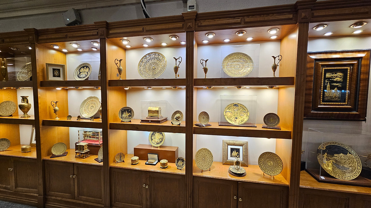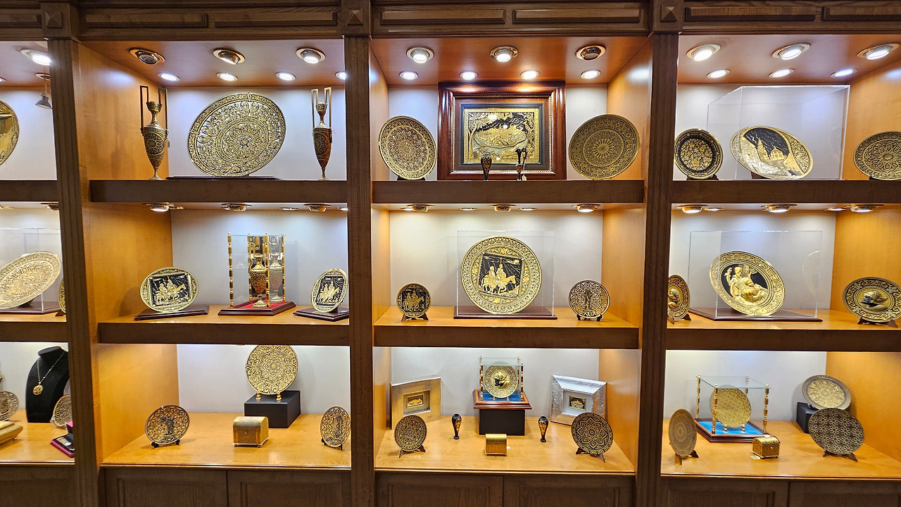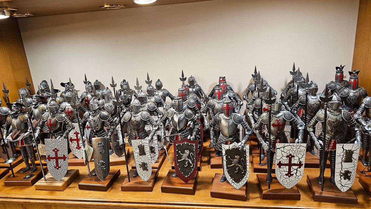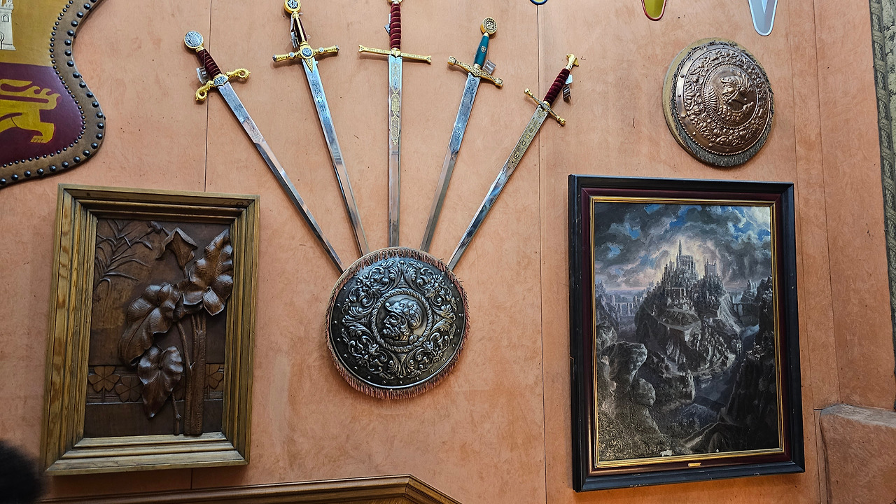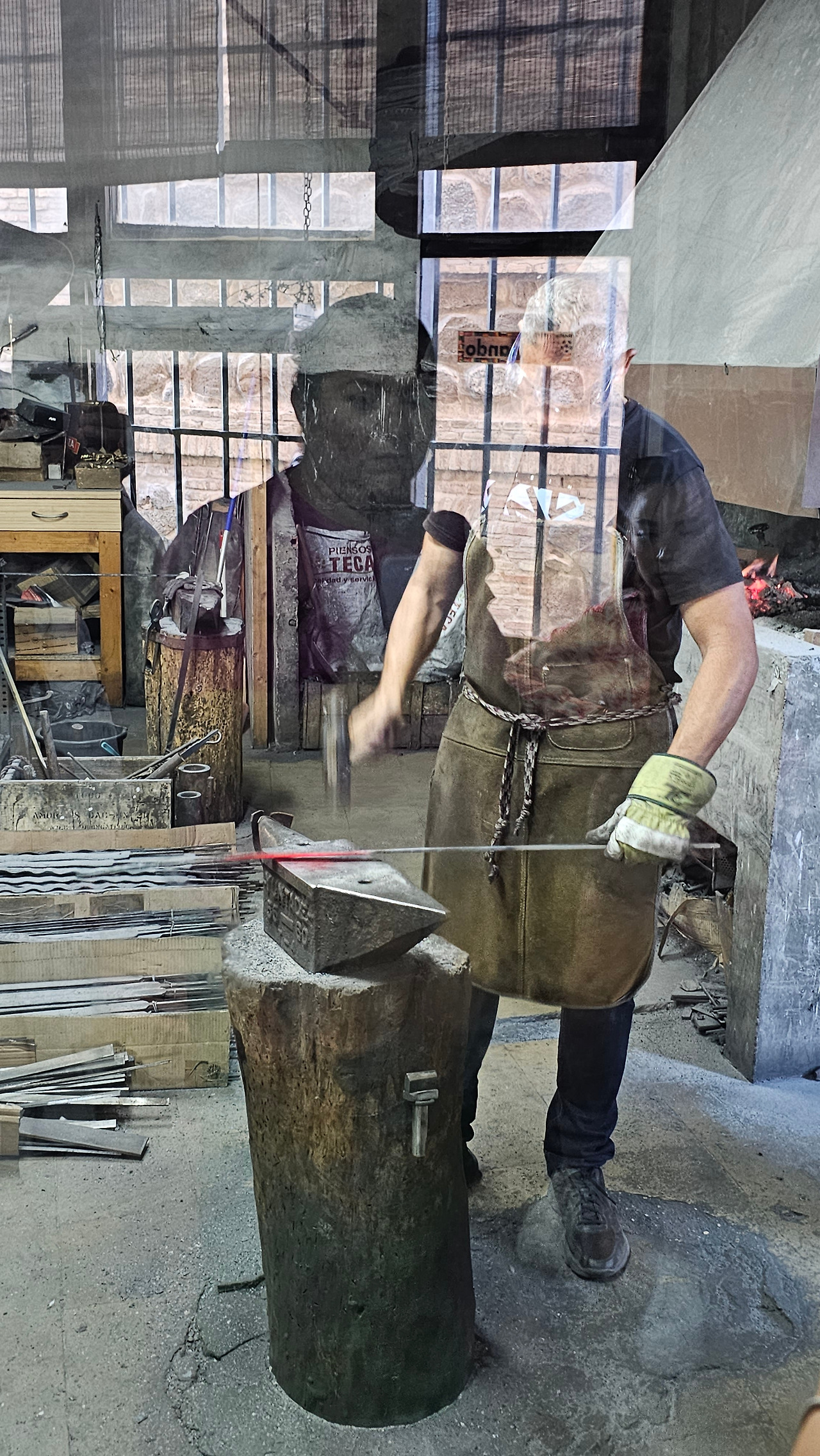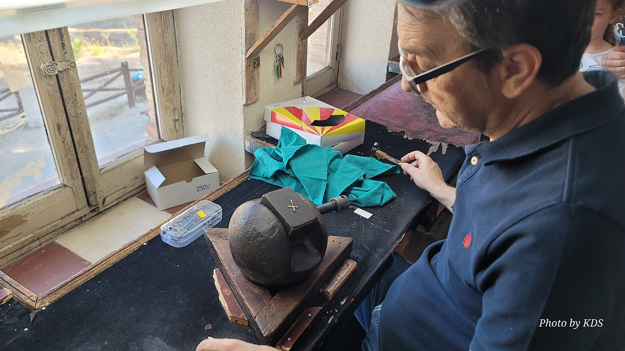 어느 나라를 가나 여행사의 스타일은 비슷하다. 관광객을 가득 태워온 관광버스가 제일 먼저 기념품 가게의 주차장에 들린다. 이곳에서도 마찬가지다. 마드리드를 출발하여 톨레도에 도착하자마자 제일 먼저 기념품 가게 앞에 주차를 시키더니 1시간의 자유 시간을 주면서 쇼핑을 한 후 다시 버스에 탑승하란다. 끌려왔으니 도리가 없다. 기념품 가게는 그야말로 종합 선물세트였다. 금은의 세공품에서부터 그림 등의 예술품을 비롯하여 중세의 각종 장신구와 기사들의 갑옷과 도검(刀劍) 등을 팔고 있었다. 지하실에서는 대장간을 만들어 놓고 직접 중세 기사의 도검을 만들고 있었다. 또 다른 방에는 금은 세공사들이 각종 문양의 금은 세공품을 돋보기를 들여다보면서 열심히 제작하고 있었다. 딱히 필요한 물품도 없고 선물할 사람도 없엇 그냥 눈요기를 이곳 저곳을 구경하면서 사진을 찍었다. 중세의 전설상의 기사의 칼인 엑스칼리버 같은 모양의 칼도 보인다. 마창 경기의 갑옷과 창들도 눈길을 끈다.
