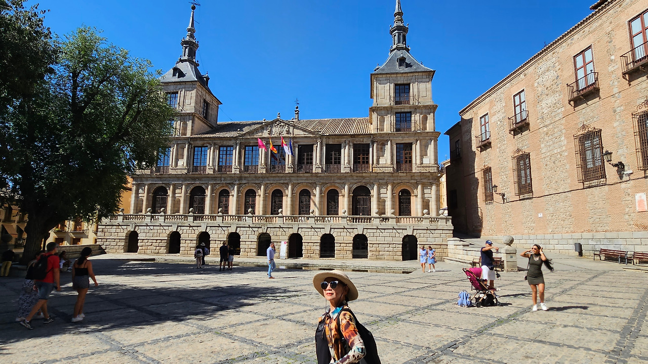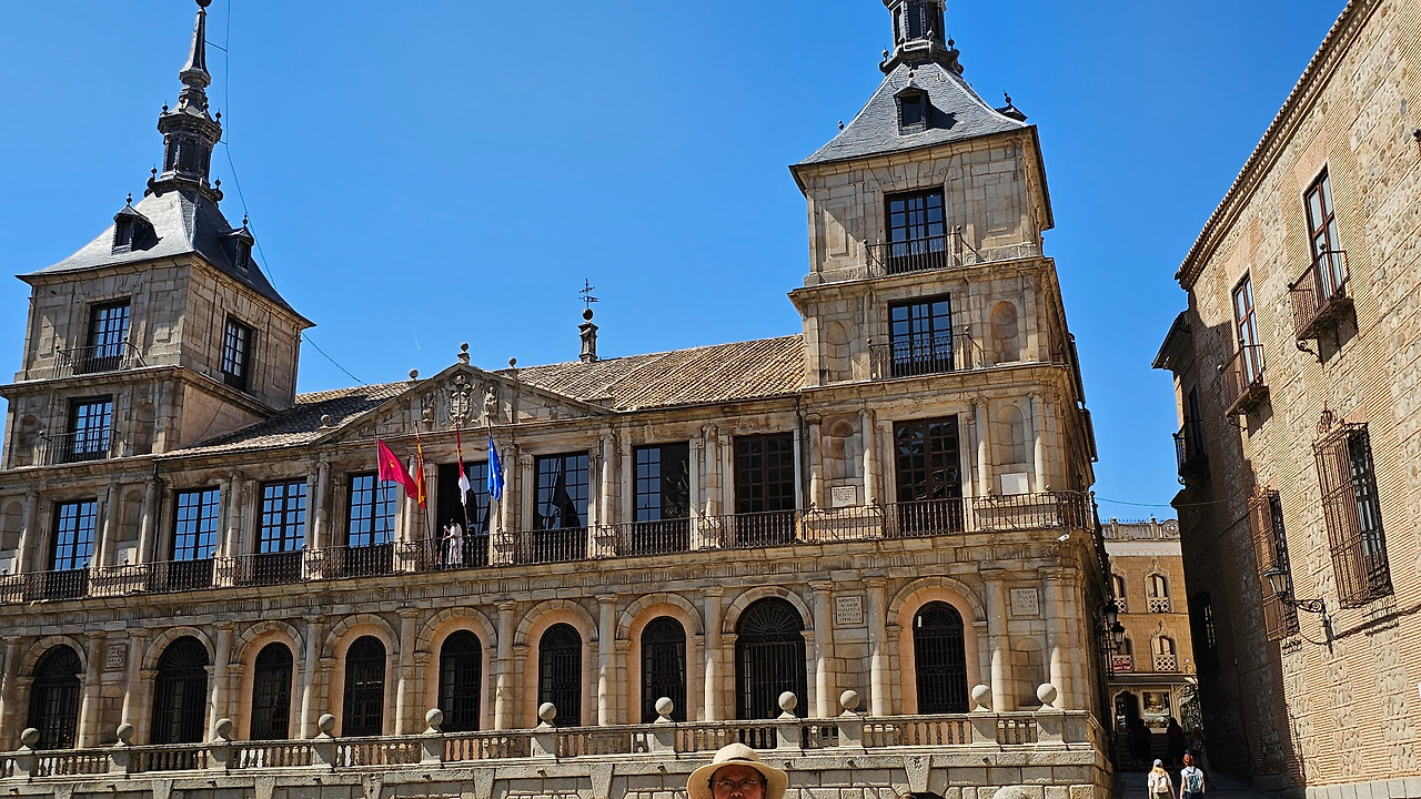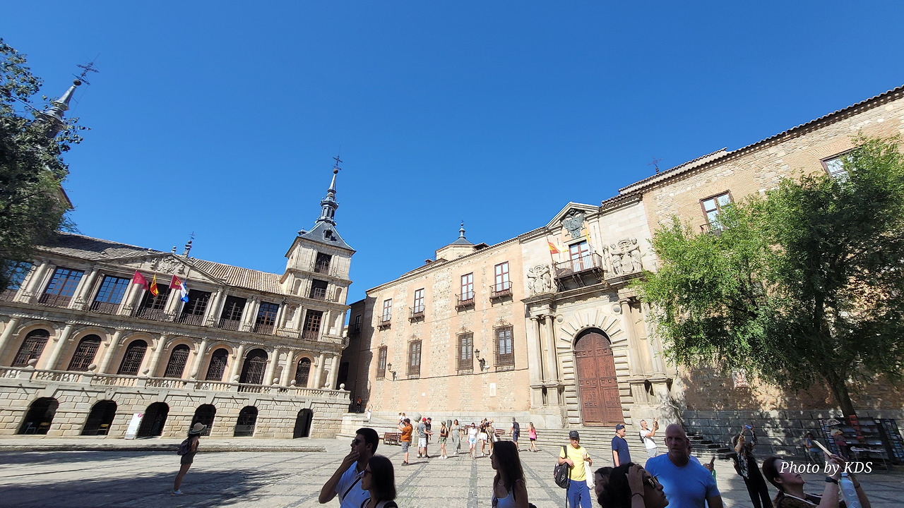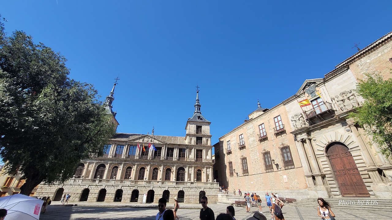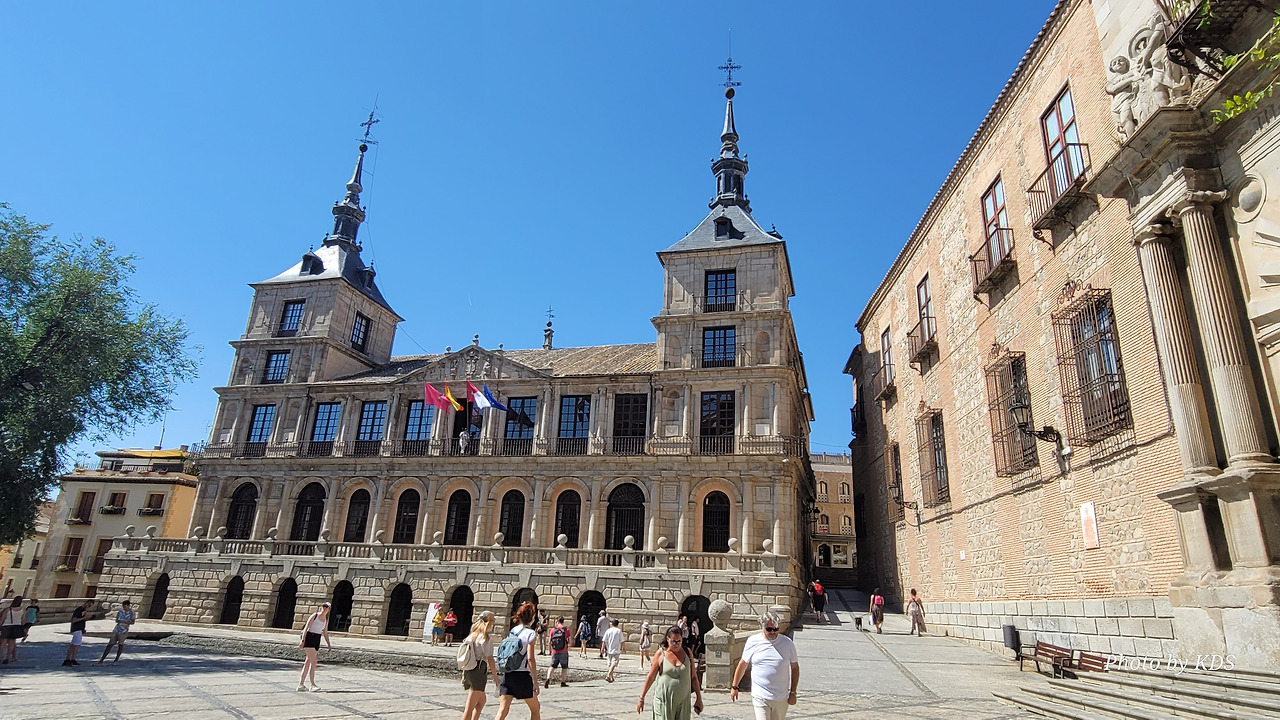 톨레도 시청은 아윤타미엔토 광장(Plaza del Ayuntamiento) 앞에 위치해 있으며, 주변에 톨레도 대성당, 성주고 성당 등 역사적인 건축물이 즐비하다. 시 청사는 1575년에 시작하여 1703년에 완공된 오랜 역사를 가지고 있으며, 건축 시에는 화가 엘 그레코의 아들도 참여했다. 광장에는 커다란 나무도 있고 쉴 수 있는 벤치도 있다. 시청 건물의 오른쪽 아래에 여행객들의 가장 필요한 장소인 무료 화장실이 있다. 톨레도가 언덕 위의 도시이다 보니 언덕을 오르내리는 에스컬레이터가 분주히 운행되고 있다. 정말 작은 중세의 유럽 도시의 전형을 보여주는 곳이다.