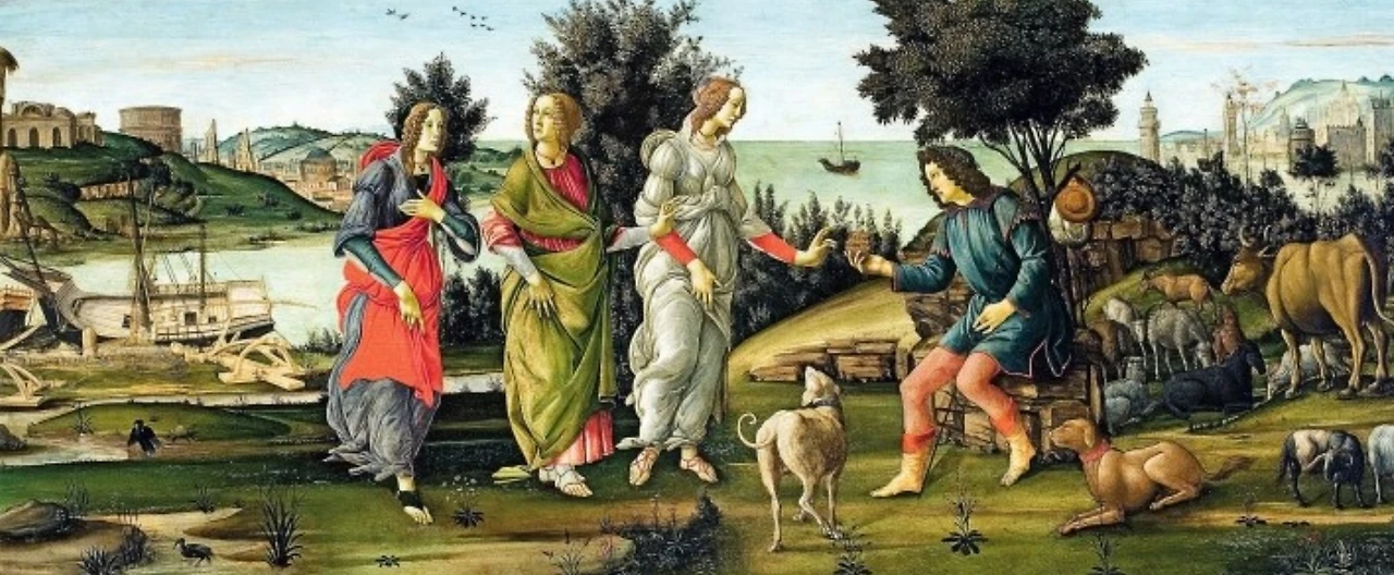 이미 님프 오이노네와 결혼한 유부남인 파리스는 세상에서 가장 아름다운 여인을 아내로 맞게 해 주겠다는 말을 믿고 아프로디테에게 황금사과를 준 것이다. 당시 세상에서 가장 아름다운 여인은 스파르타의 왕 메넬라오스의 부인인 헬레네였다. 아무튼 이 일로 인하여 트로이는 멸망하게 된다. 신탁의 예언은 언제나 아무도 모르게 이루어지는 것이었다. <파리스의 심판(The Judgement of Paris)>는 초기에는 옷을 입은 여인들의 그림이었다. 호세 카마론(Jose Camaron)의 작품에는 아프로디테만 벗은 모습이고, 산드로 보티첼리(Sandro Botticelli)의 작품은 옷을 아주 많이 입은 모습이다. 물론 후기에서도 끌로드 로랭(Claud Lorain)의 작품에서도 아프로디테만 벗은 모습이다. 개인적인 기호로는 페테르 파울 루벤스(Peter Paul Rubens)의 작품이 마음에 들어서 그의 작품으로 우선 애로서(曖露書)를 늘어 놓아본다.