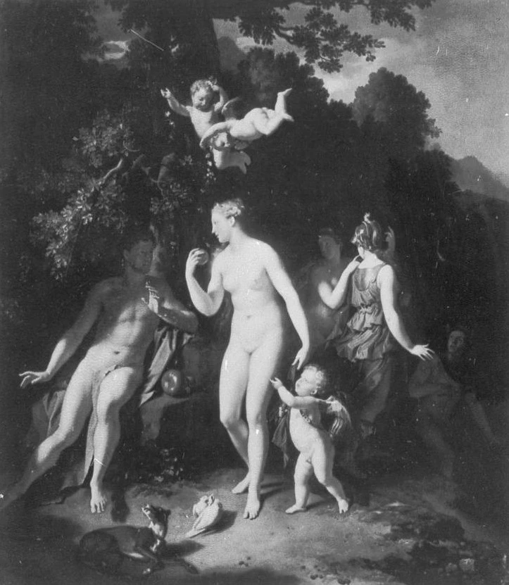 아드리안 반 데르 베르프(Adriaen van der Werff)의 1712년 경의 작품과 아래는 1716년 경 작품이다. 위의 것에는 승리자 아프로디테만 강조하고 나머지 두 여신은 아예 지나가는 행인 1-2 정도로 묘사된다. 아프로디테의 등뒤에 가려져서 파리스의 얼굴조차 볼 수 없다. 반면에 아래 작품에는 헤라와 아프로디테가 적극 파리스를 유혹하려는 제스처를 취하는데, 아테나는 뒤쪽에서 한발 물러나 있다. 아프로디테의 승리가 예상되는 구도이다.